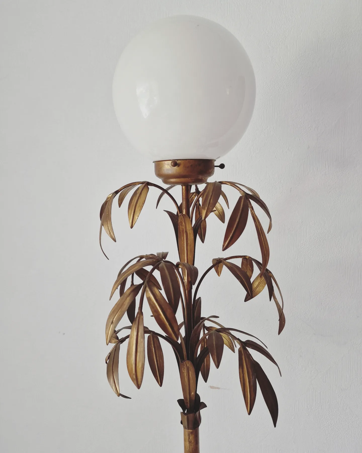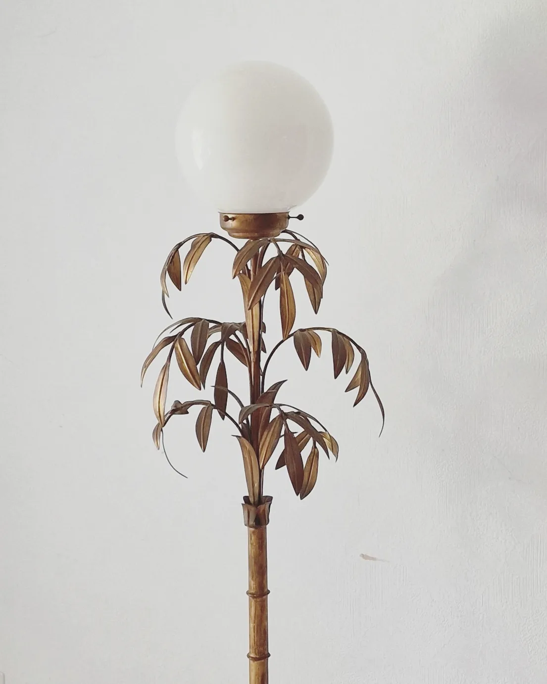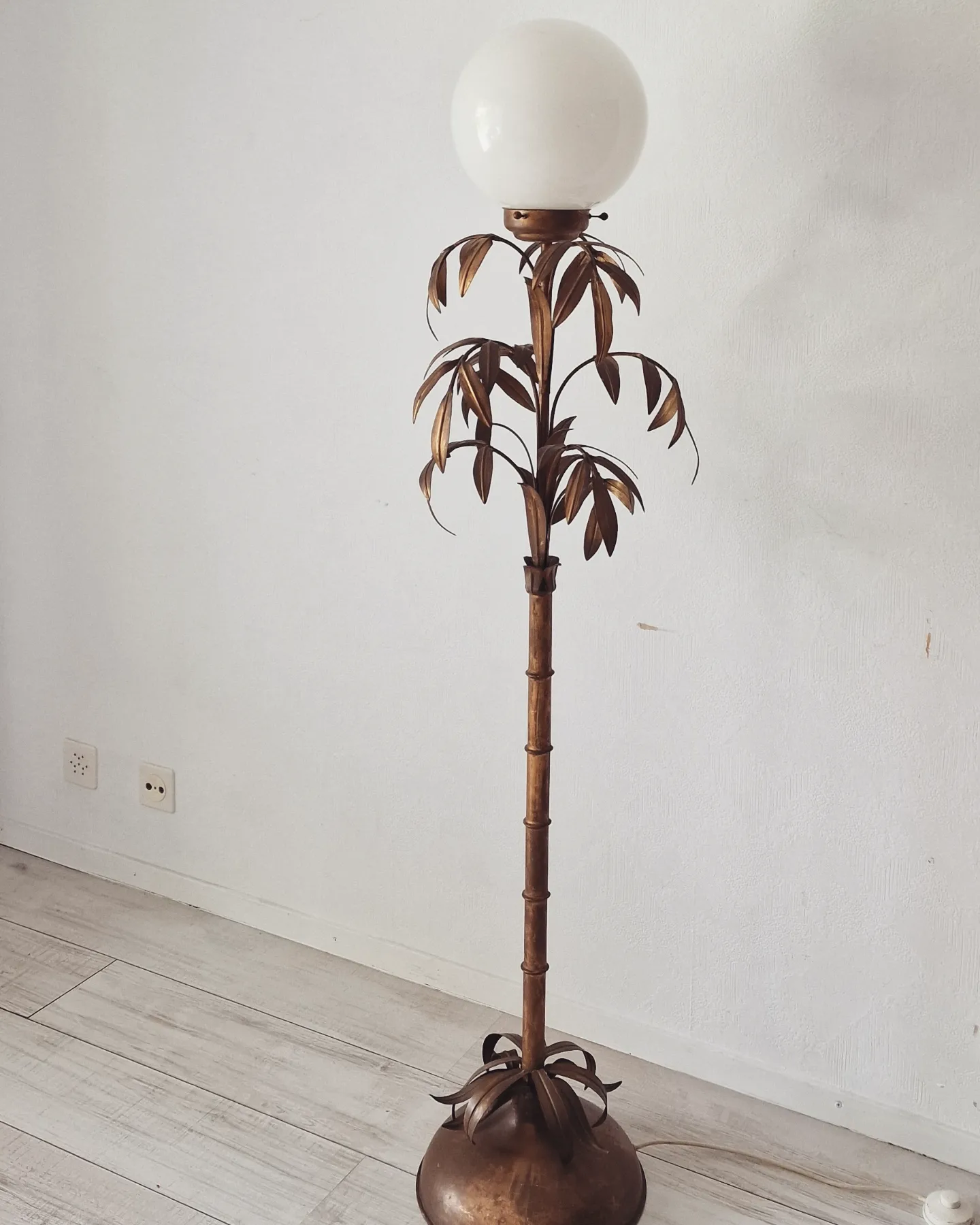 Produit venduRare lampadaire des années 70, en métal doré et globe en verre soufflé.