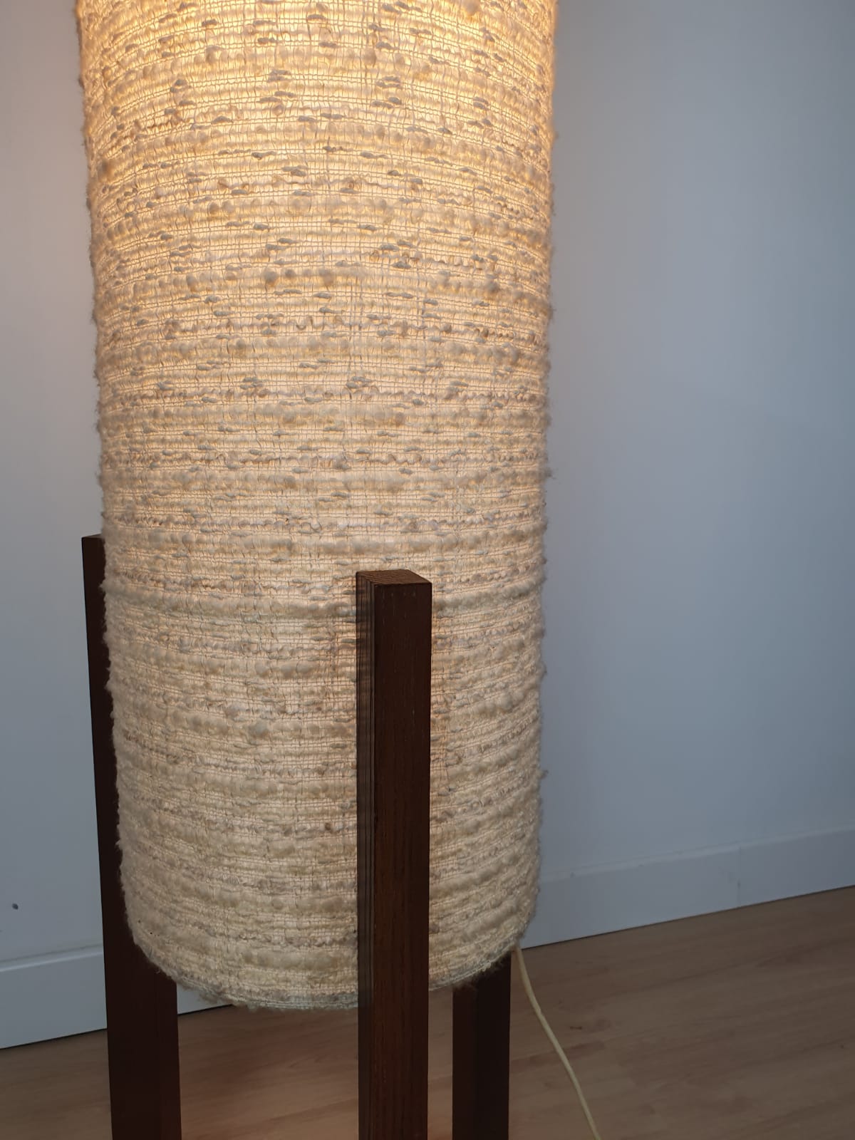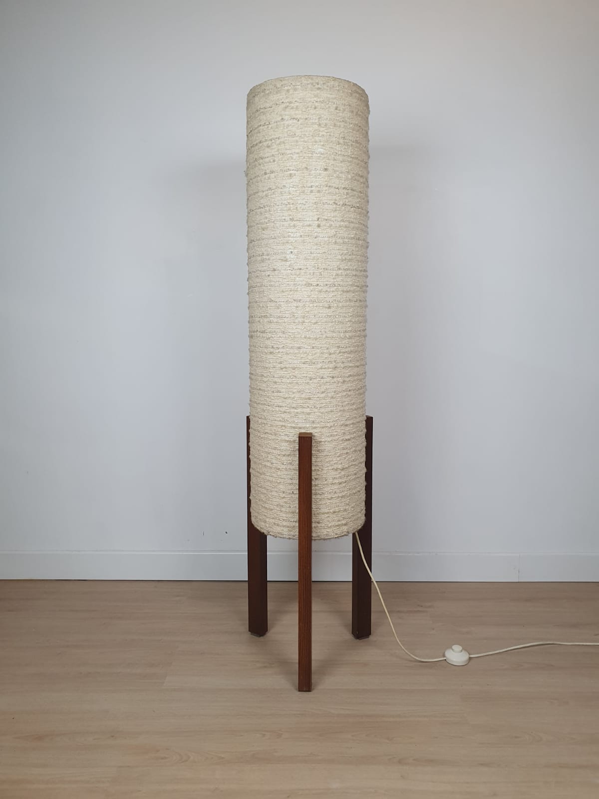 Produit venduLampadaire Rocket avec pied en teck et tissu type “tweed” années 60.