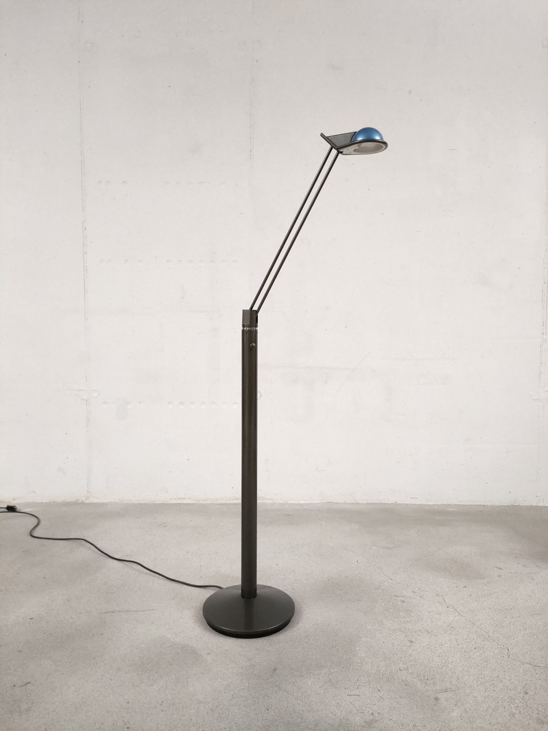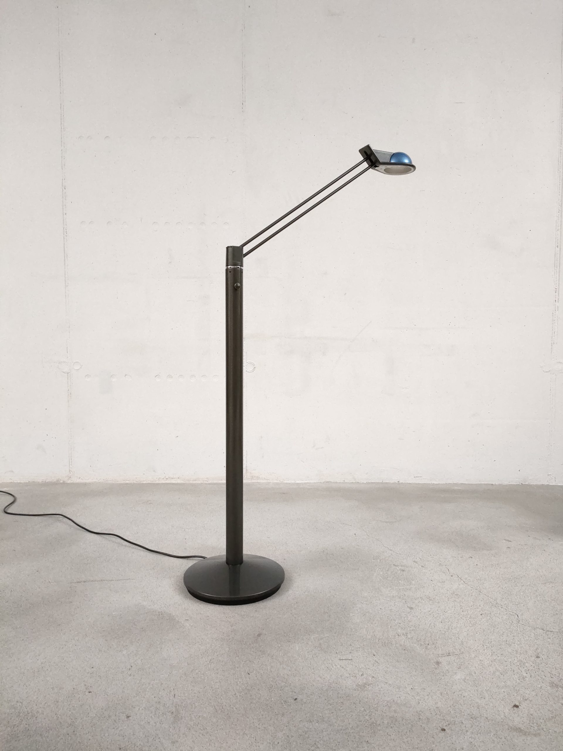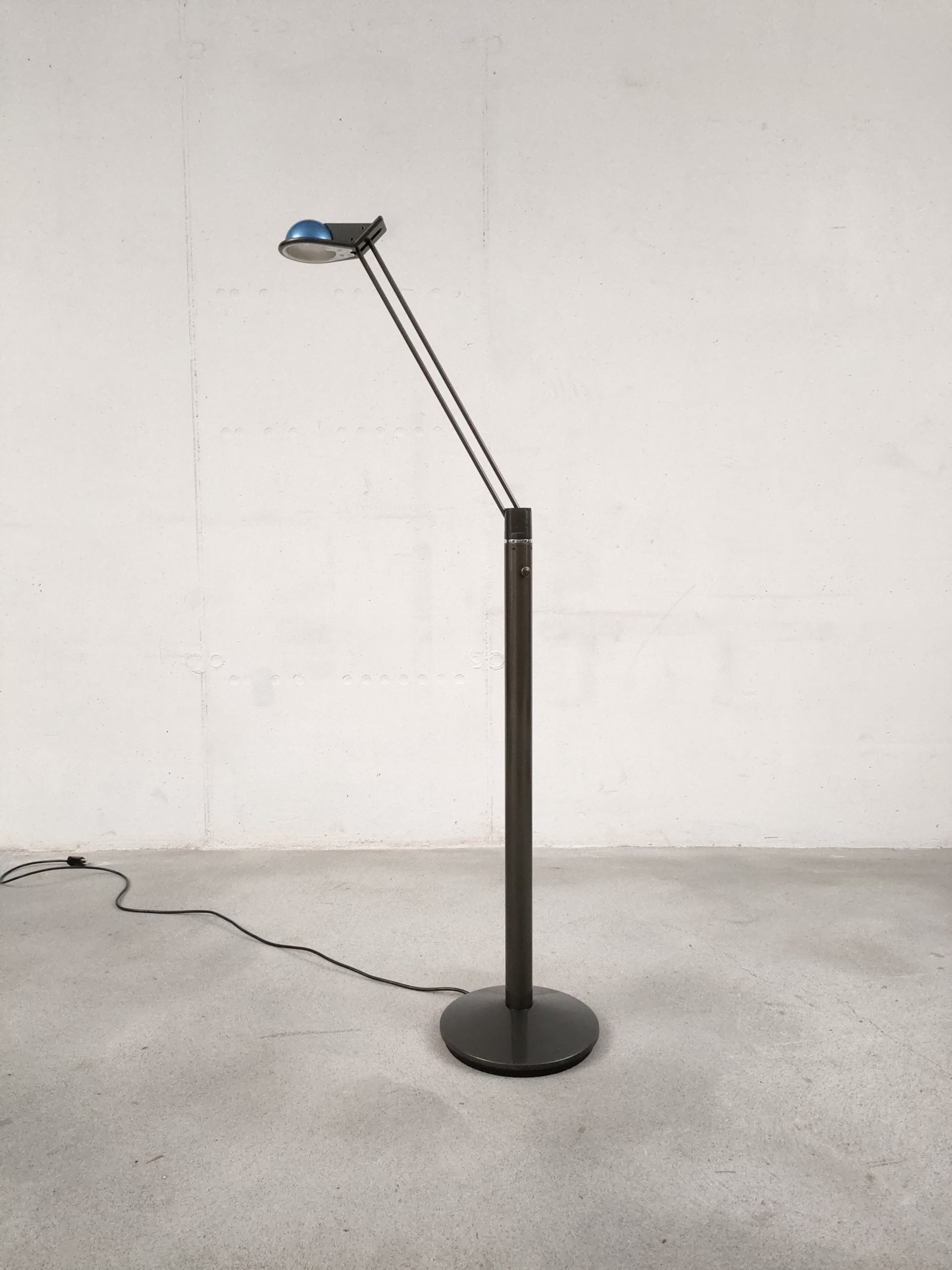 Produit venduLampe sur pied vintage des années 80. Modèle Anade dessiné par le designer Josep Llusca en 1984 pour le fabricant espagnol Metalarte. Fabriqué en métal laqué noir, le luminaire a un pied rond avec une base tubulaire et un bras métallique tubulaire fin qui peut être réglé dans toutes les directions (hauteur max: 136 cm, min: 108). La partie haute du pied bouge légèrment mais cela n’a pas des conséquences sur sa stabilité et fonctionnalité.