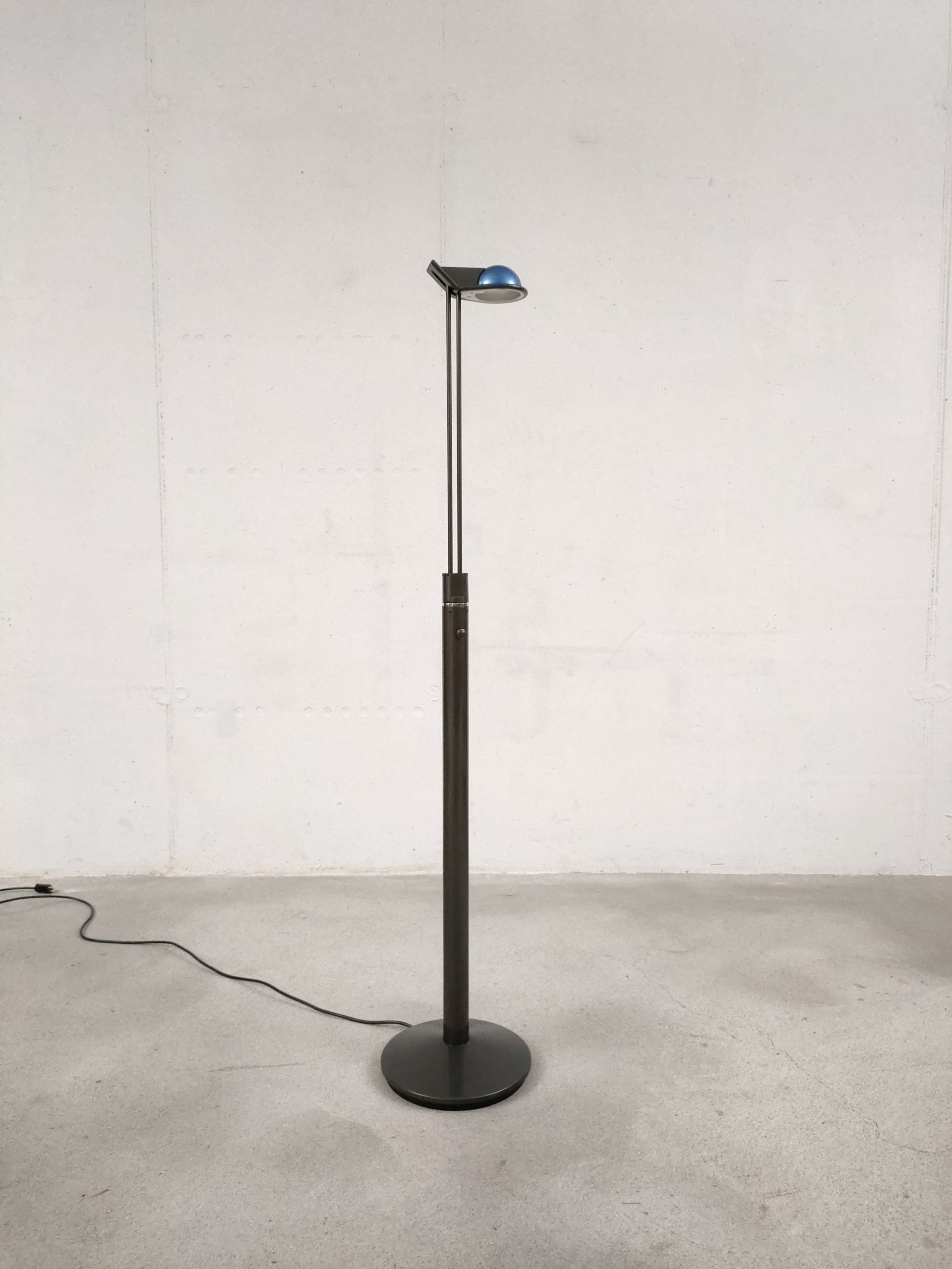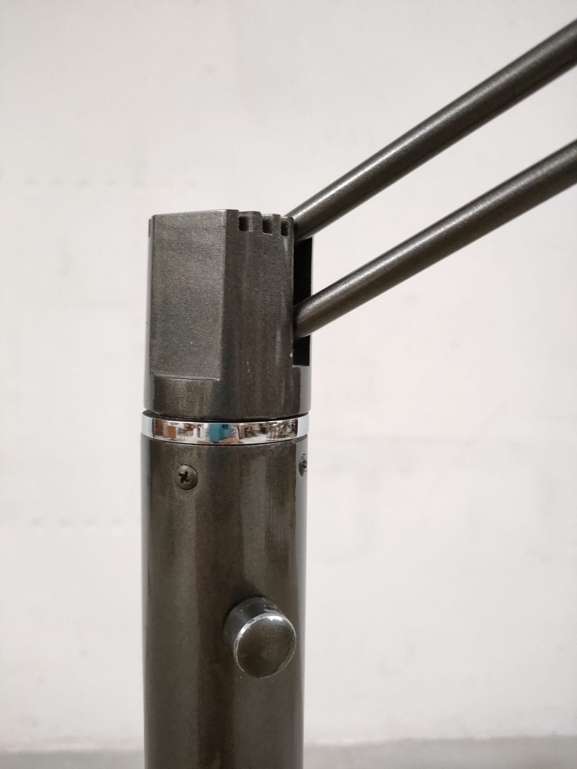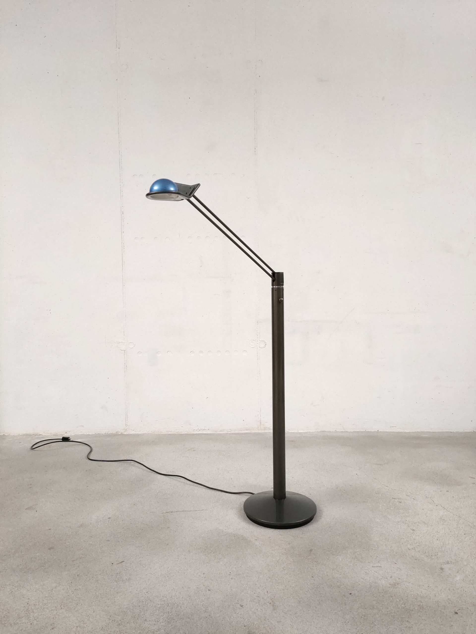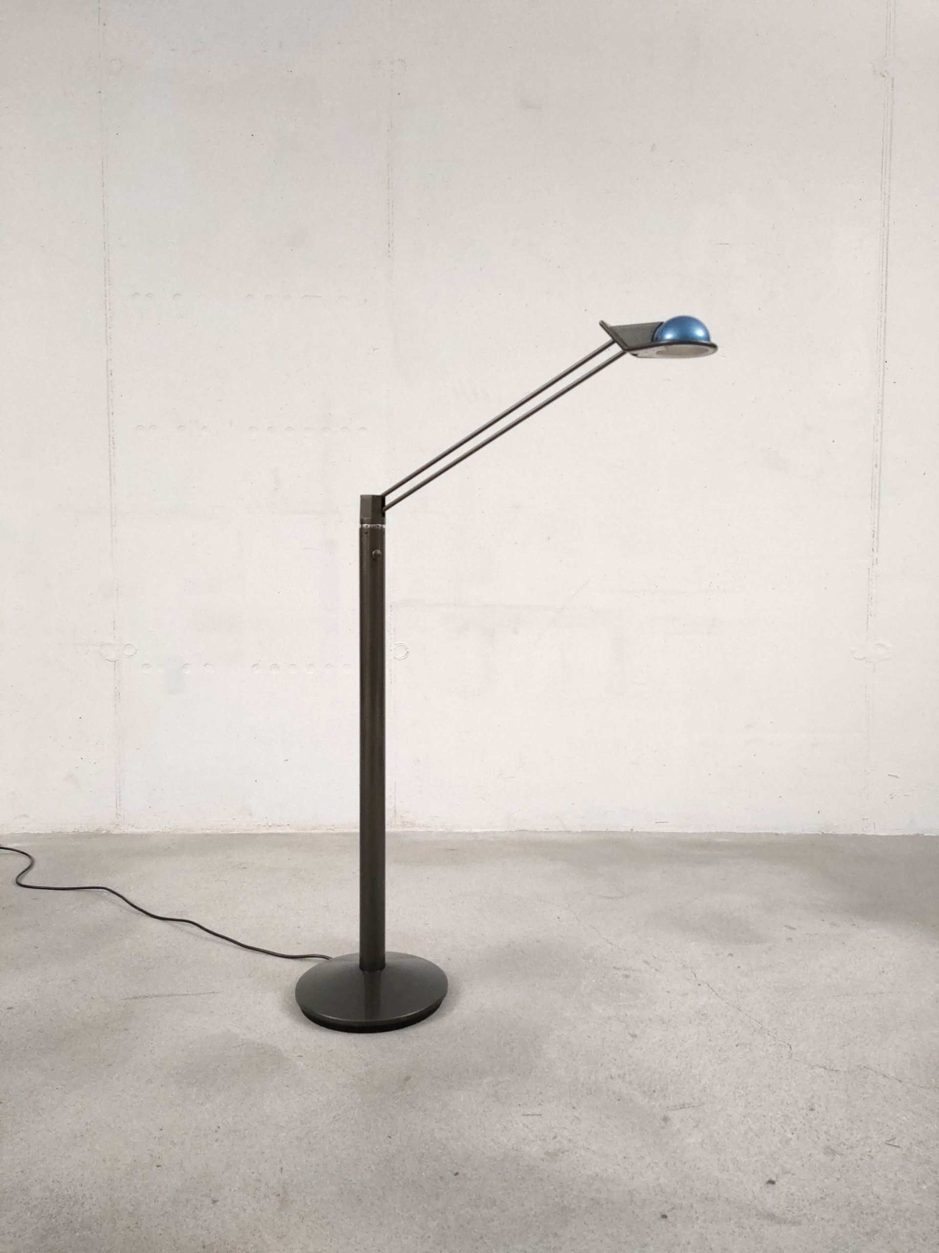Produit venduLampe sur pied vintage des années 80. Modèle Anade dessiné par le designer Josep Llusca en 1984 pour le fabricant espagnol Metalarte. Fabriqué en métal laqué noir, le luminaire a un pied rond avec une base tubulaire et un bras métallique tubulaire fin qui peut être réglé dans toutes les directions (hauteur max: 136 cm, min: 108). La partie haute du pied bouge légèrment mais cela n’a pas des conséquences sur sa stabilité et fonctionnalité.