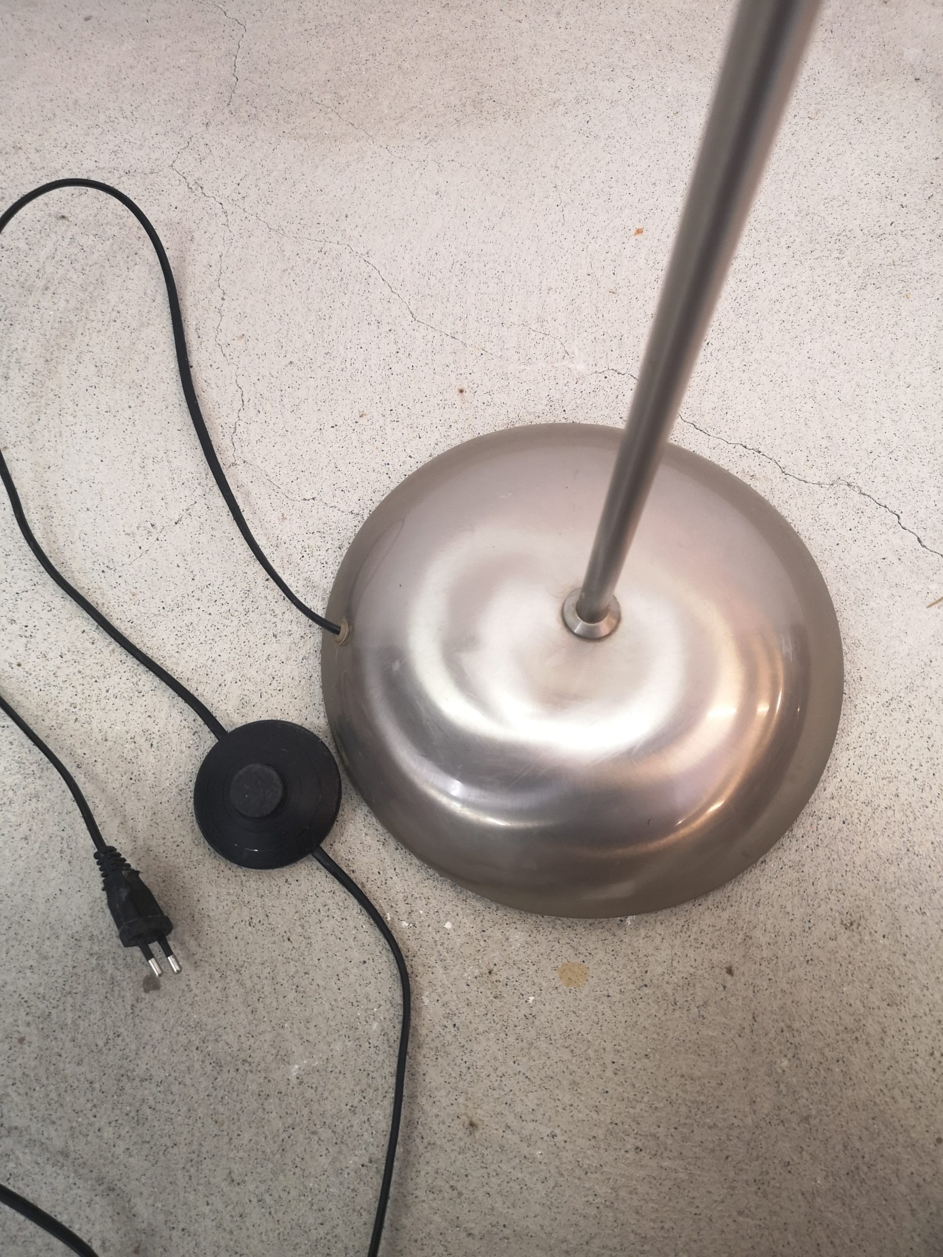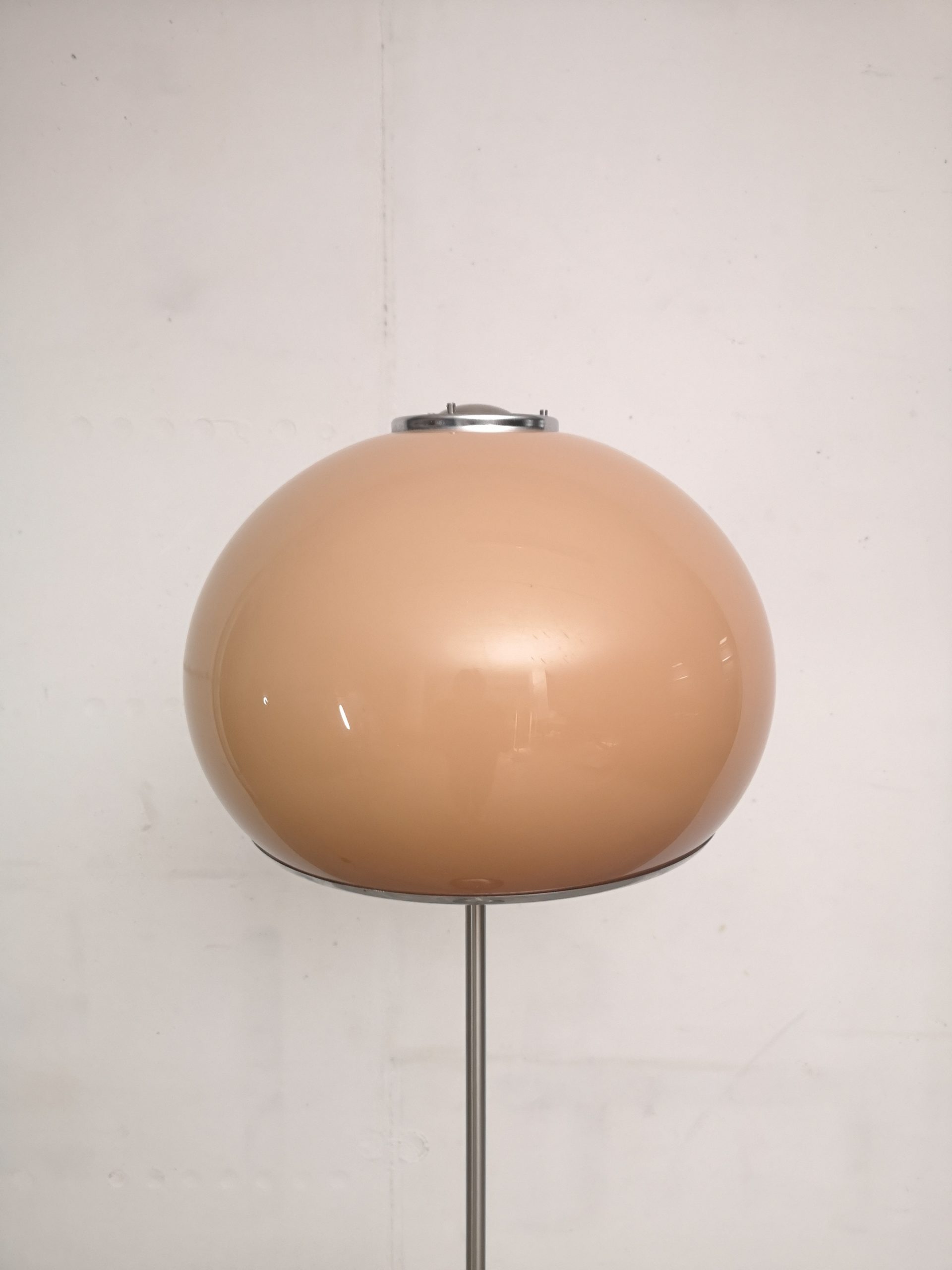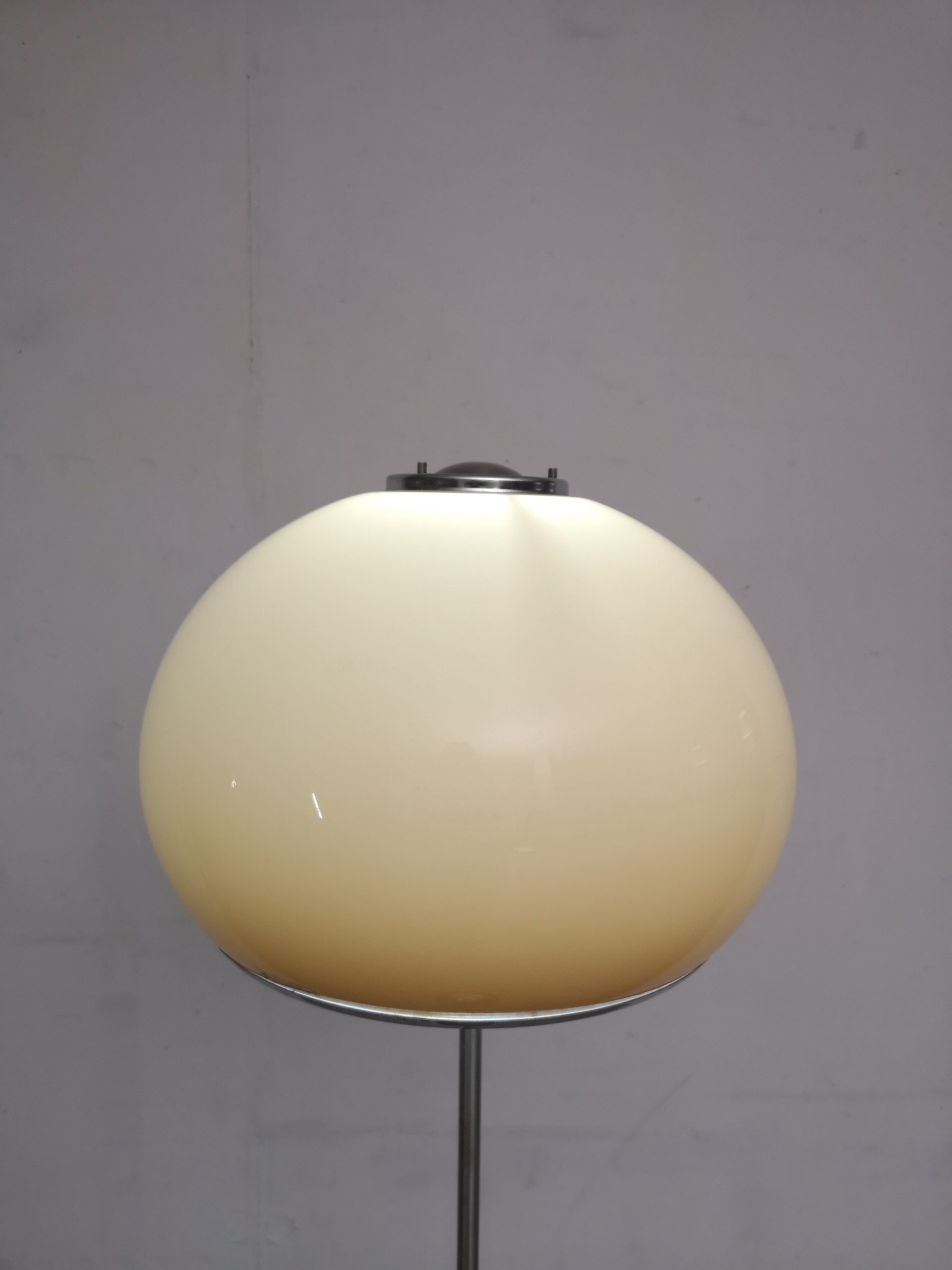 Produit venduLampe sur pied de Harvey Guzzini pour Meblo avec abat-jour en plastique et pied chromé. Il y a de légères rayures sur l’abat-jour et des traces sur la barre du pied (voir photos – c’est pire sur les photos qu’en vrai si jamais).