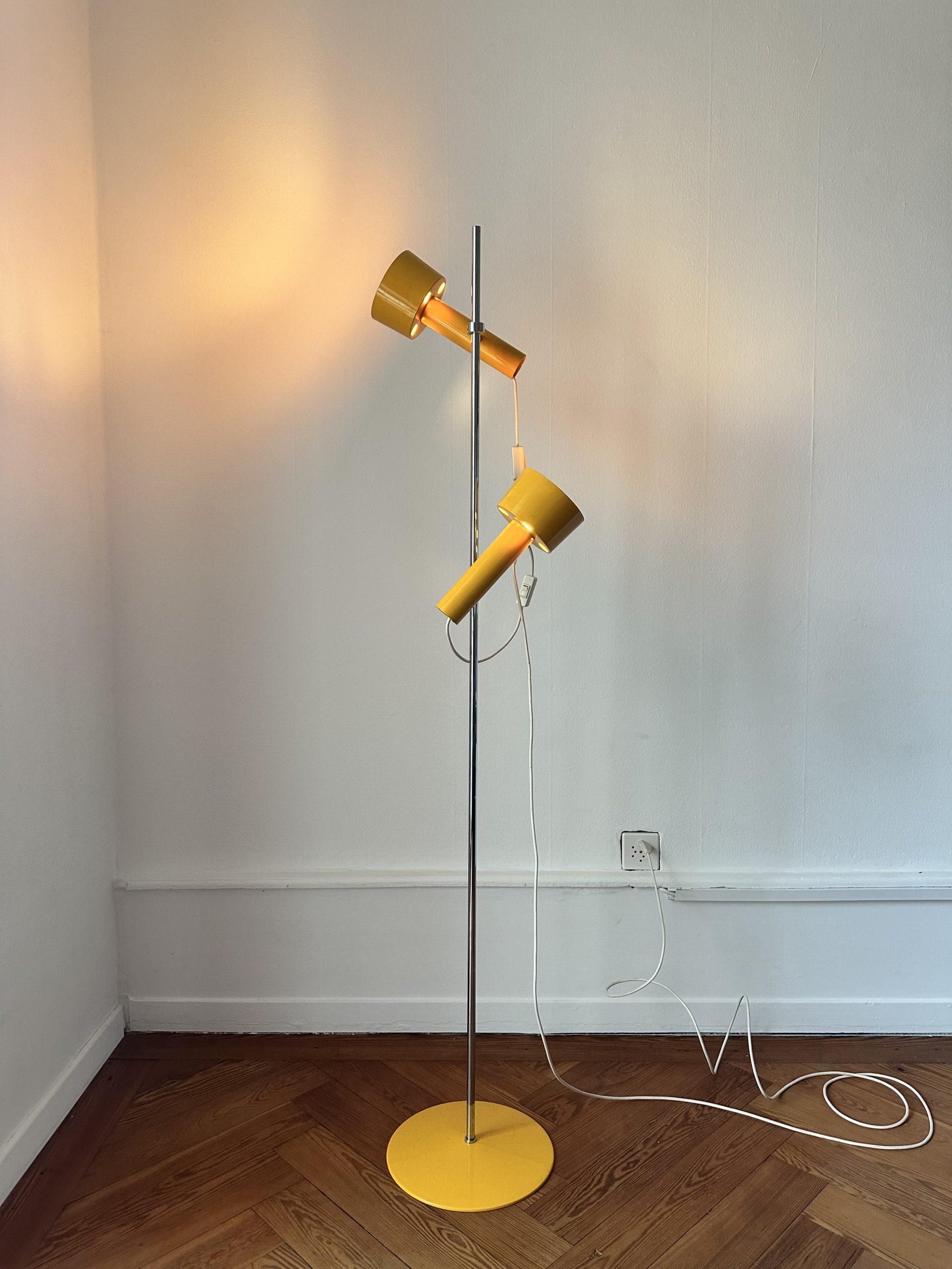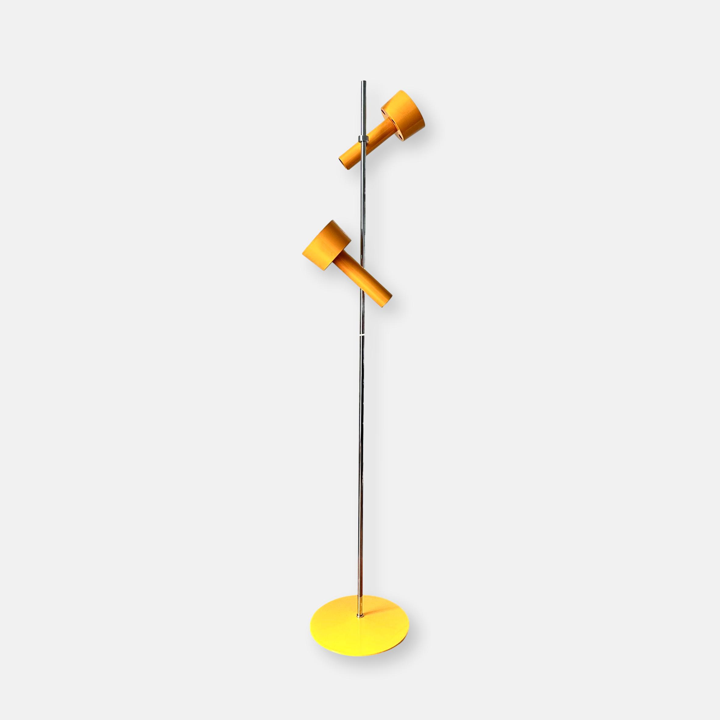 Lampe sur pied jaune, 2 spots, 1970