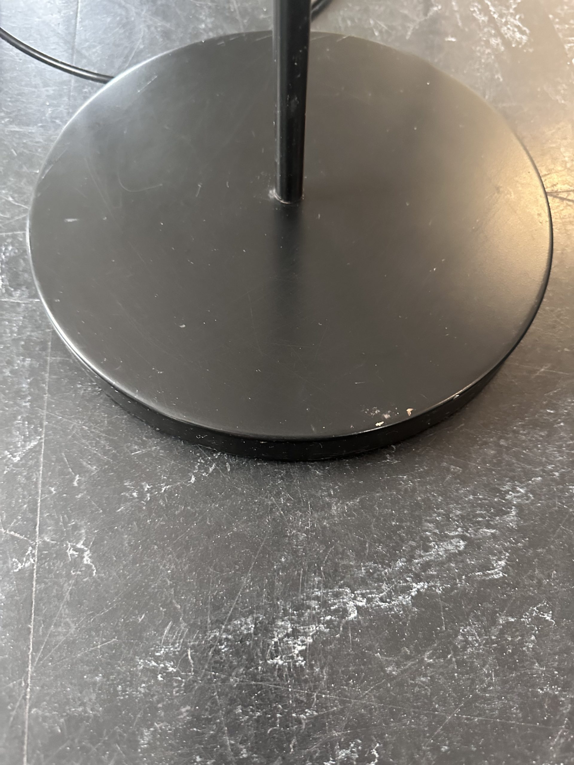 Bon état général. Présence de légères marques du temps, avec quelques griffures et traces visibles sur les spots et la base, sans incidence sur le fonctionnement. Électrification fonctionnelle et ampoules fournies.