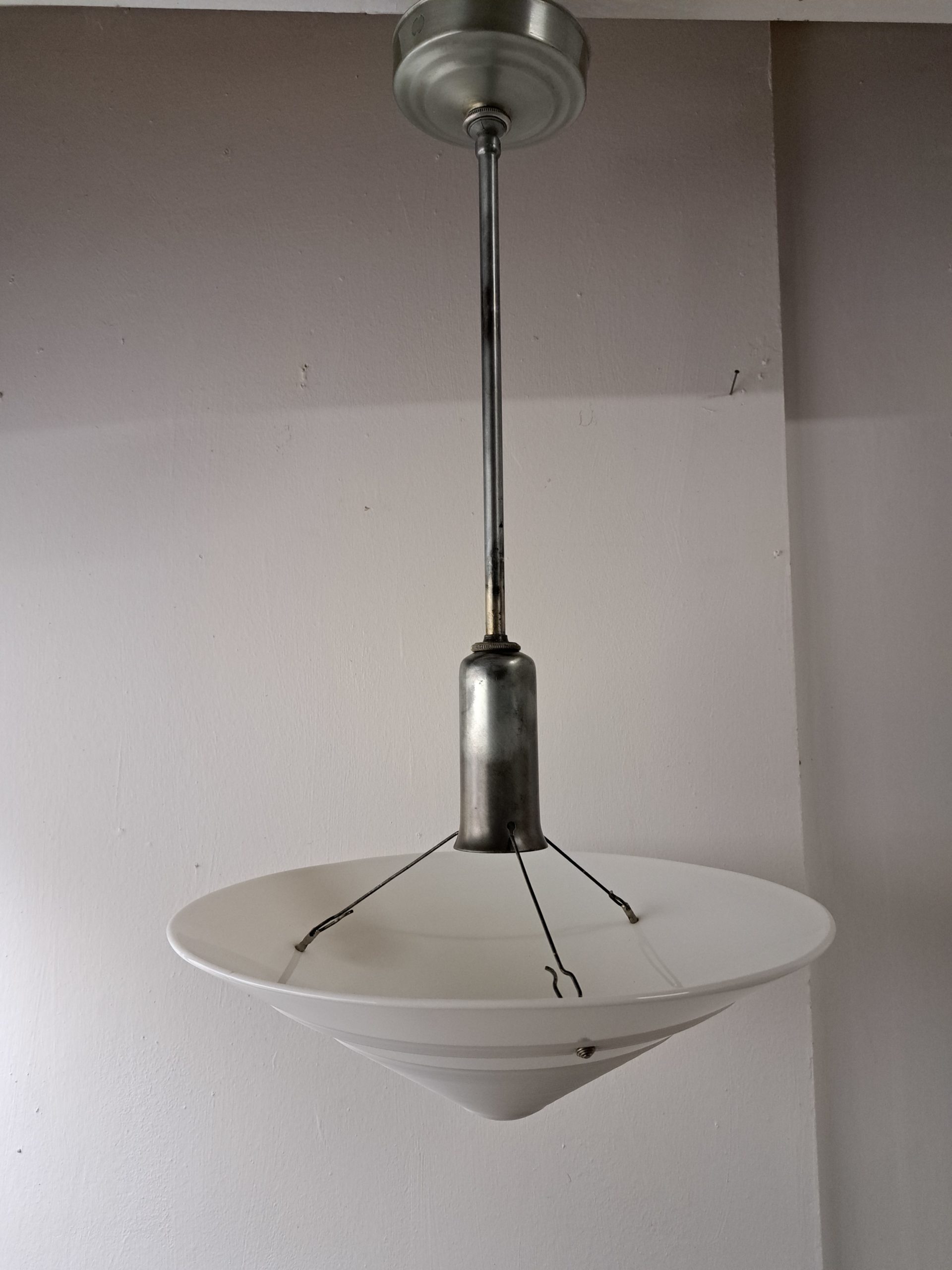 Le verre est en parfait état, la tige de suspension en métal porte quelques marques dues à l’âge de l’objet.