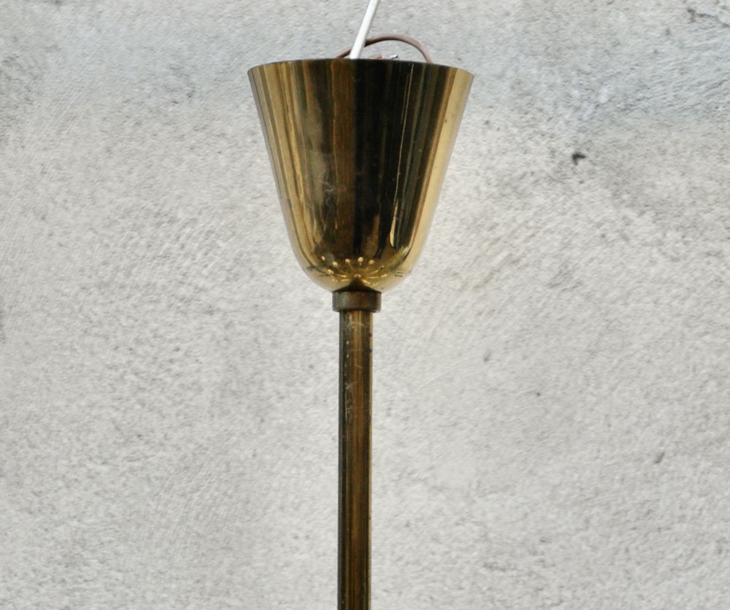 Tous les abat-jours sont d’origine et en parfait état. Un seul, manquant, a dû être remplacé et ne possède pas le même motif que les autres. Une très belle pièce au style ample et élégant.