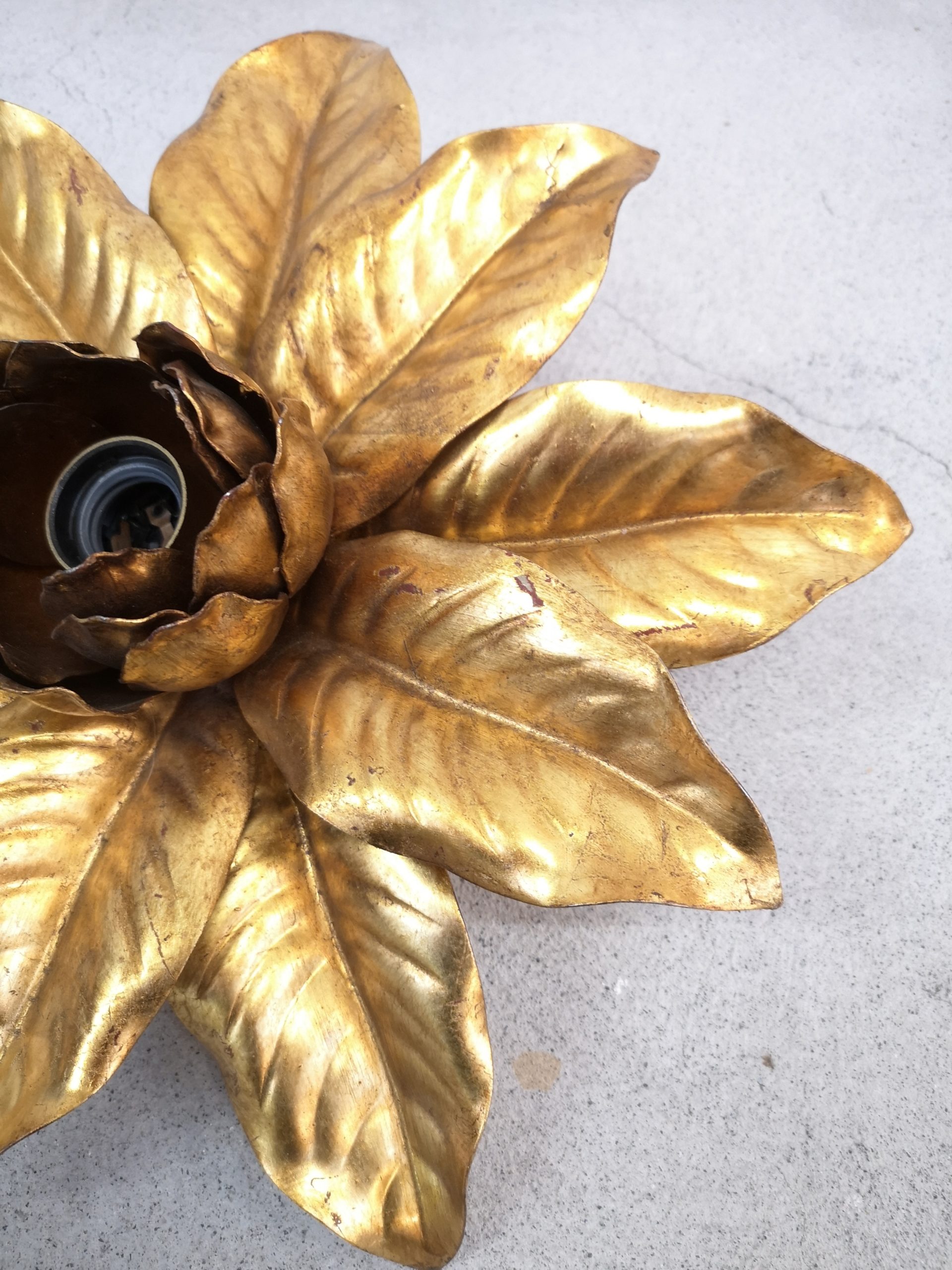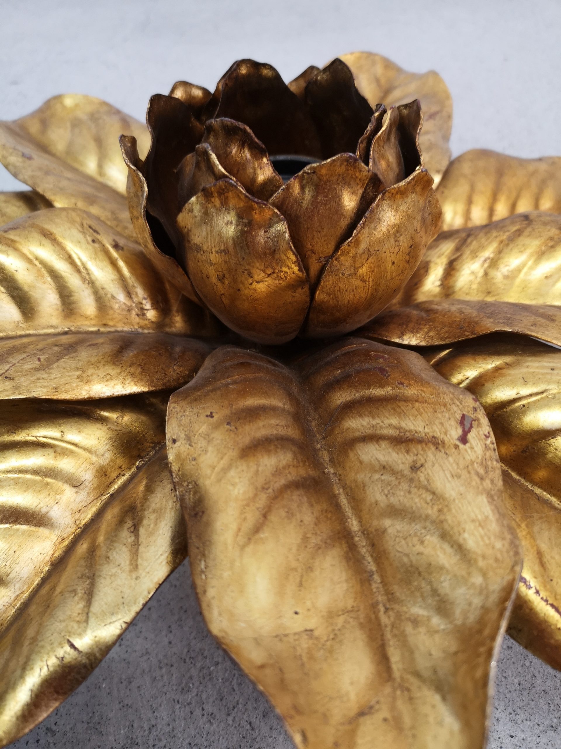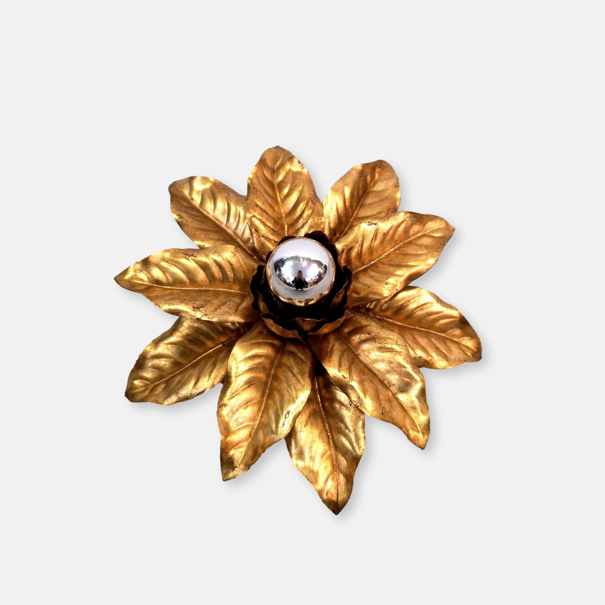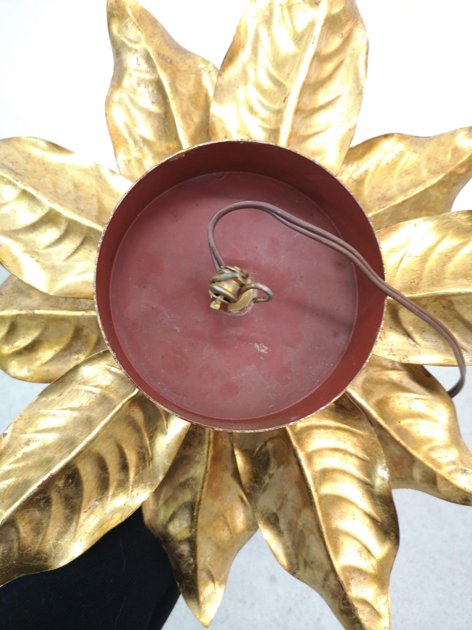 Produit venduPlafonnier ou applique vintage en forme de fleur en métal doré.
