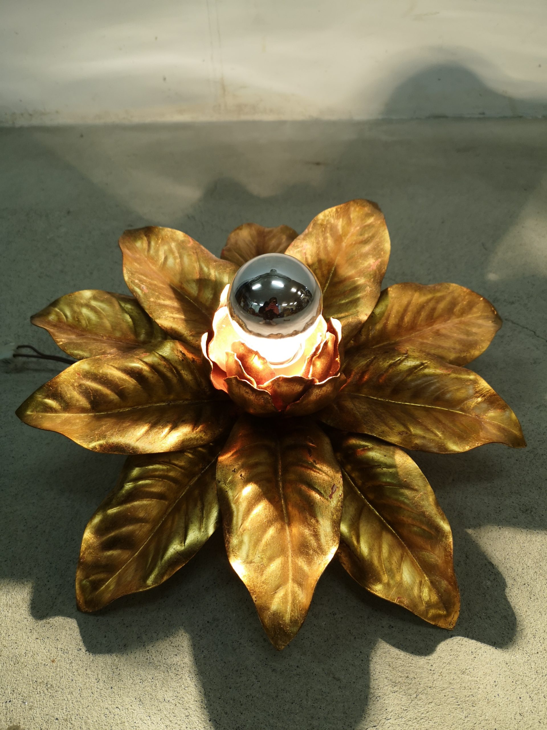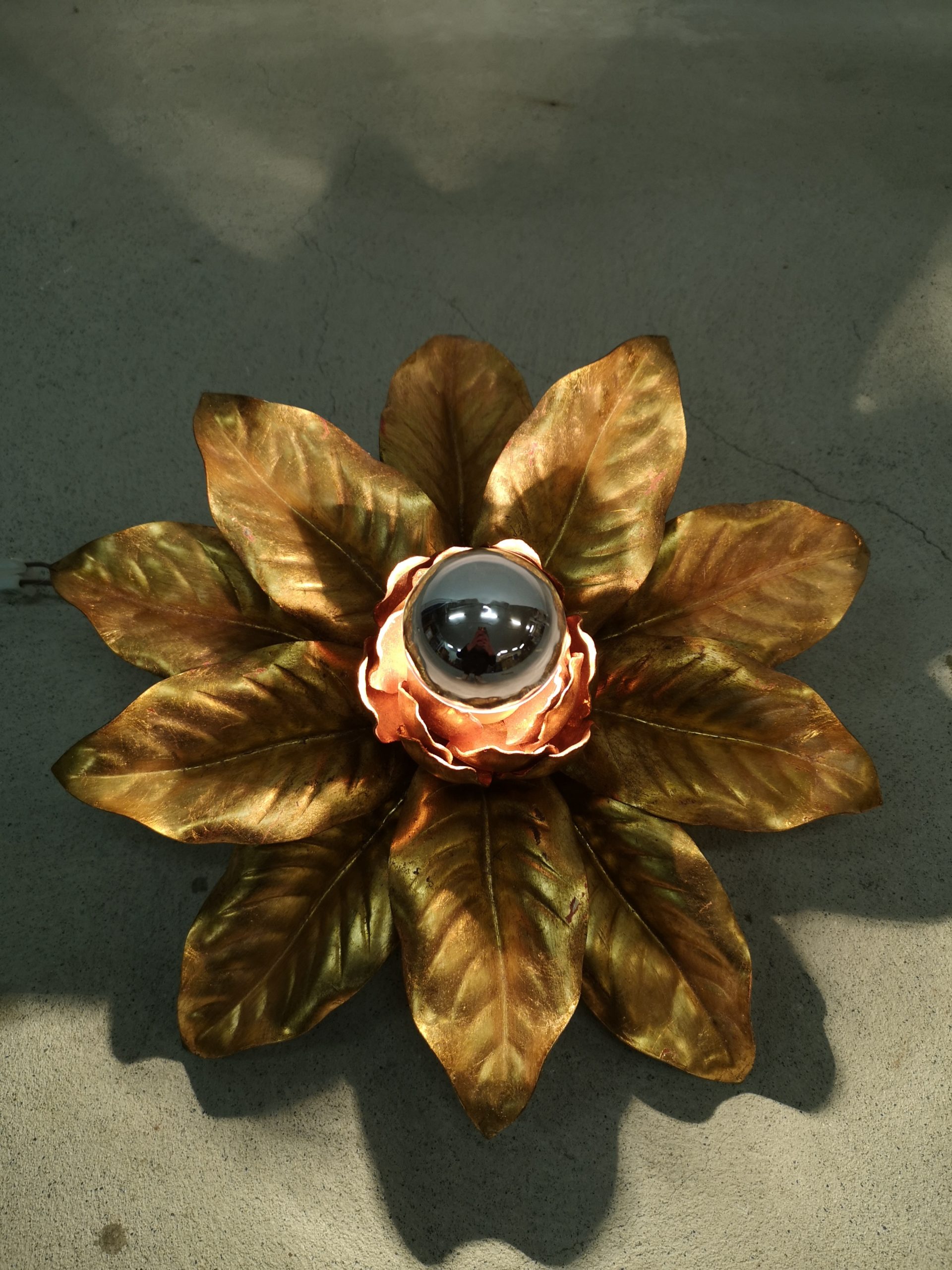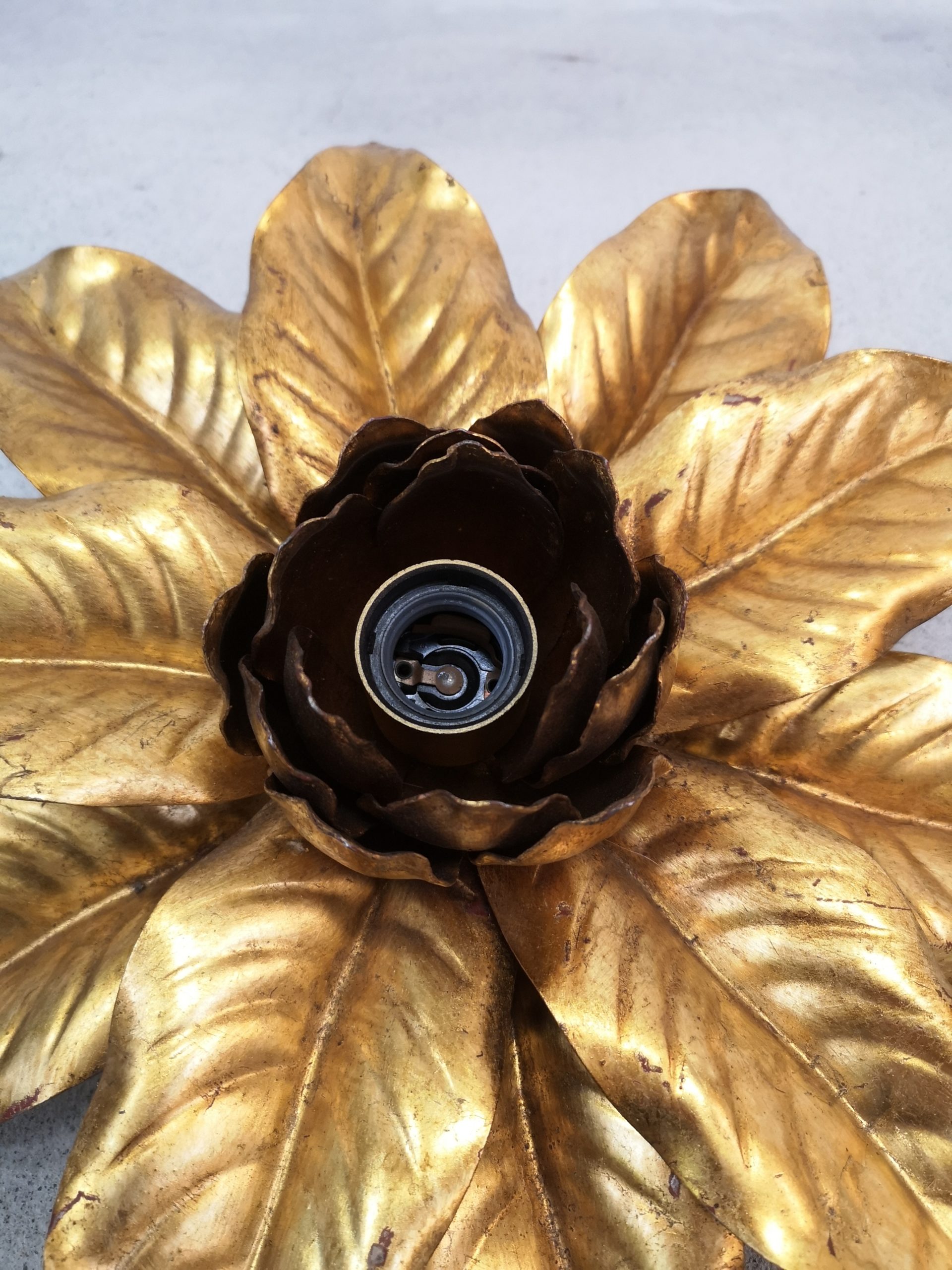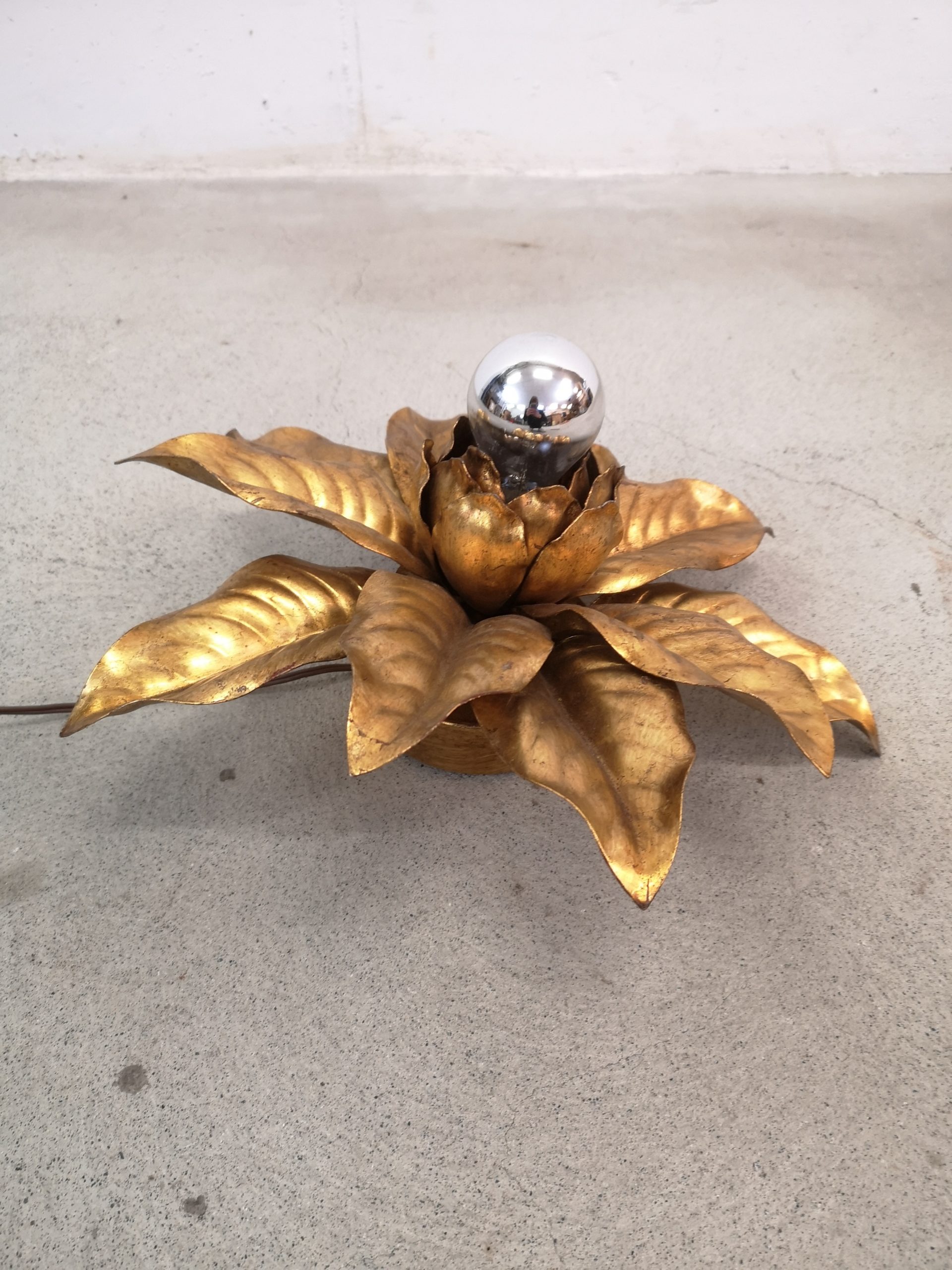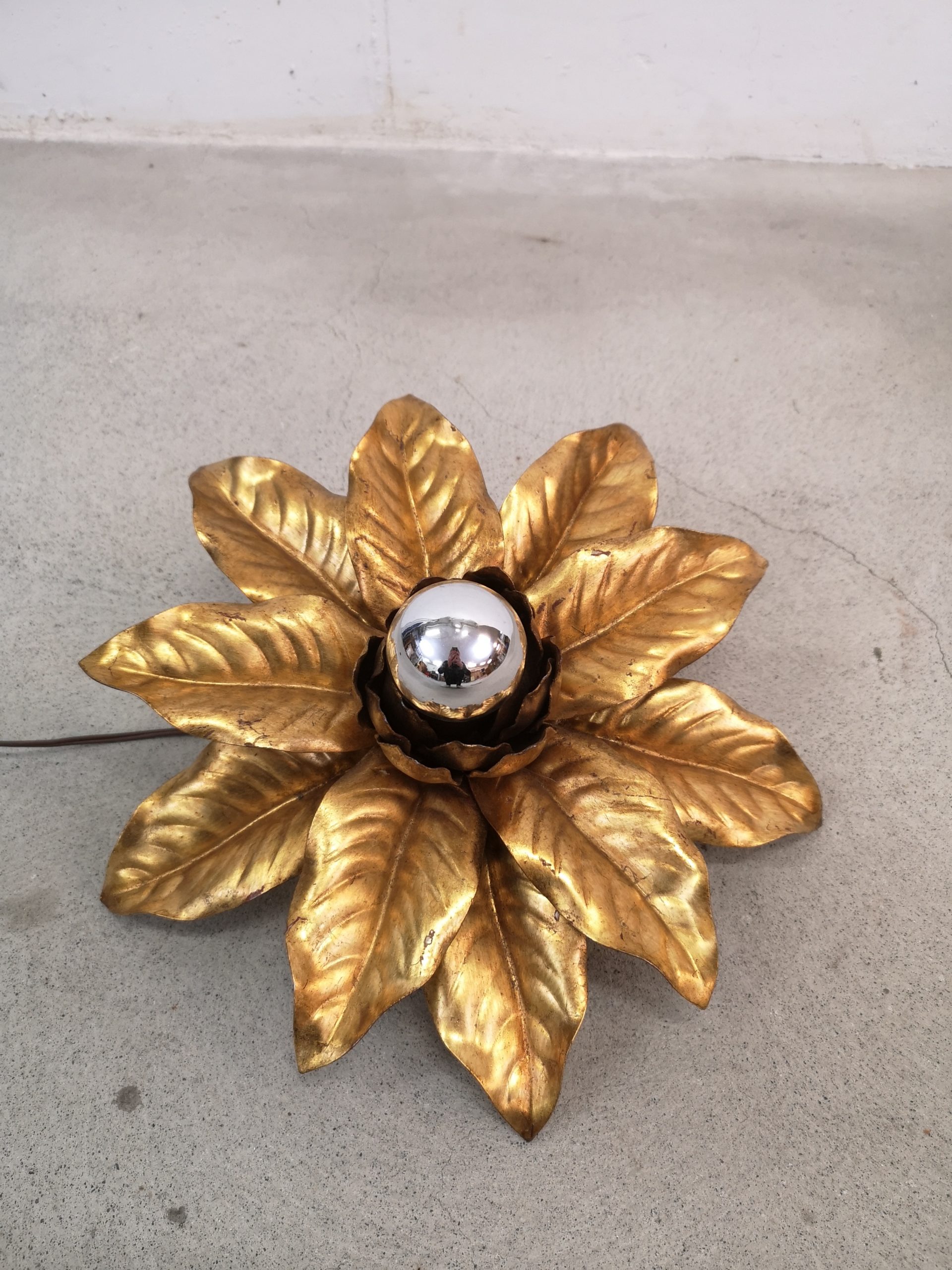 Produit venduPlafonnier ou applique vintage en forme de fleur en métal doré.