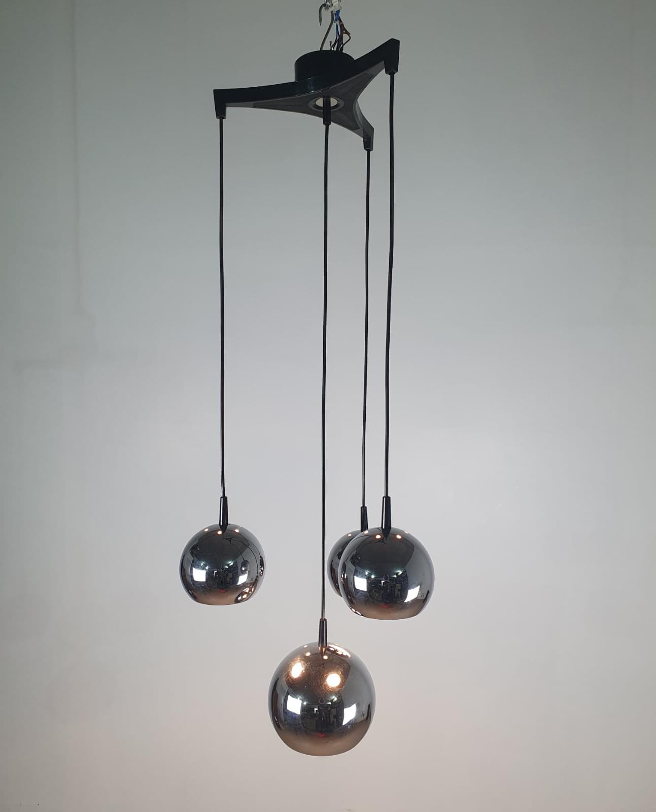 Produit venduPlafonnier cascade des années 70 avec 4 boules en métal. Ajustable sur la longueur.