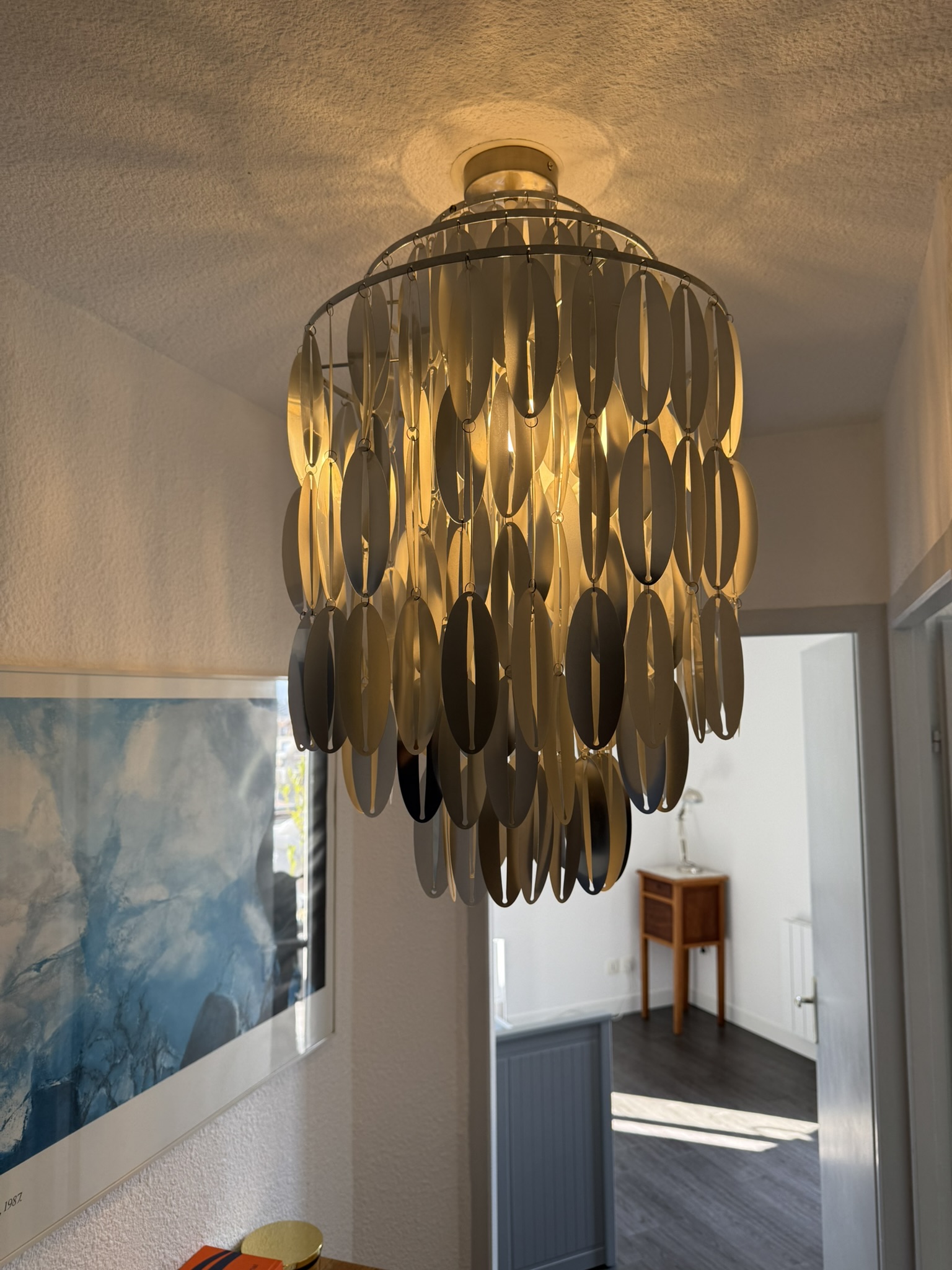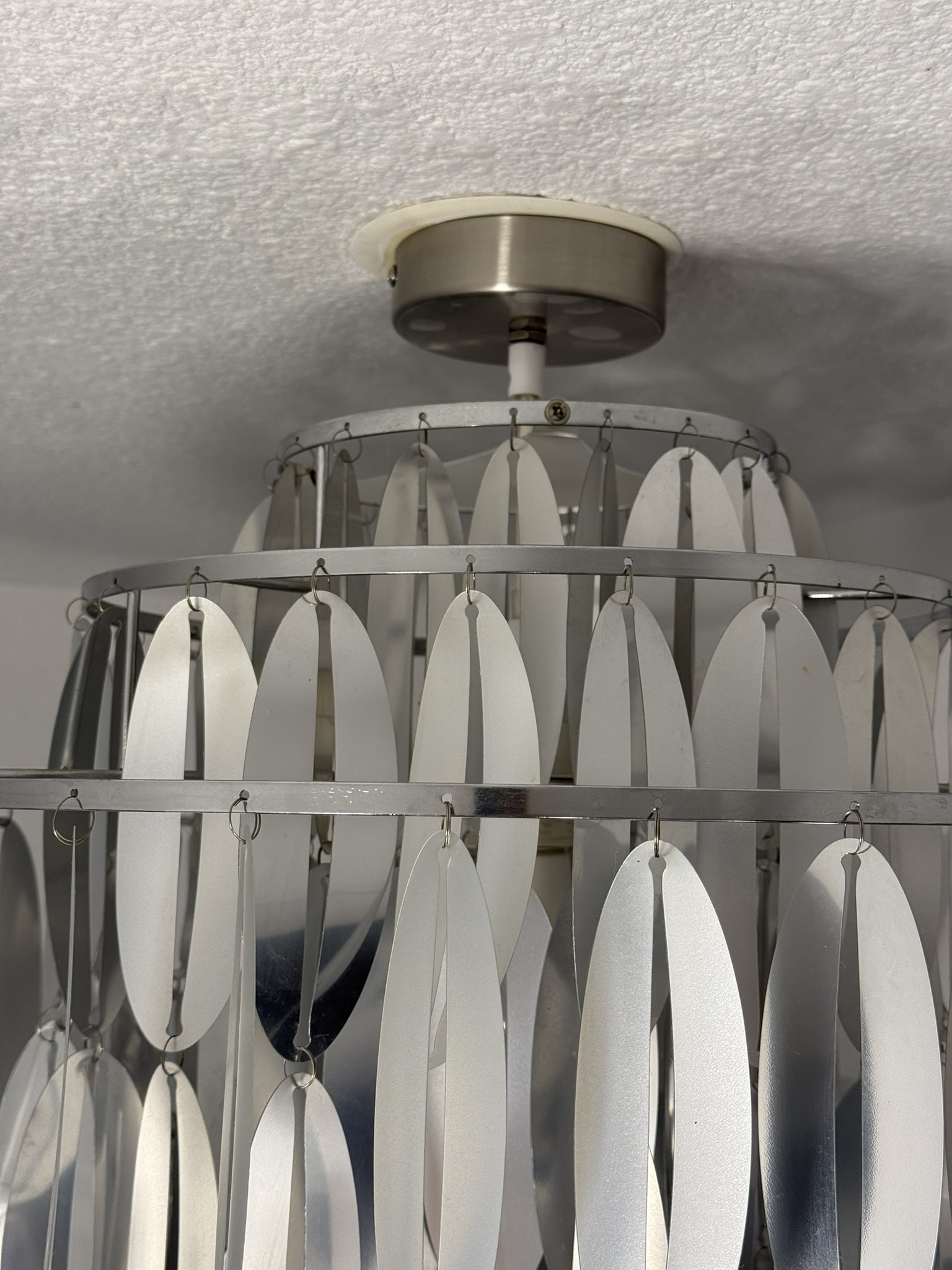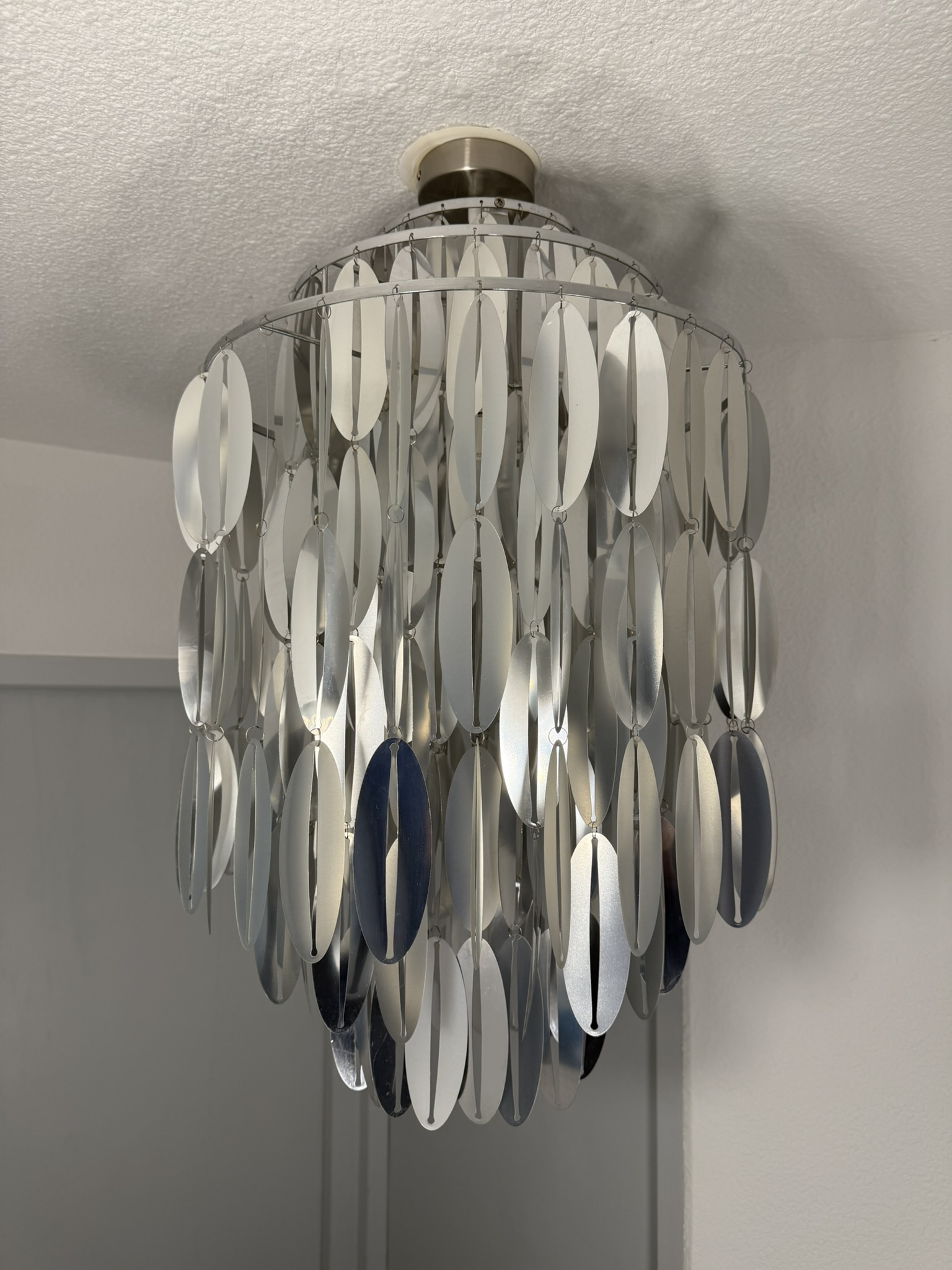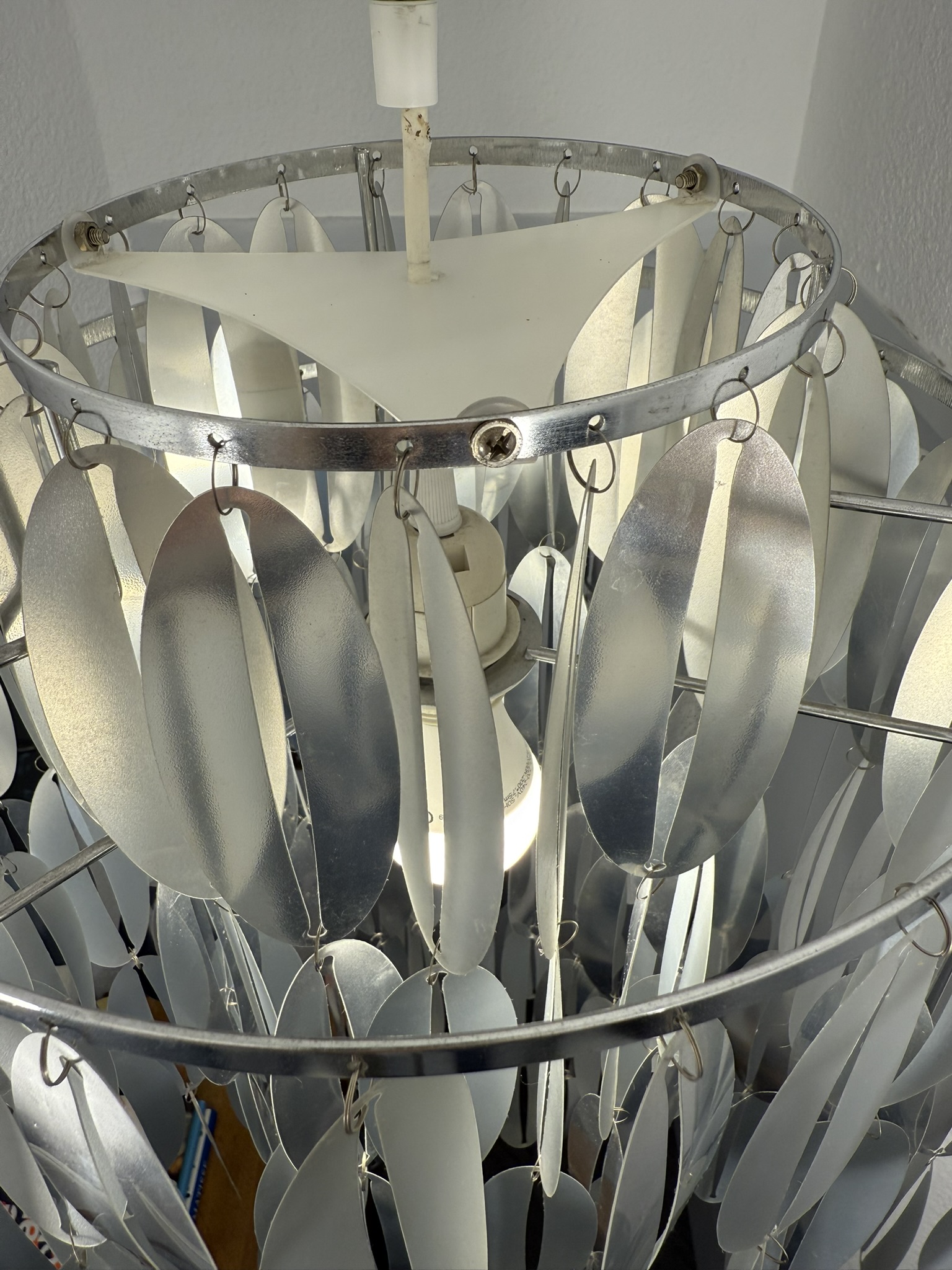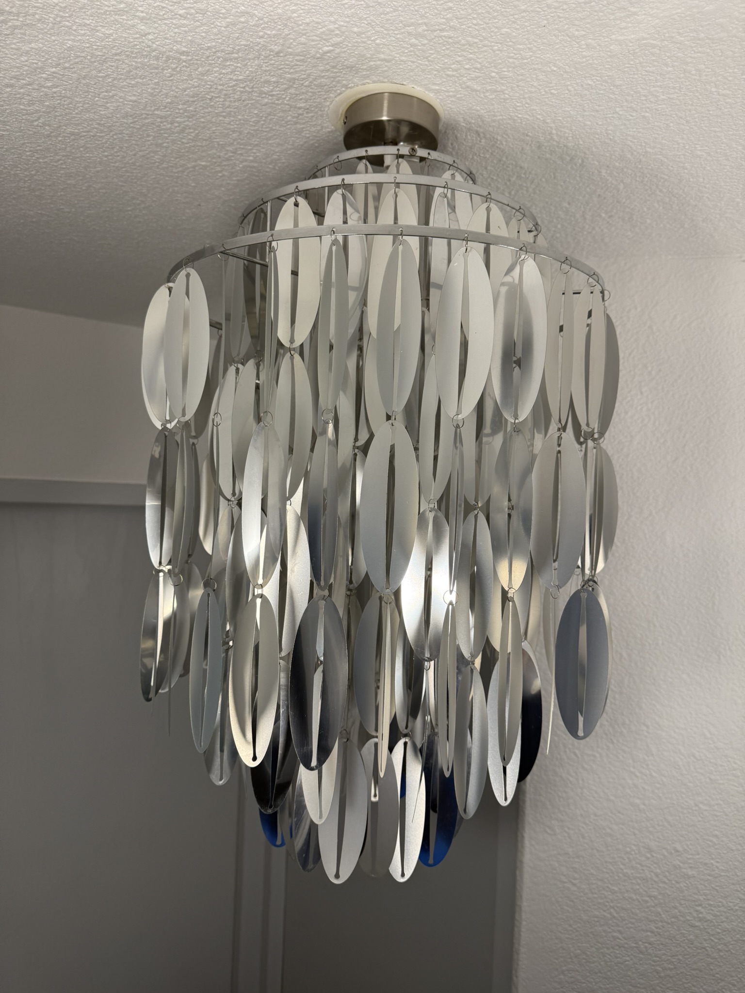 Space age ceiling lamp with cascading plastic discs