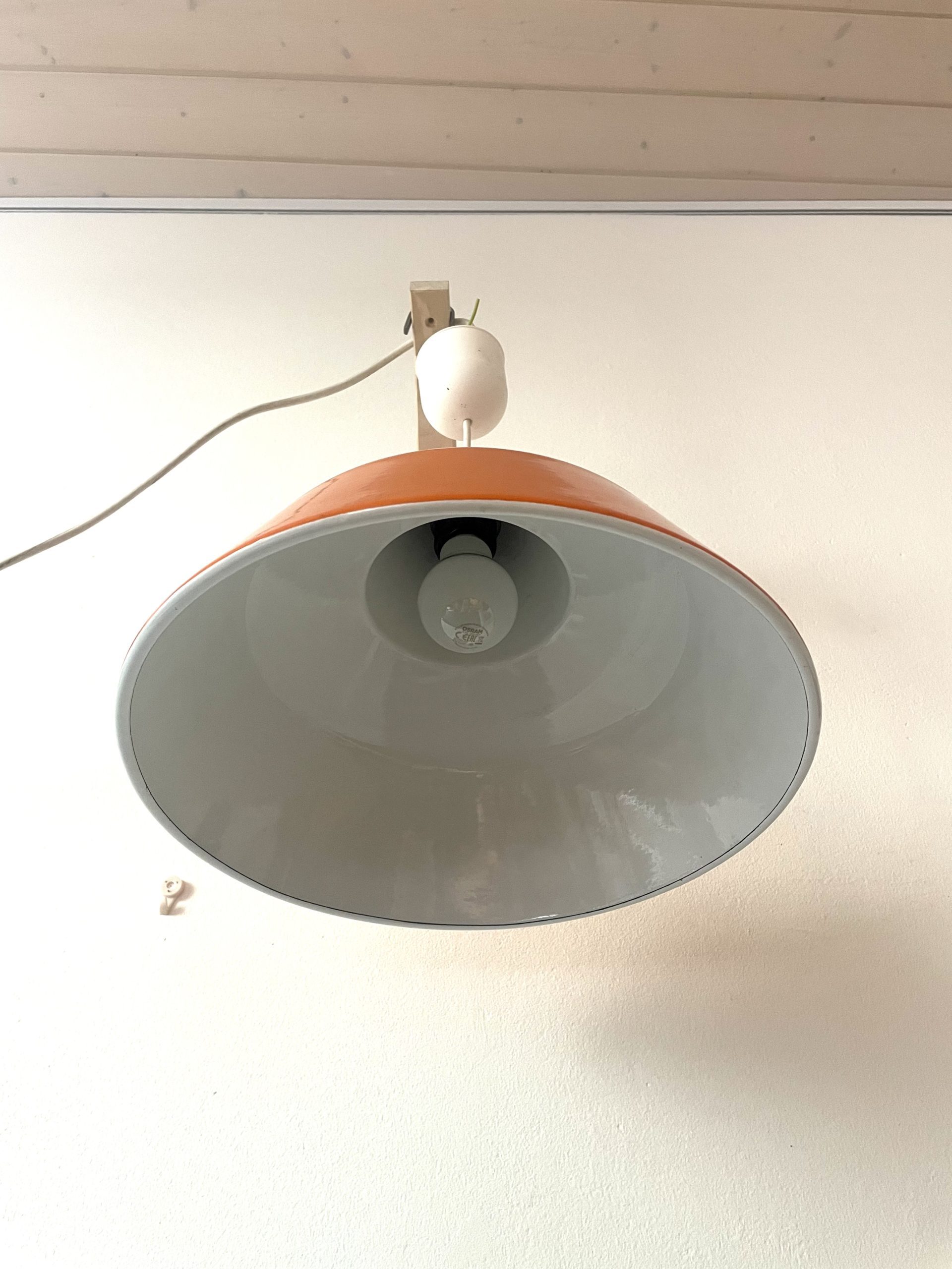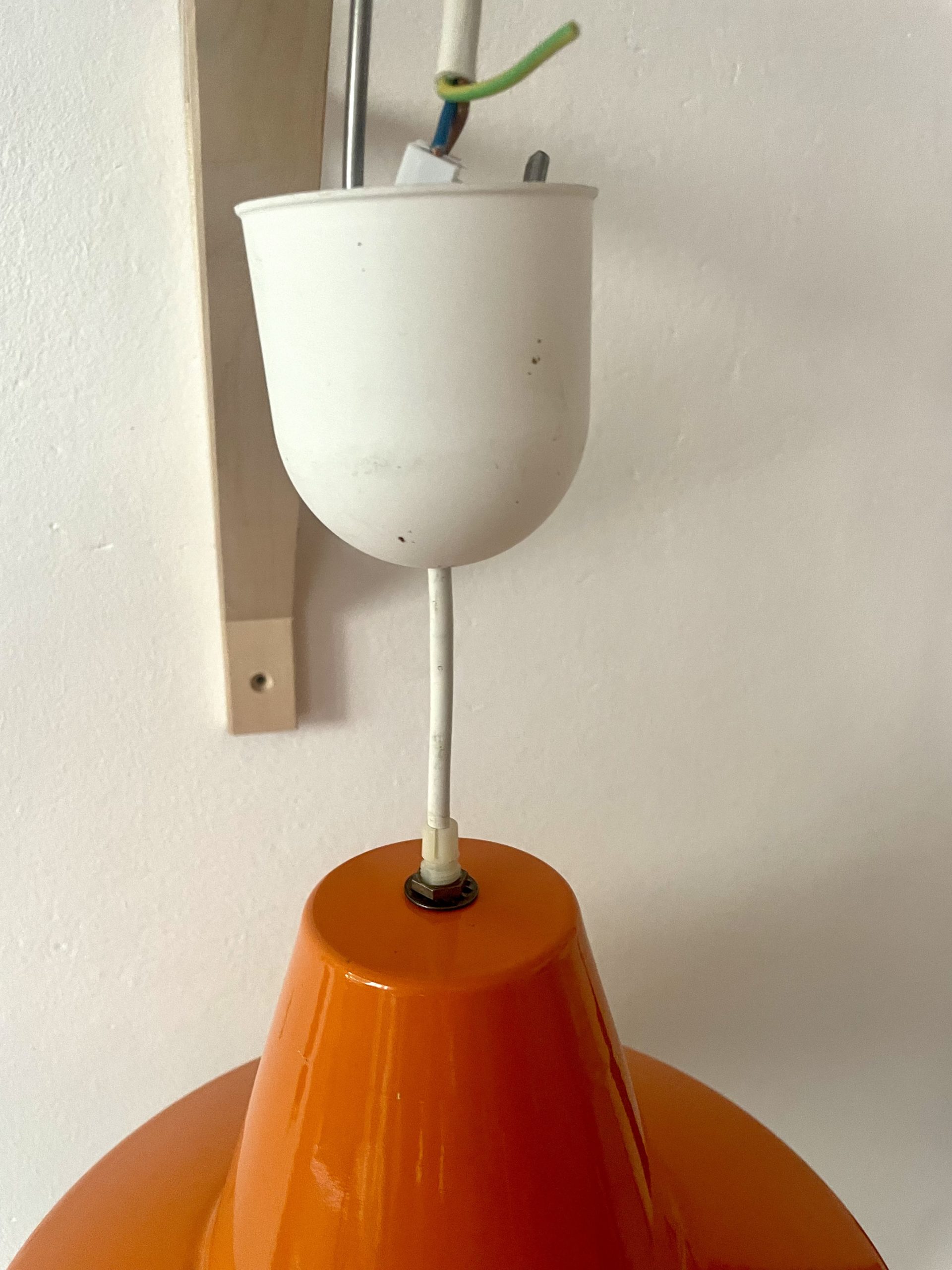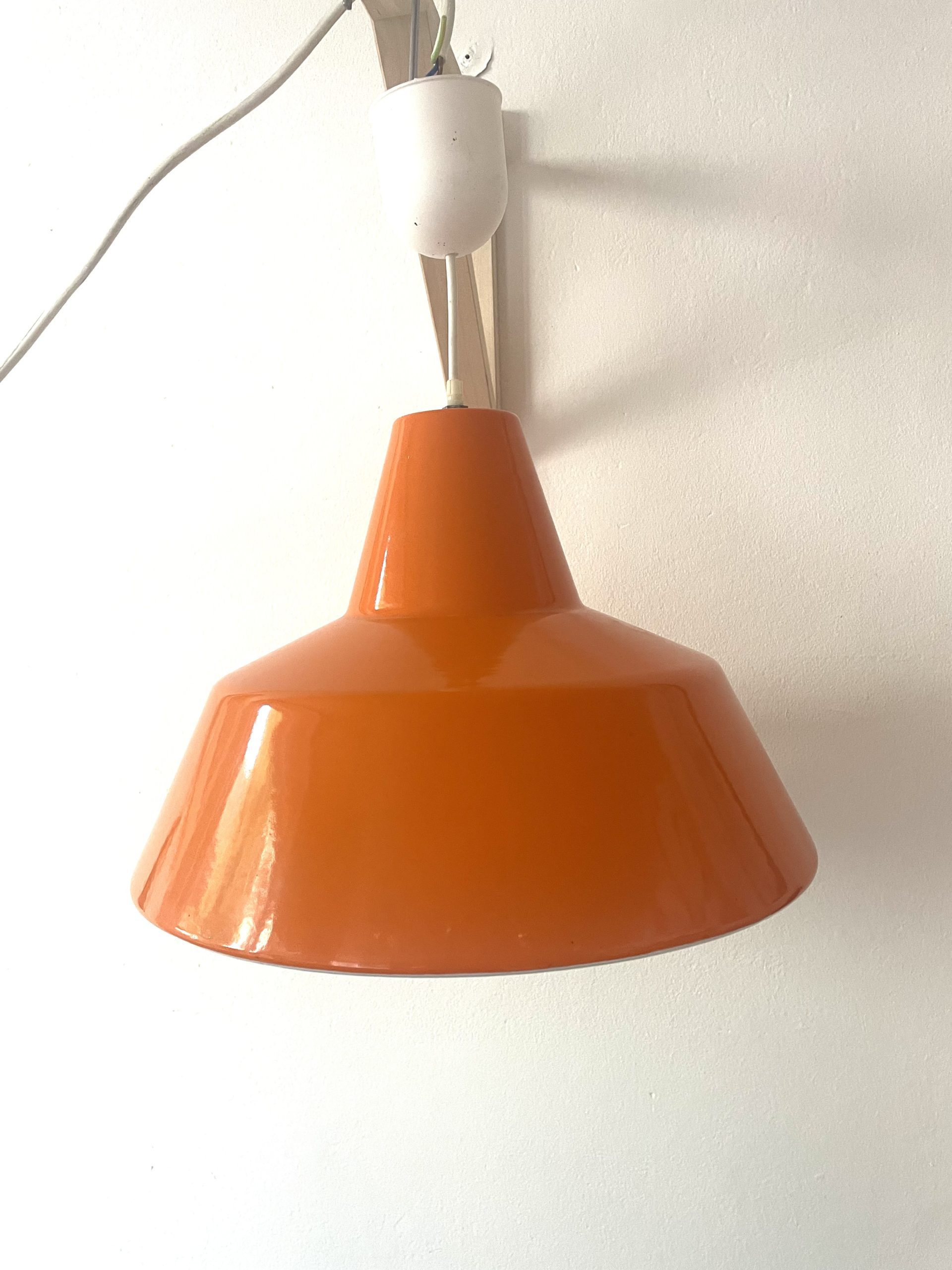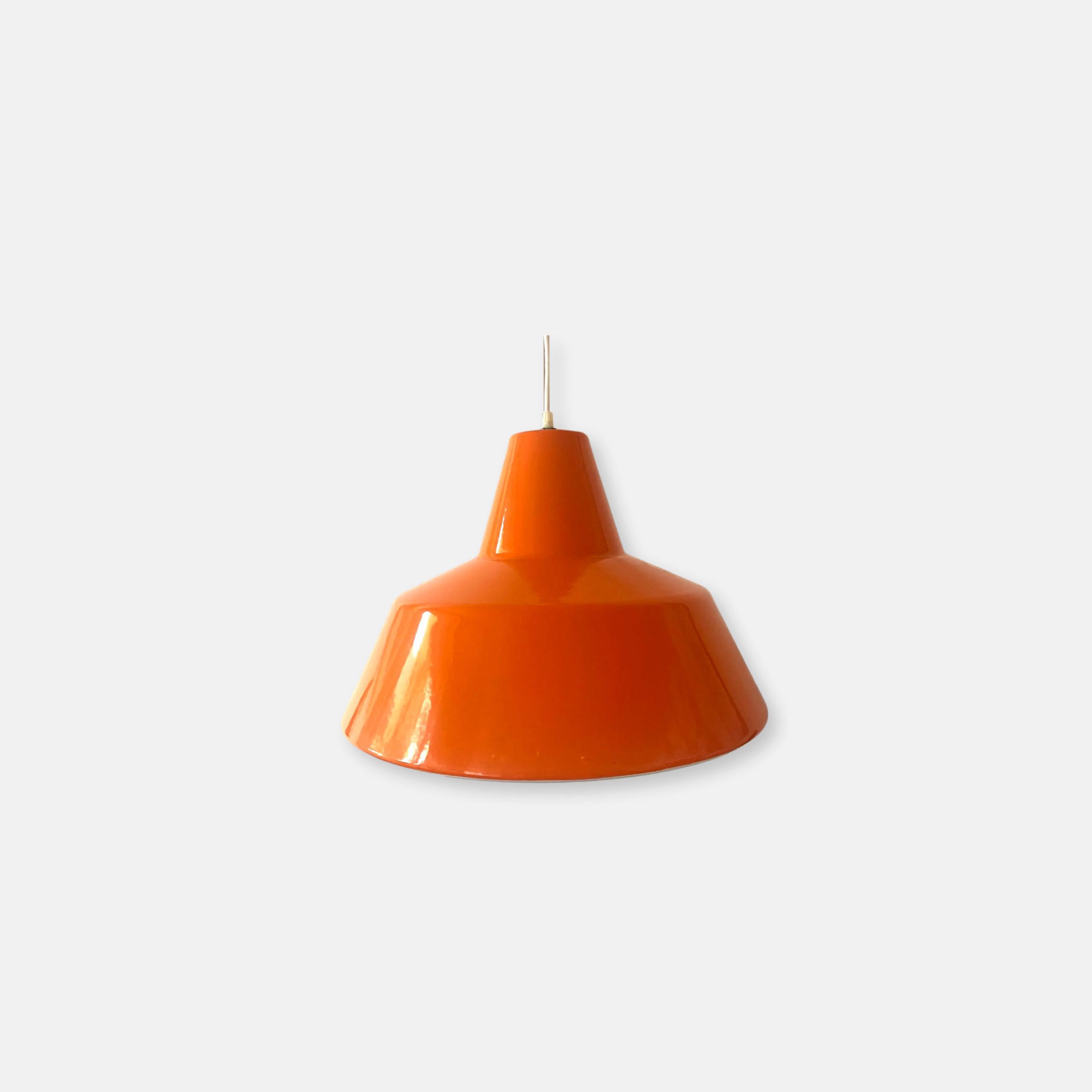 Produit venduSuspension en métal émaillé de couleur orange dans un style industriel.
