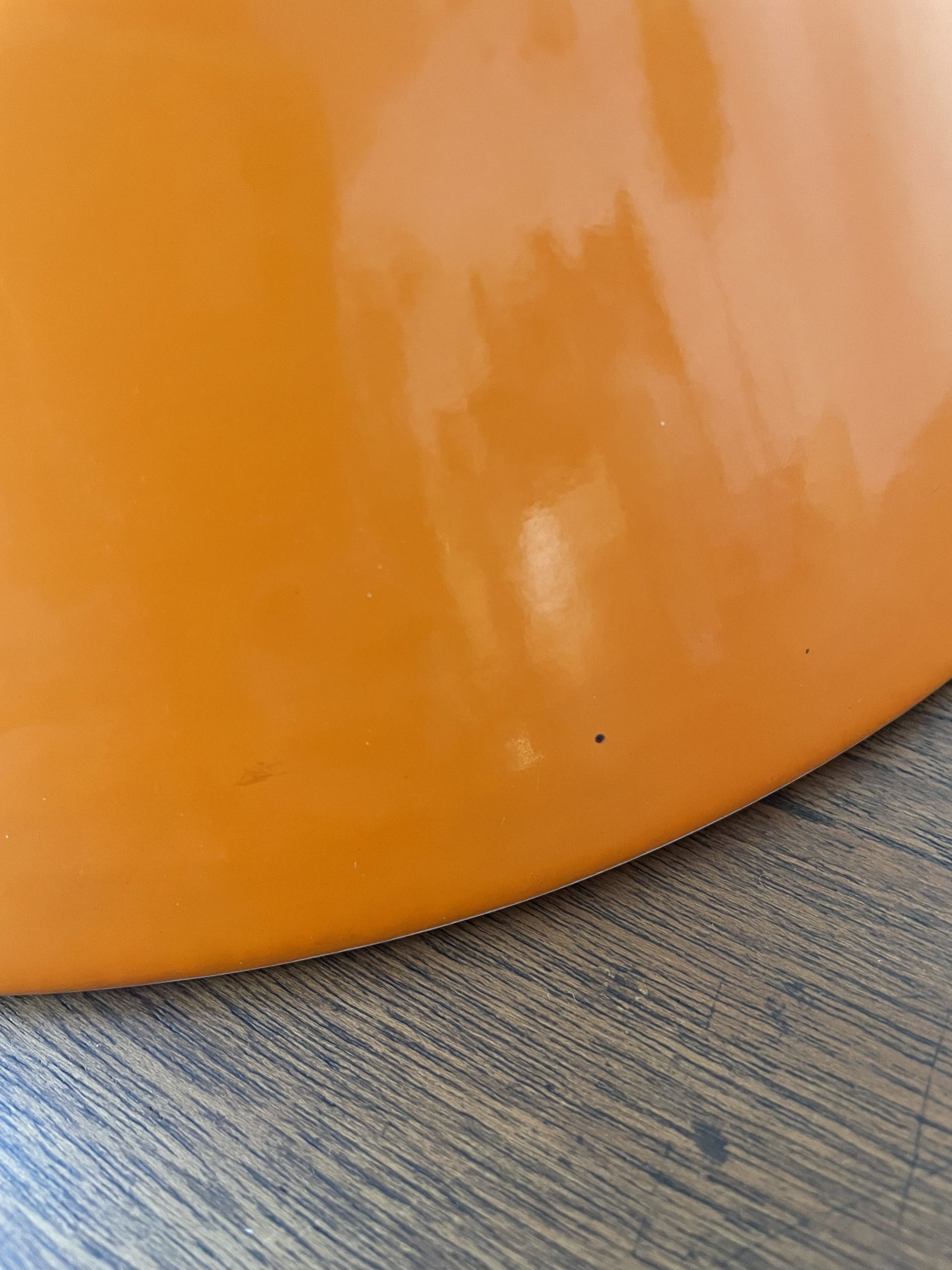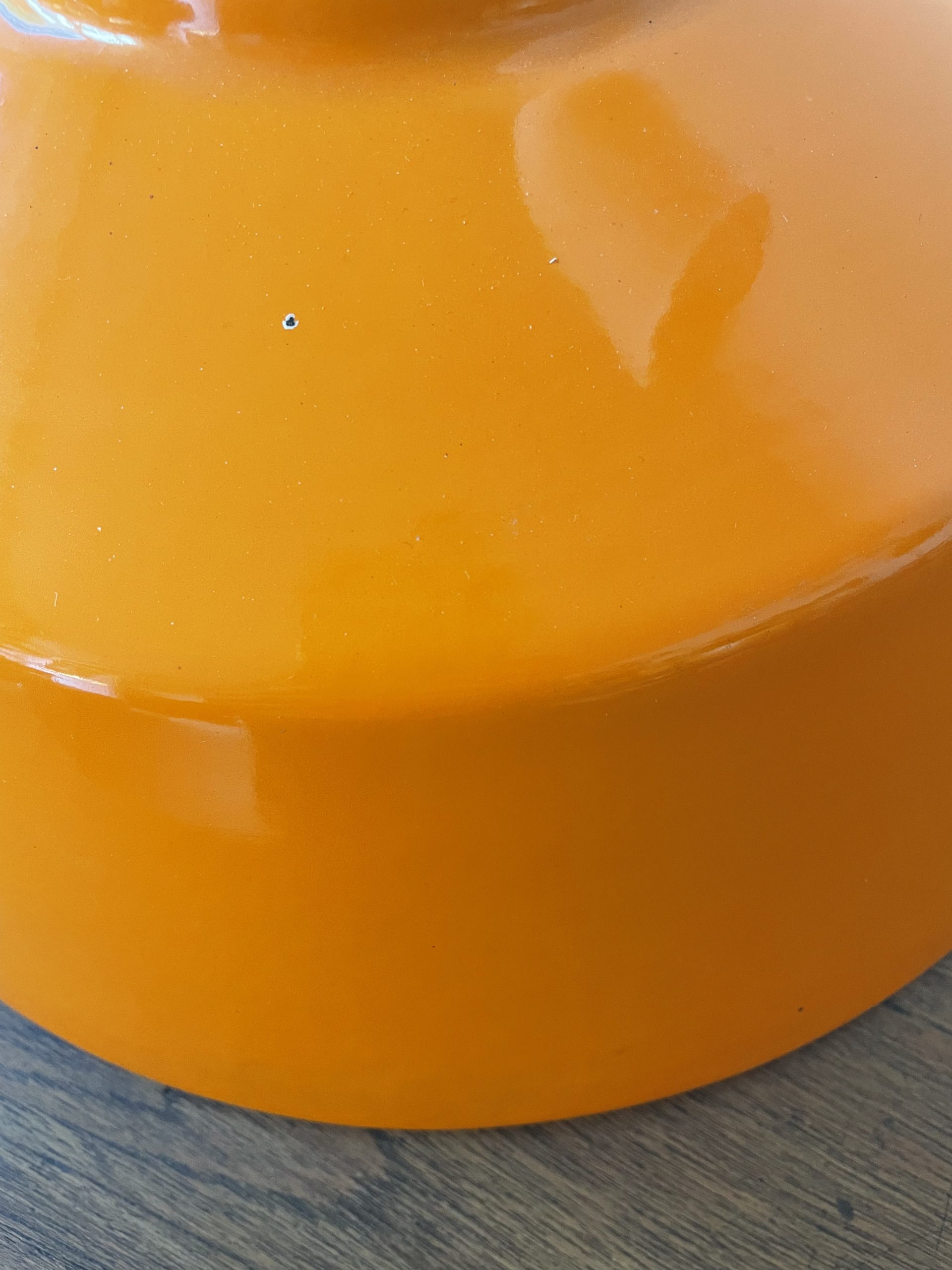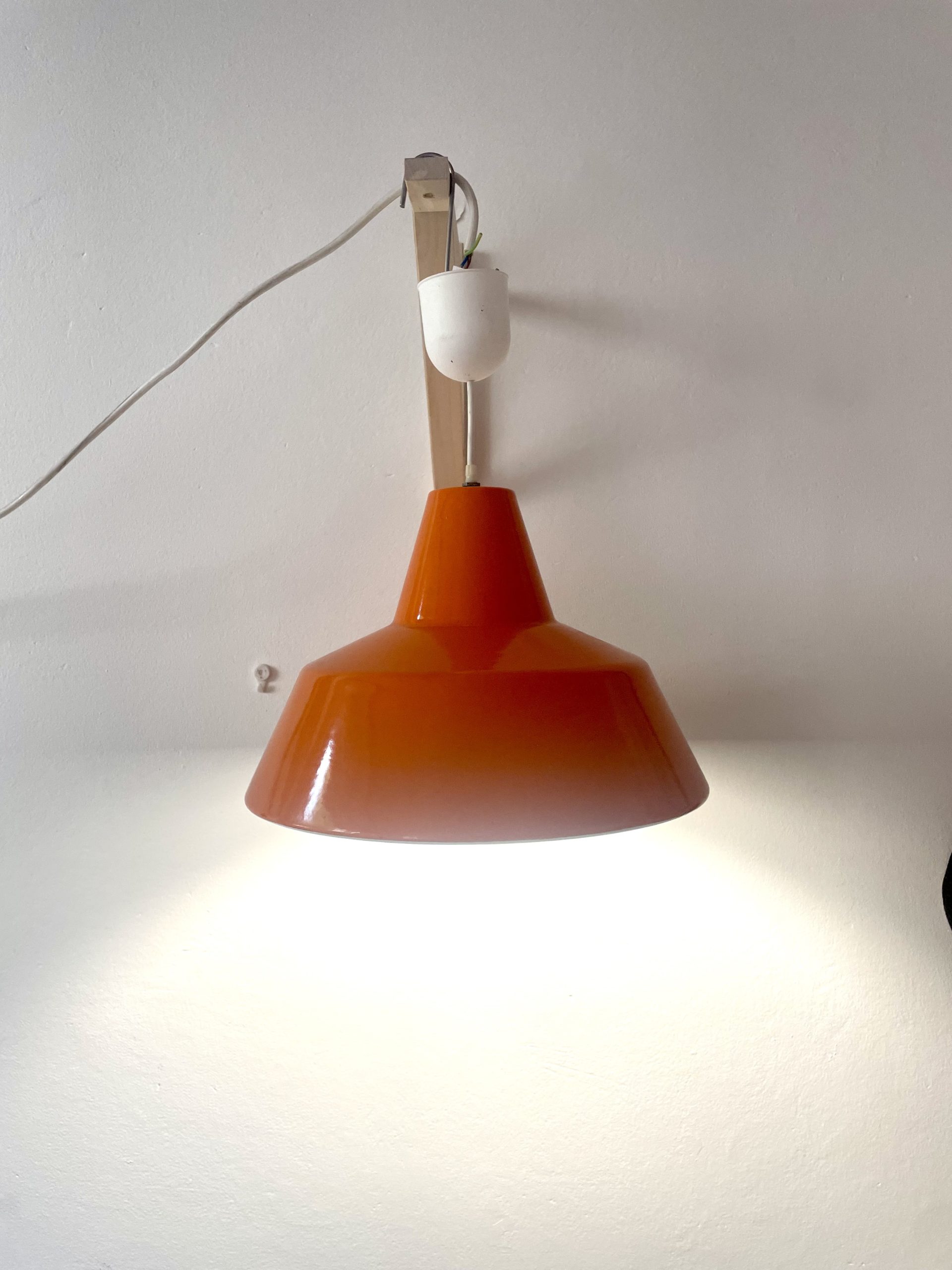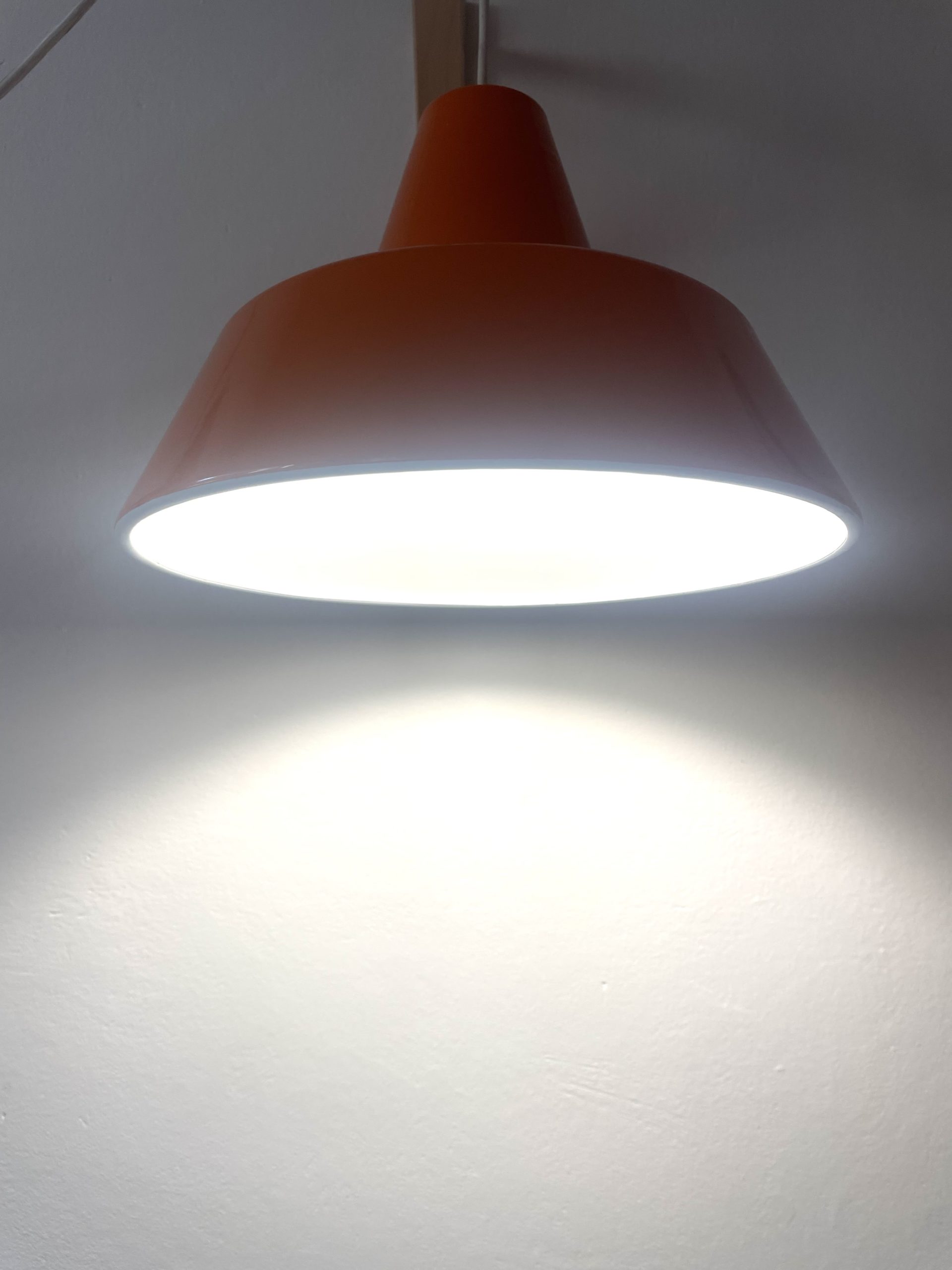 Produit venduSuspension en métal émaillé de couleur orange dans un style industriel.