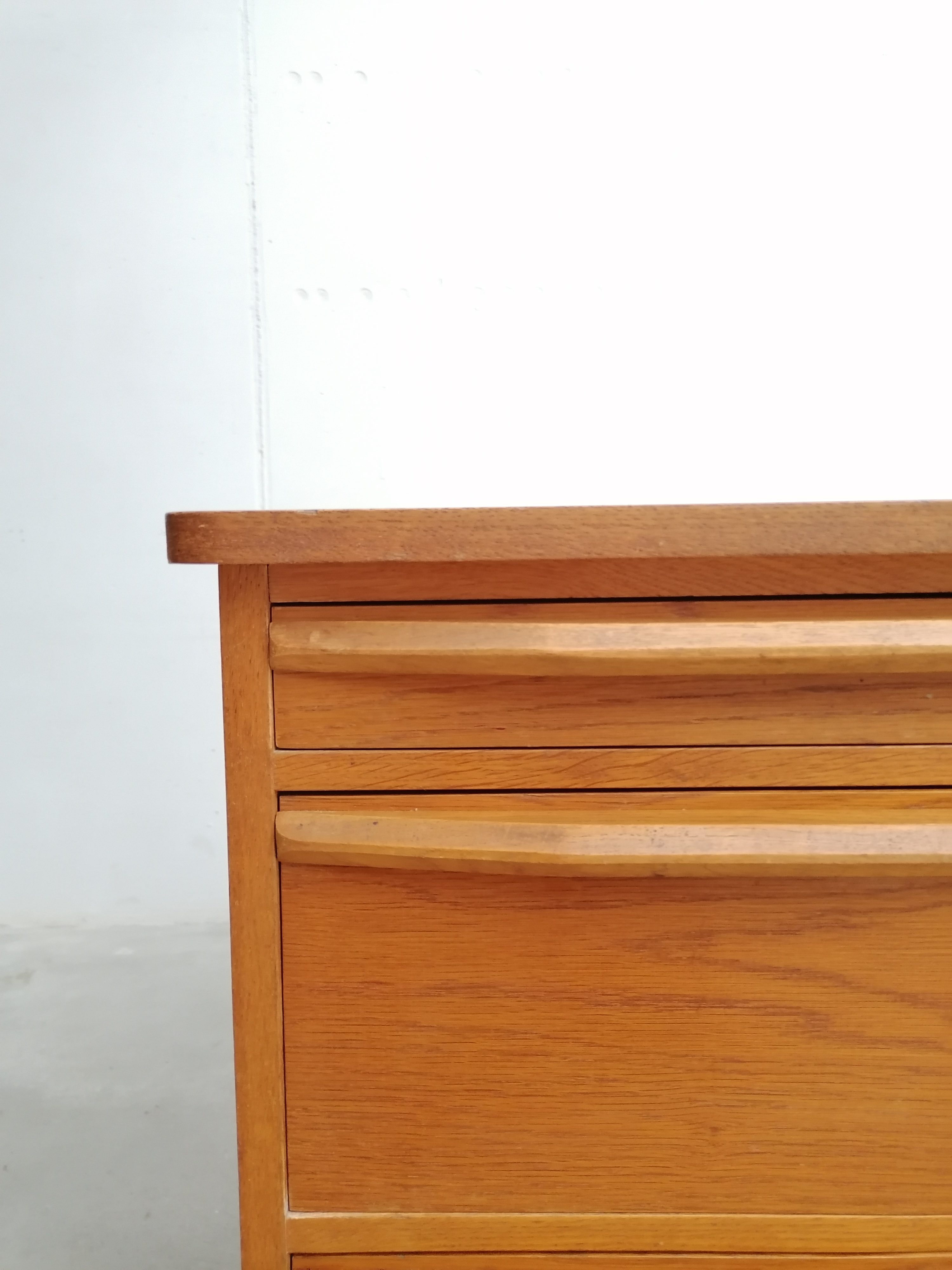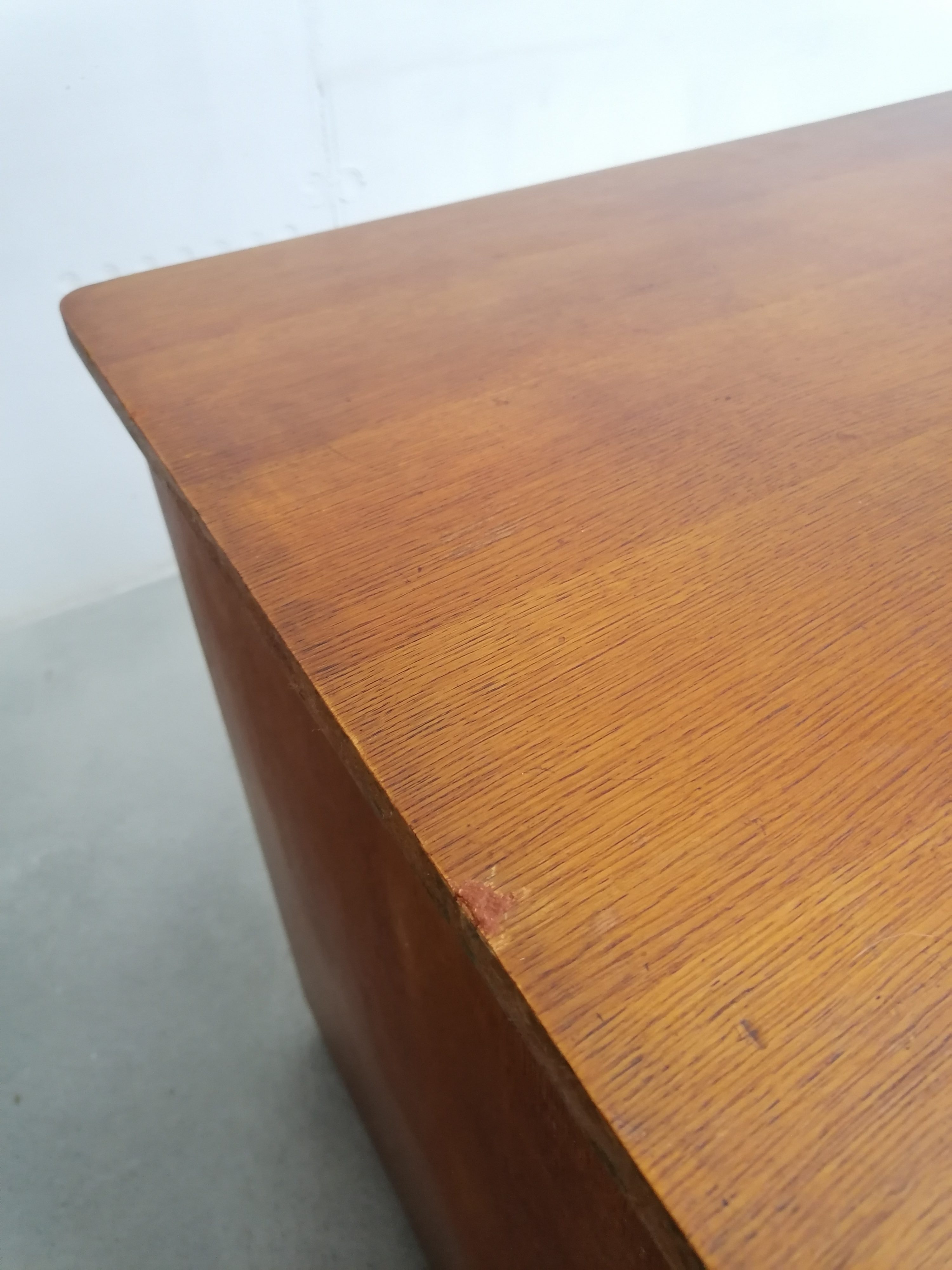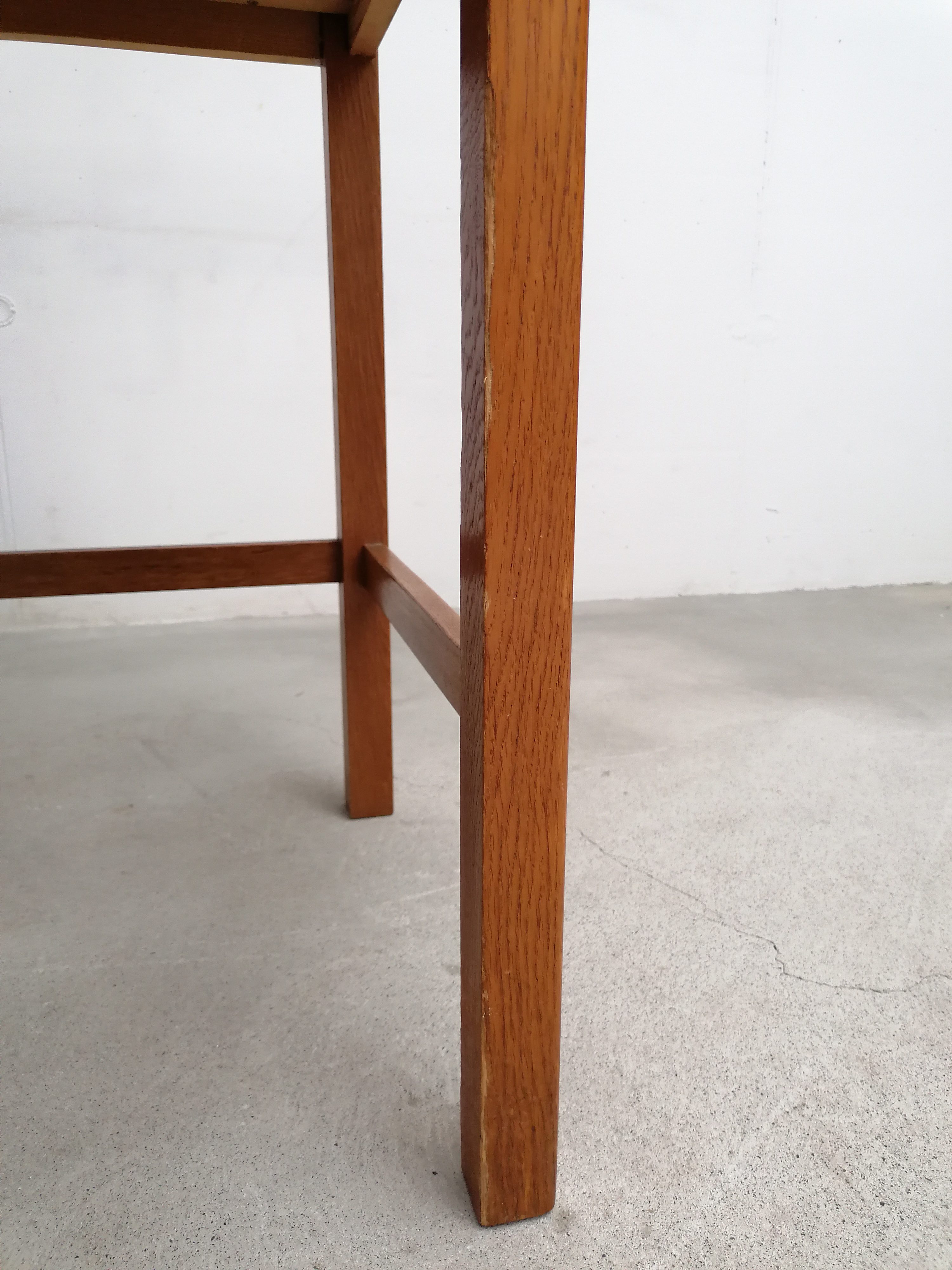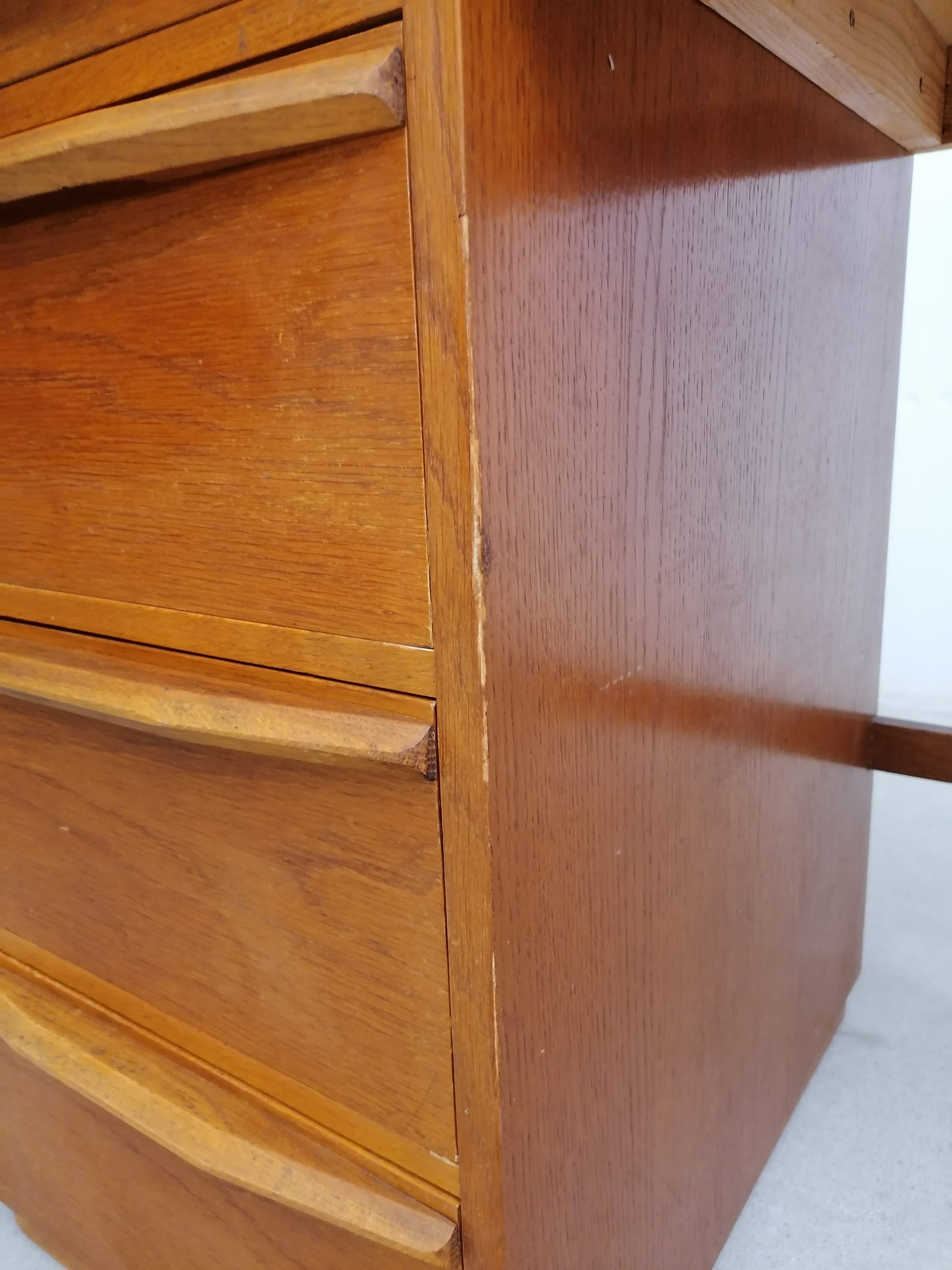 Produit venduBureau vintage en bois avec tablette extensible sur le côté. Doté de 4 tiroirs avec beaucoup d’éléments de rangement amovibles. Quelques traces d’usure sur le bois (voir photos) mais parfaitement stable et solide. Dimensions de l’espace où on peut mettre une chaise de bureau: hauteur 65.5 cm et largeur 50 cm.