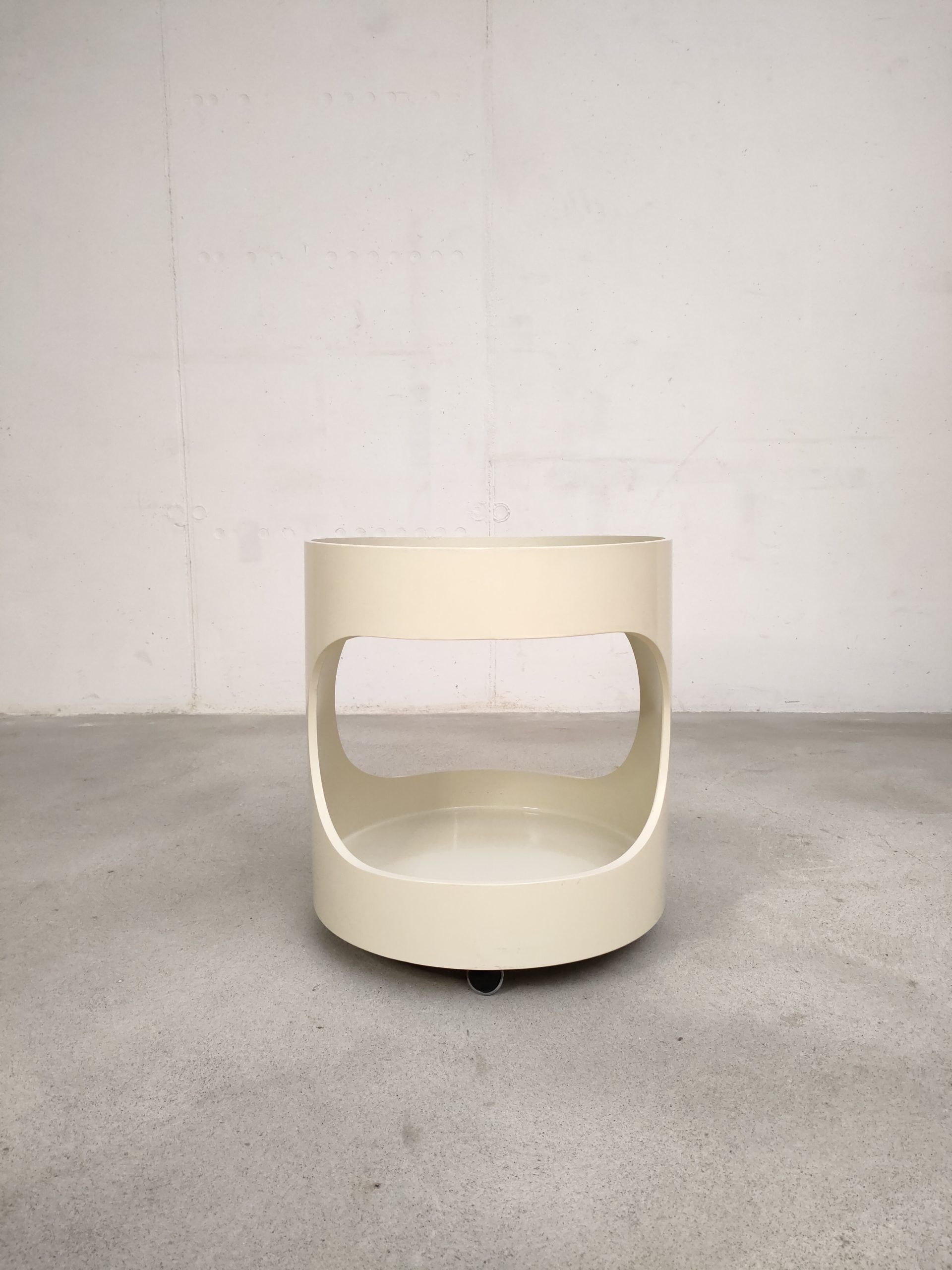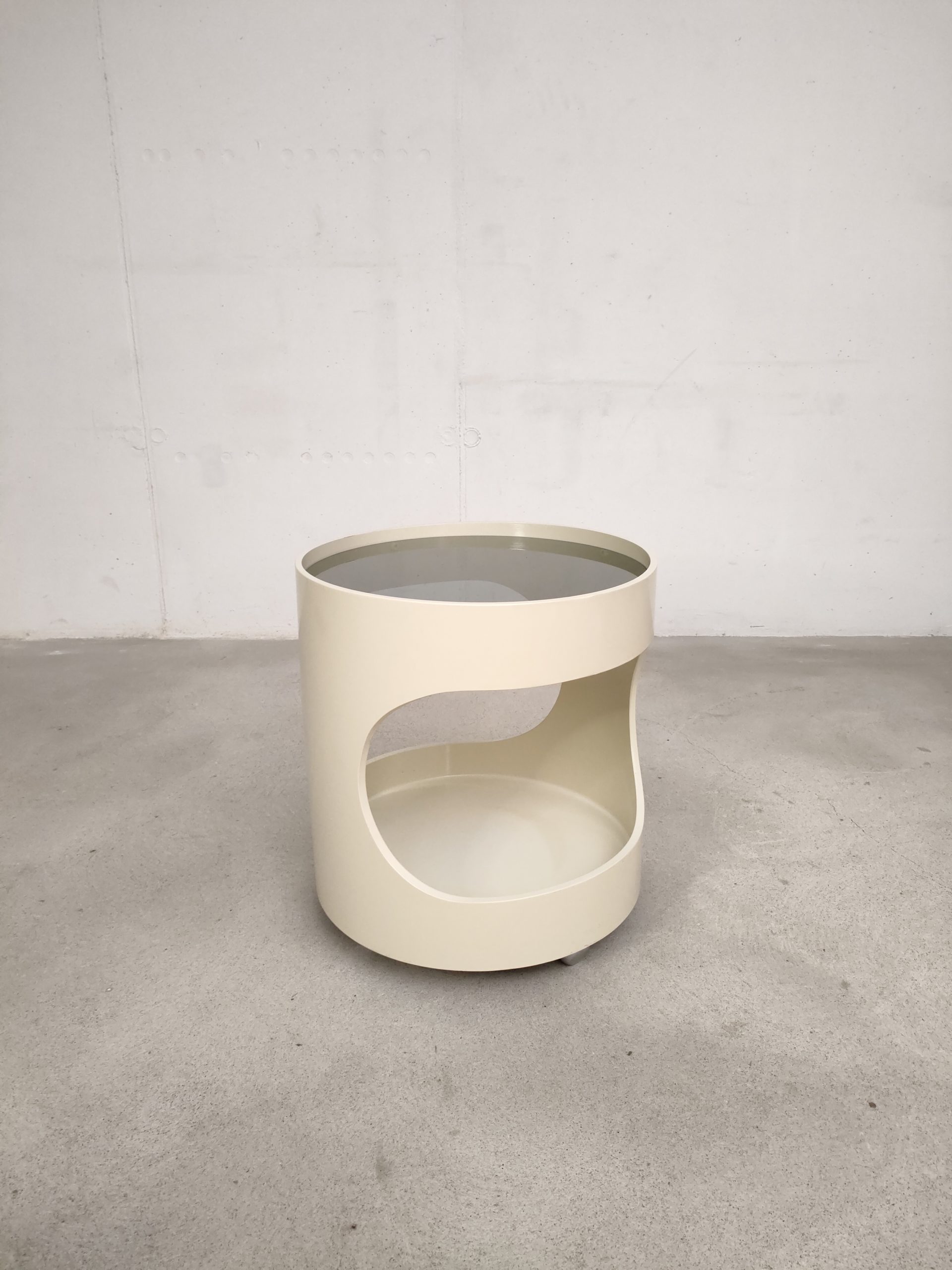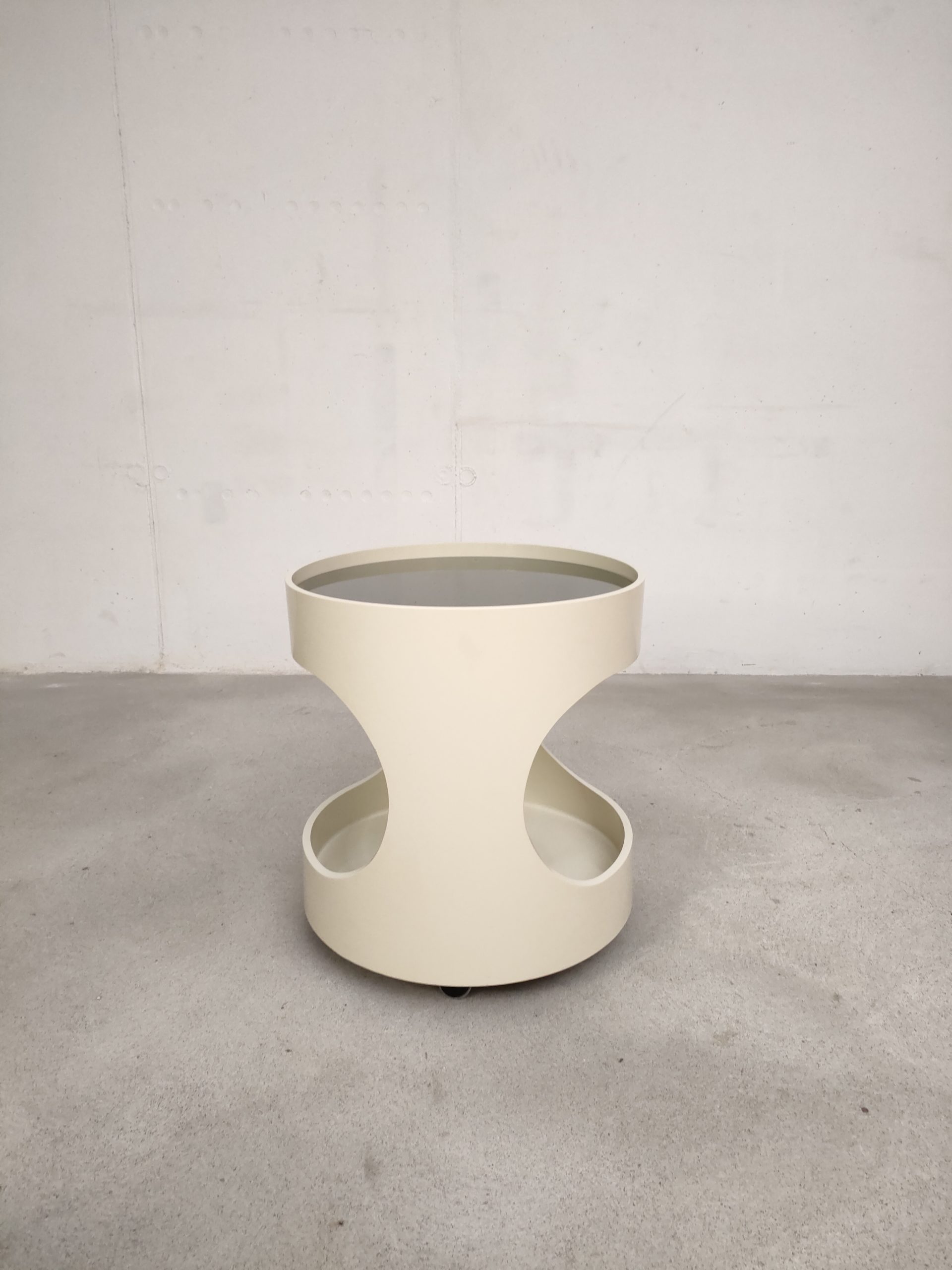 Produit venduChariot, modèle Luna, fabriqué par Opal (Allemagne) avec structure en bois laqué, verre fumé et roulettes.