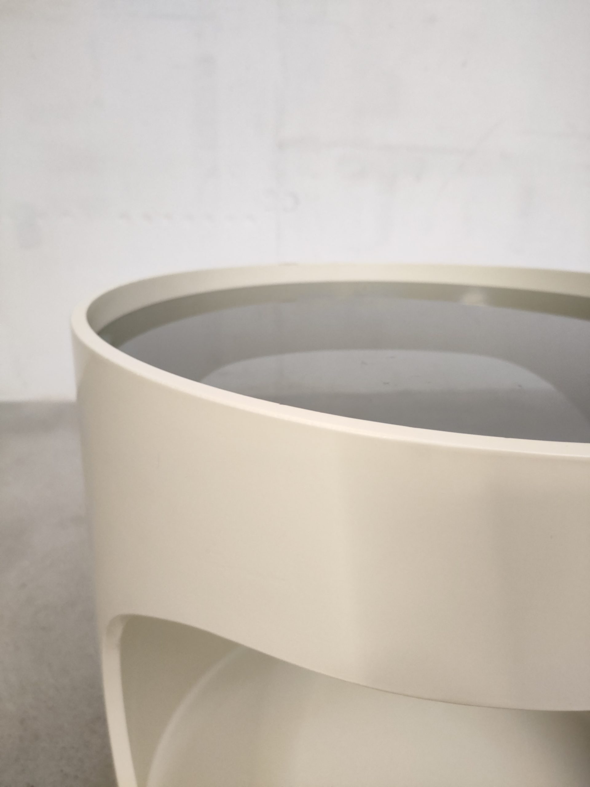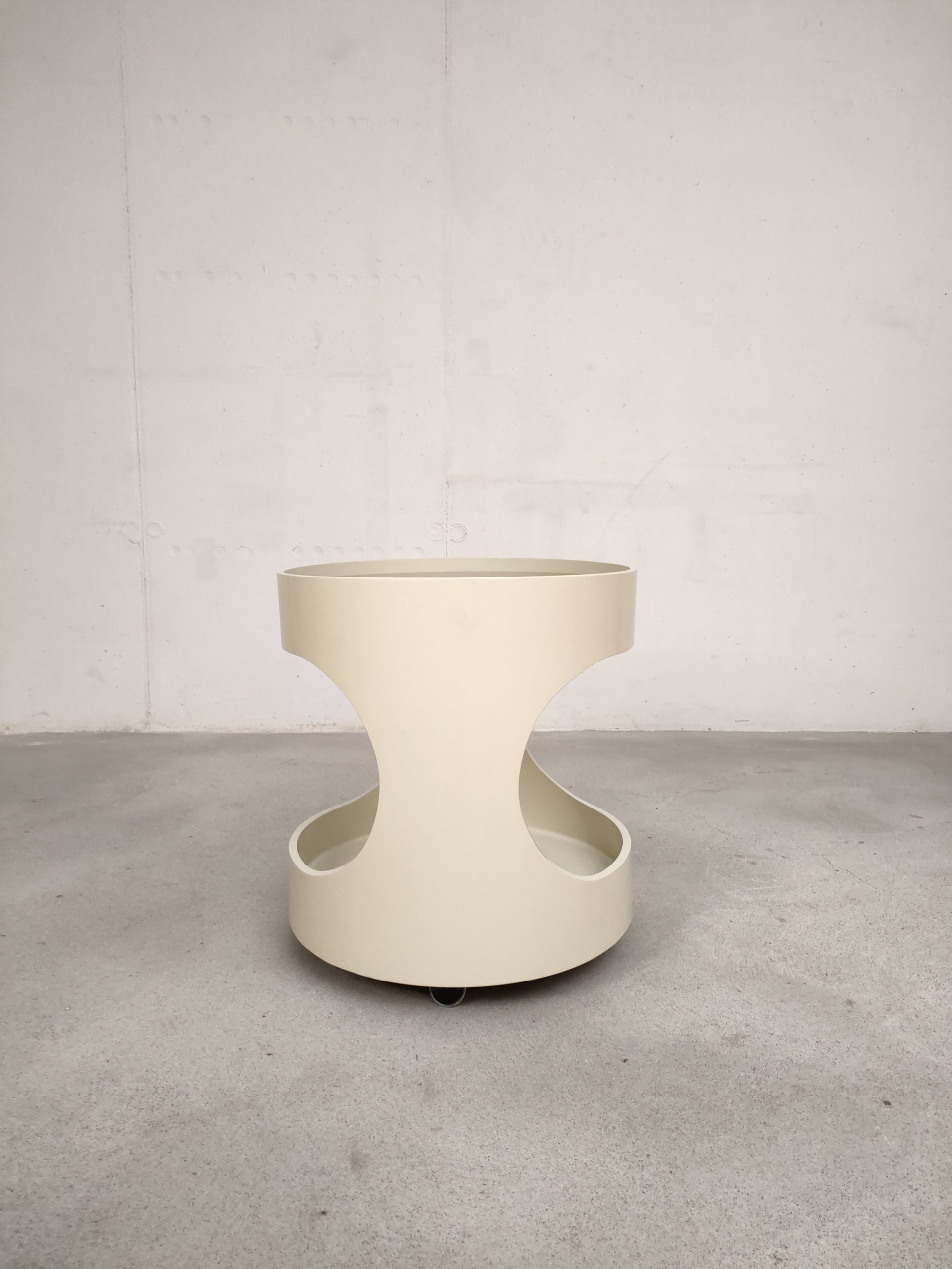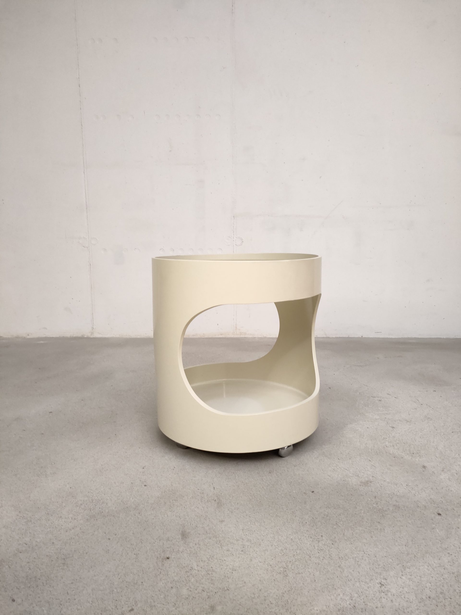 Produit venduChariot, modèle Luna, fabriqué par Opal (Allemagne) avec structure en bois laqué, verre fumé et roulettes.