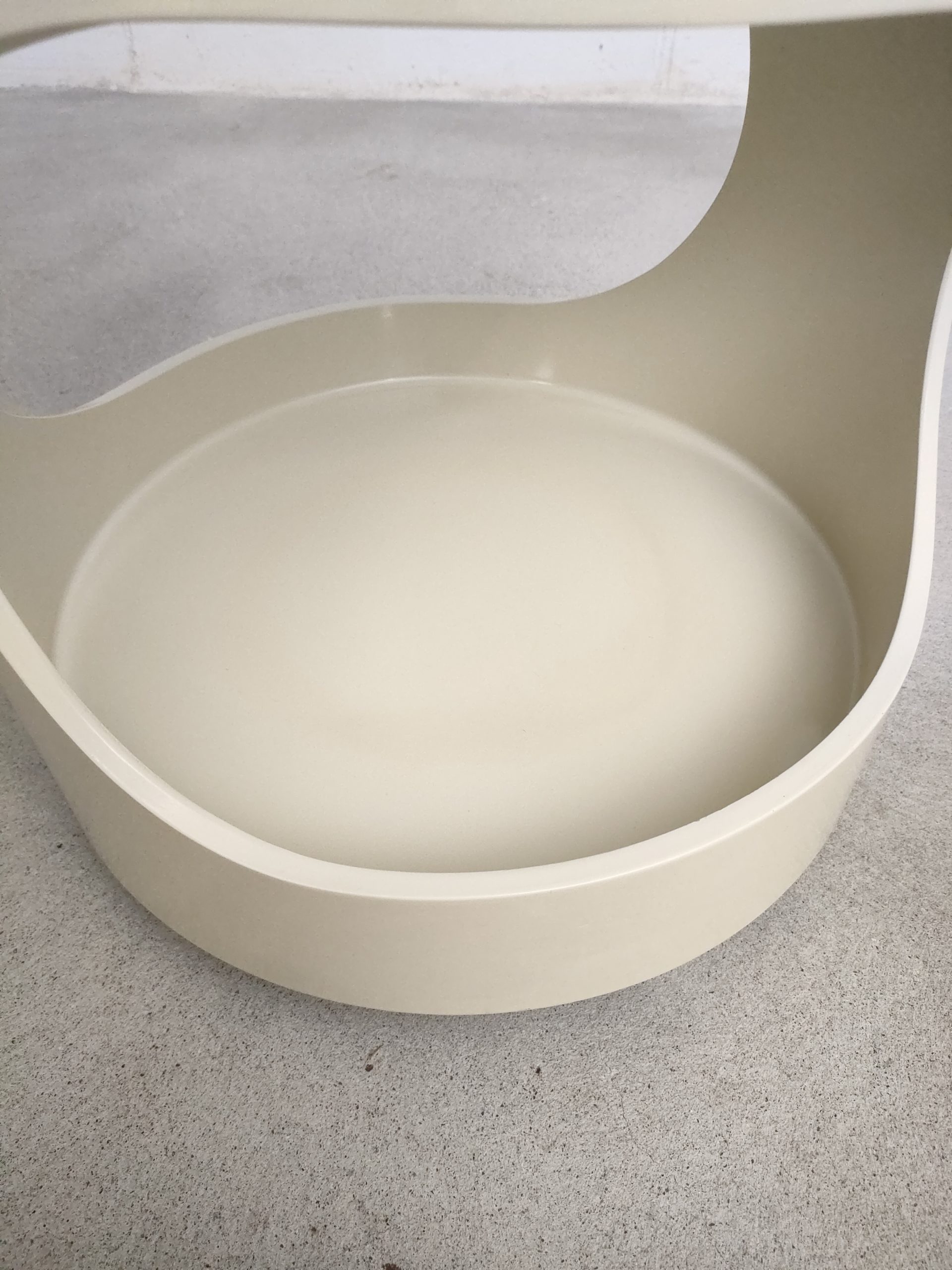 Le chariot présente peu de trace d’usure, juste une auréole au centre. Un petit repose verre a été divisé en 2 – voir photos.