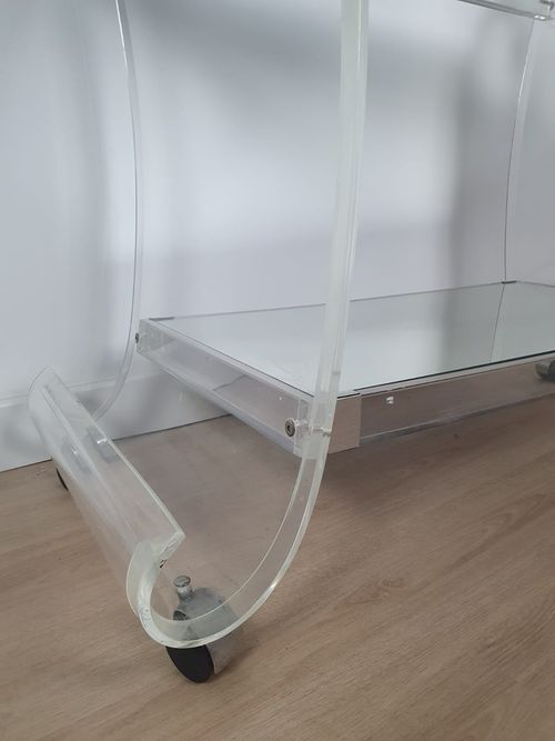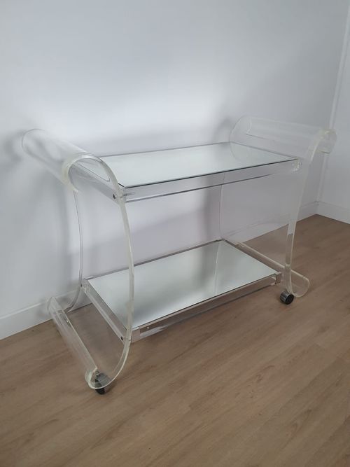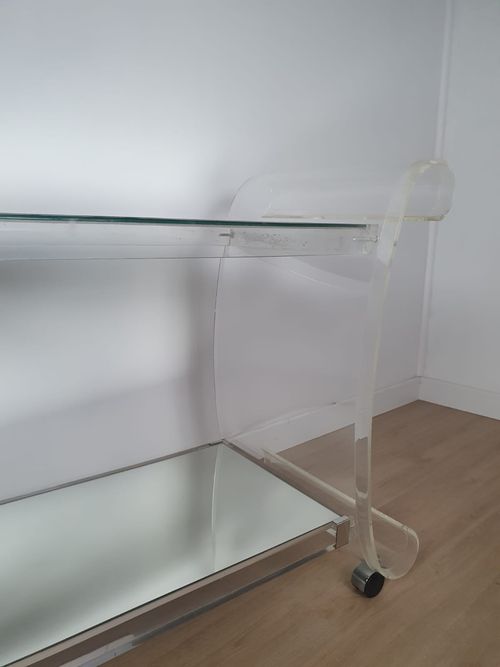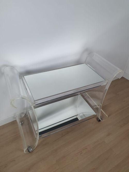 Produit venduGrande dessert en plexiglass et plateaux en miroir des années 70