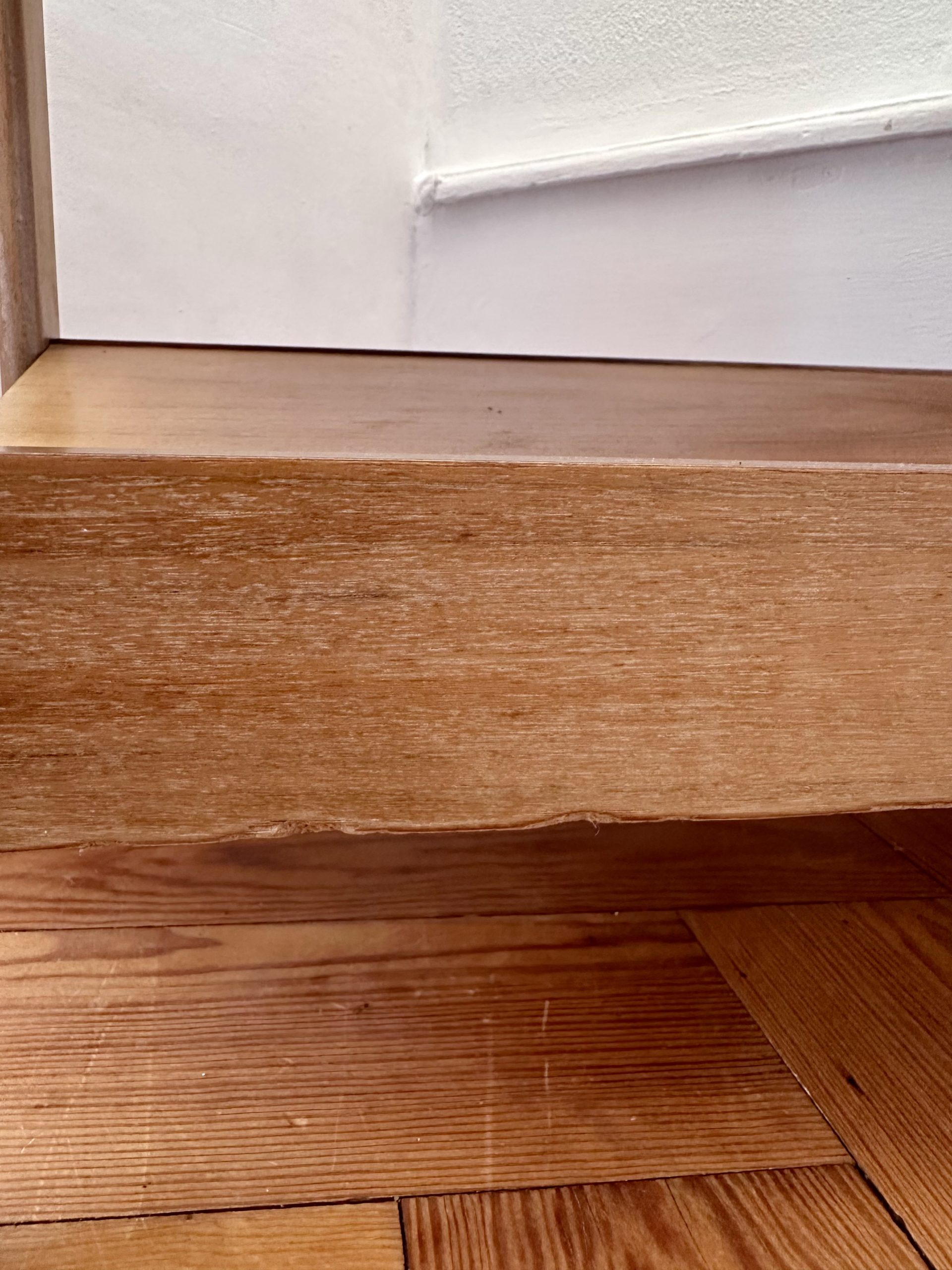 Le meuble a été nourri à l’huile de lin. Il est en bon état général, avec de belles nuances de bois. On remarque quelques traces d’un ancien vernis, qui créent par endroits de légères différences de teinte. Le plateau supérieur présente bien, avec des traces de vie visibles sur les photos. Petite marque d’usage en bas sur un bord, très peu visible une fois le meuble installé.