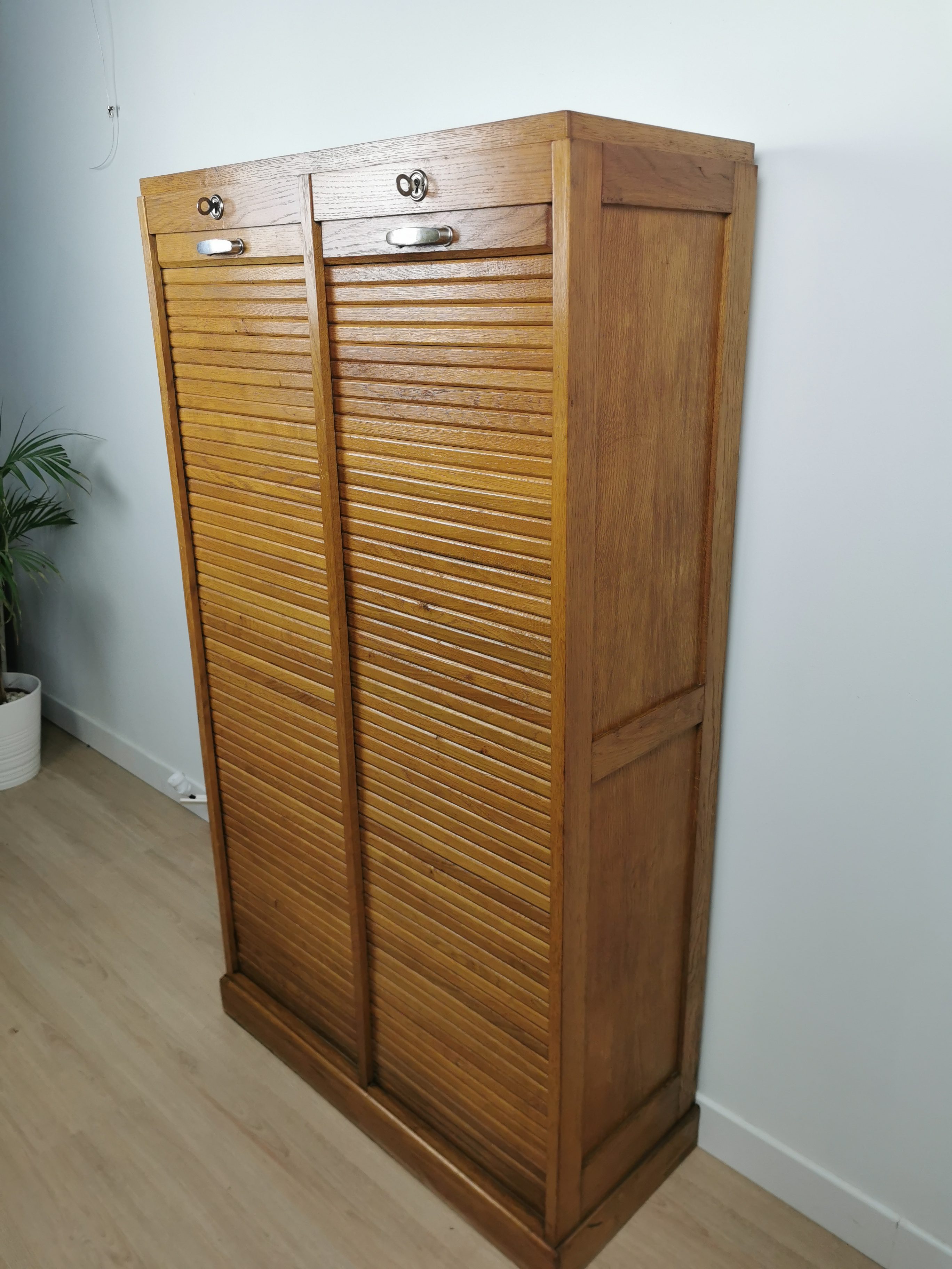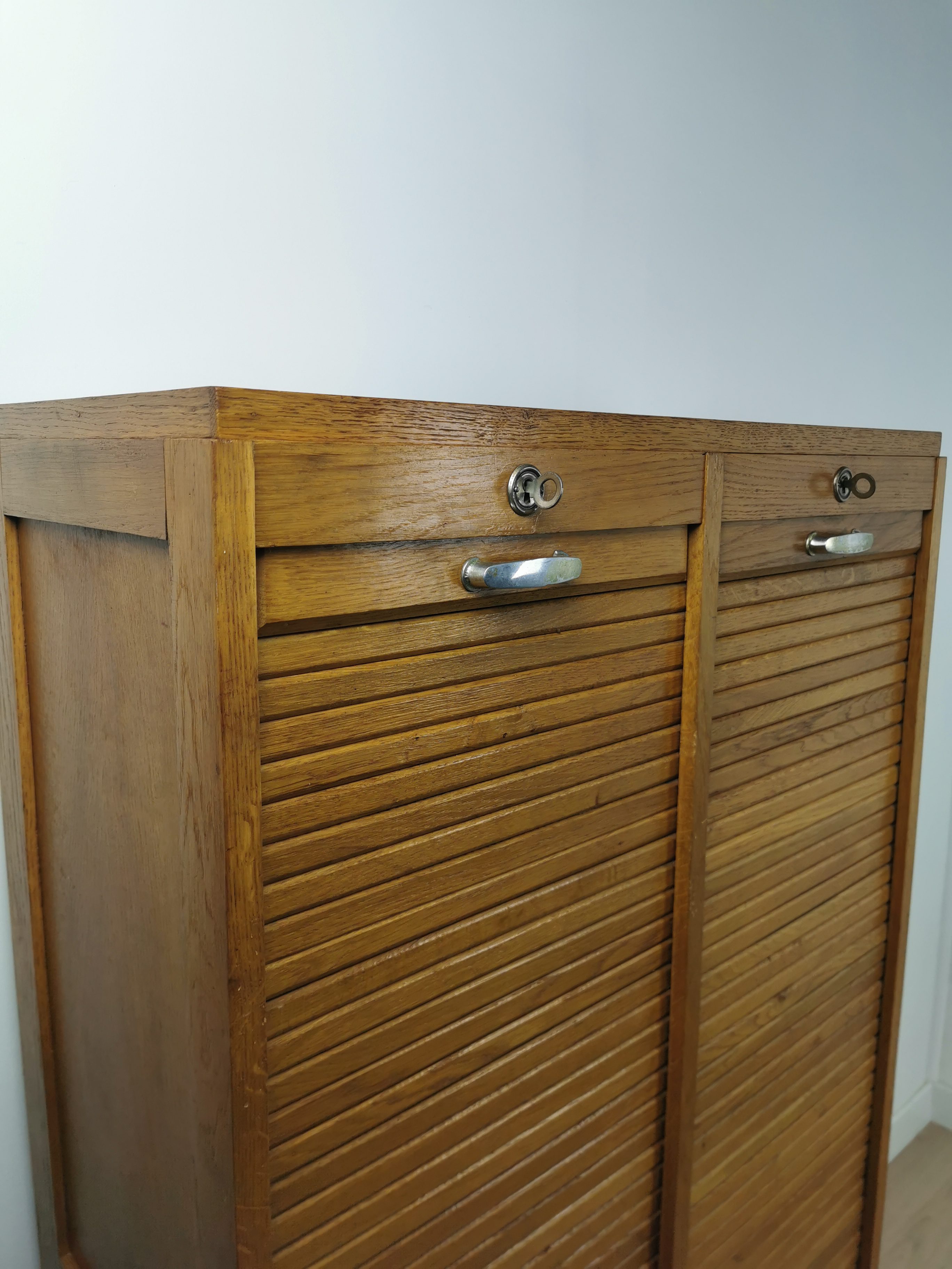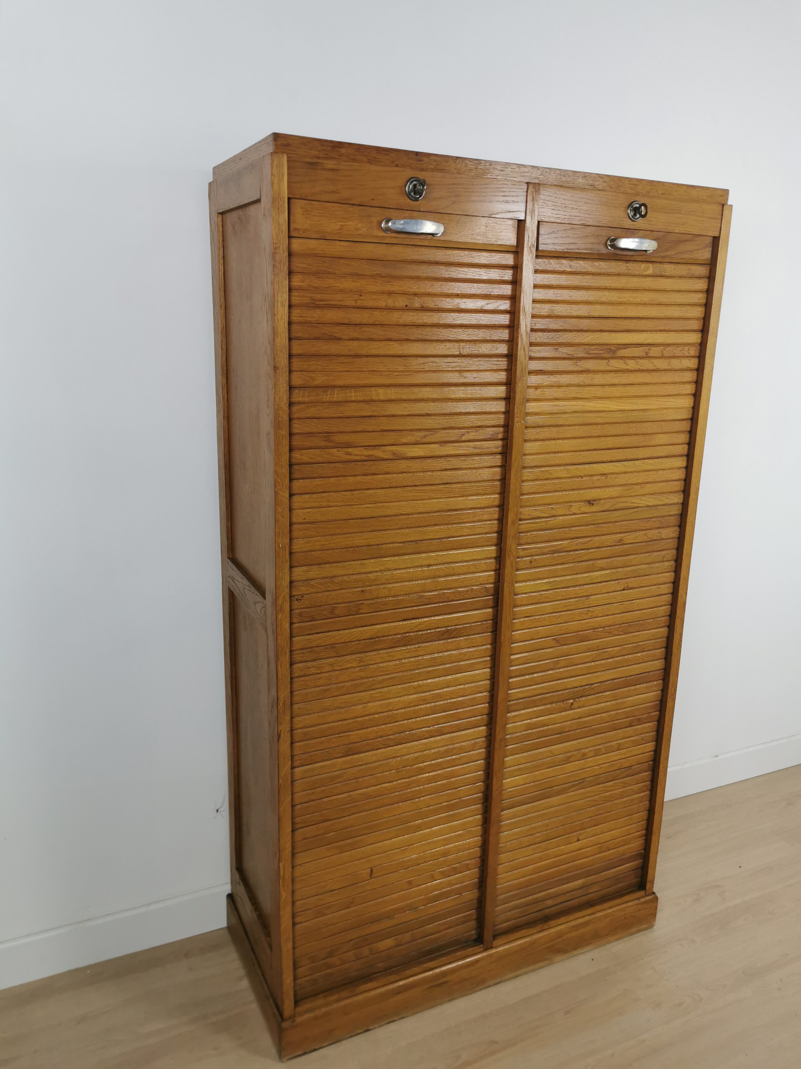 Produit venduAncien meuble a rideau en bois des années 60. Poignées en métal et plusieurs étagères à l’intérieur qui peuvent être placées à la hauteur souhaitée.