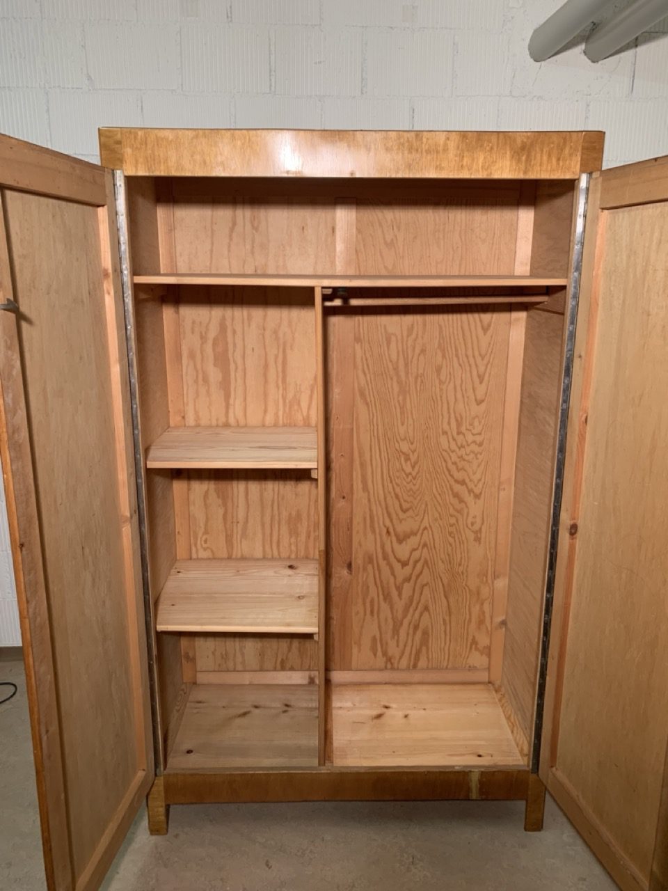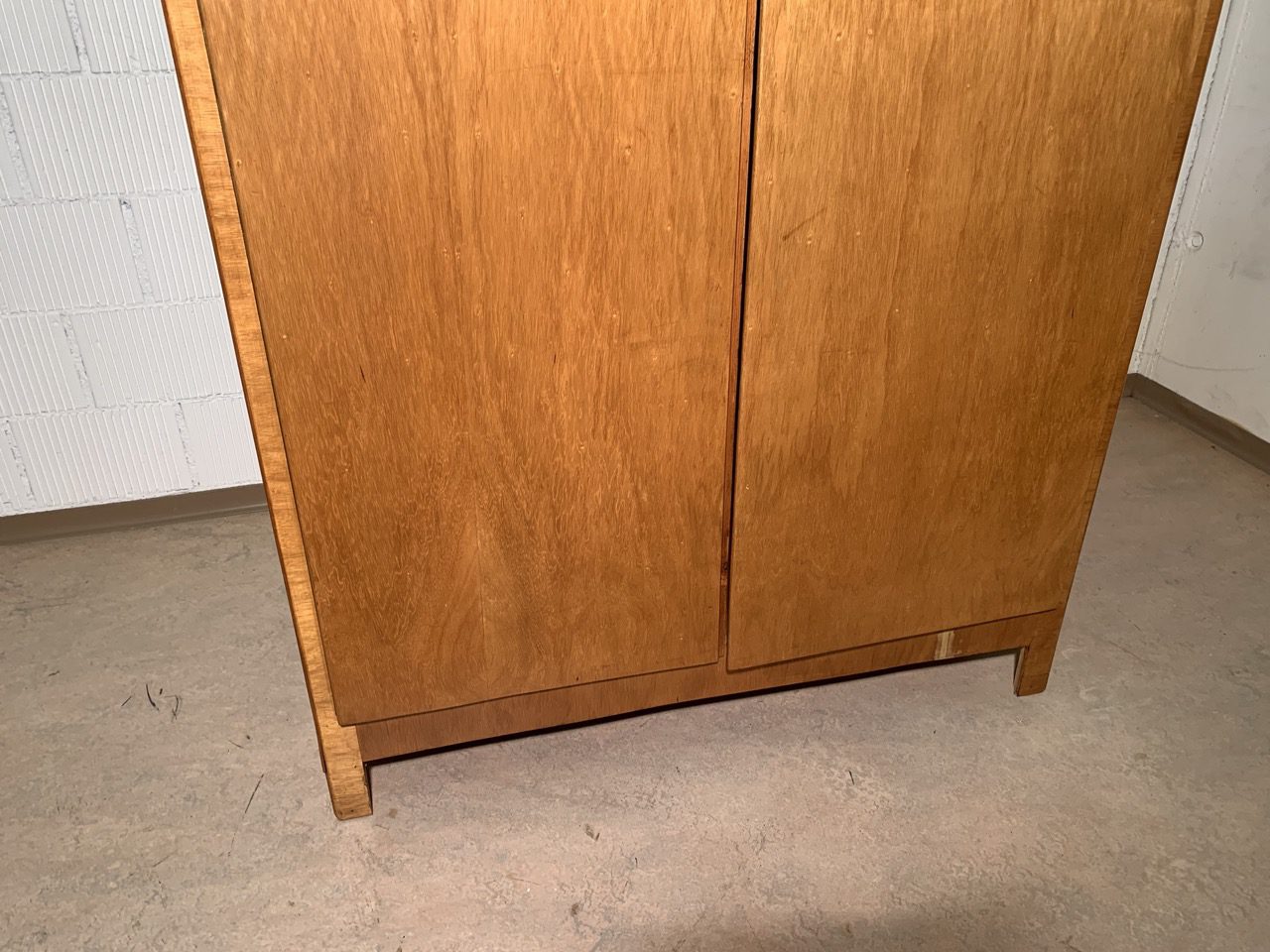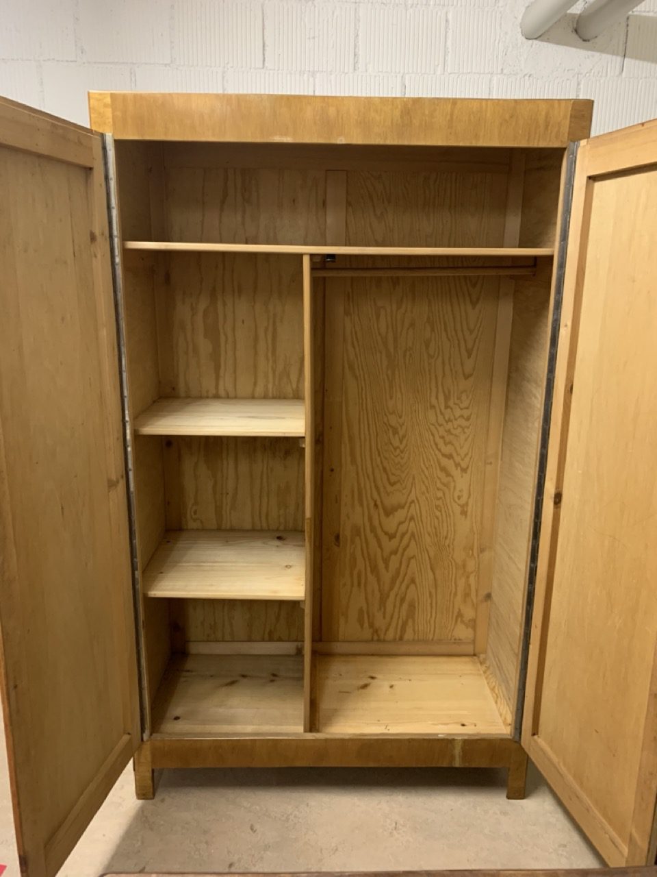 Produit venduGrande armoire en bois avec trois étagères et une penderie.