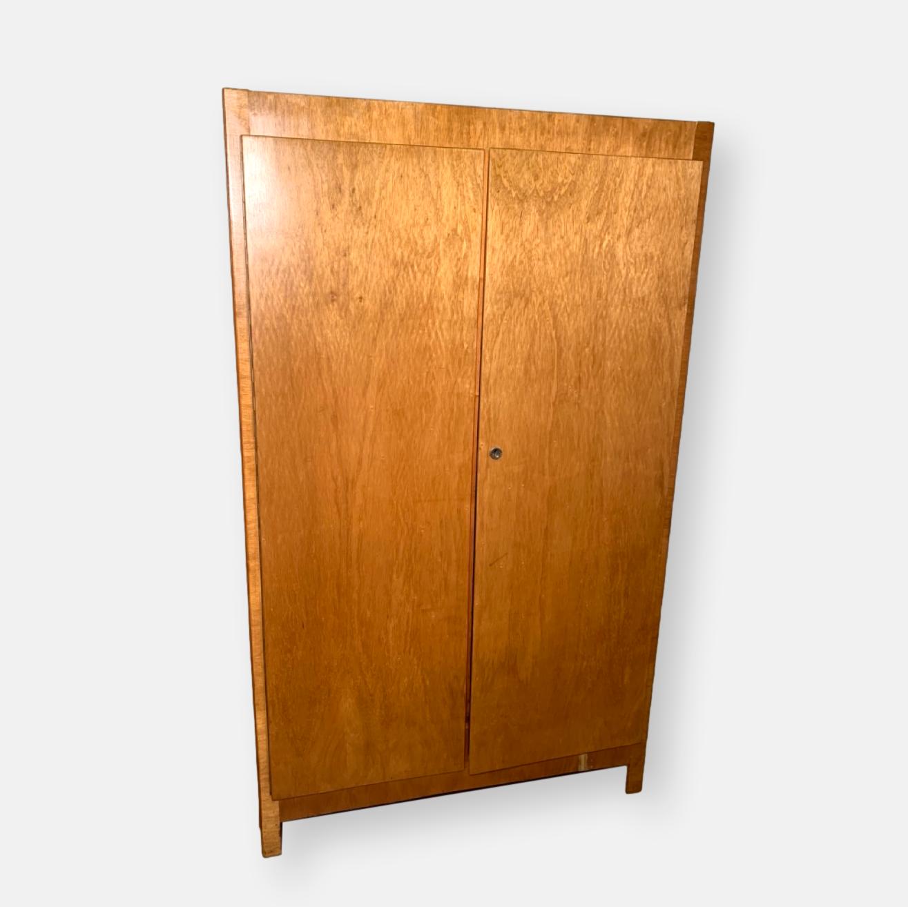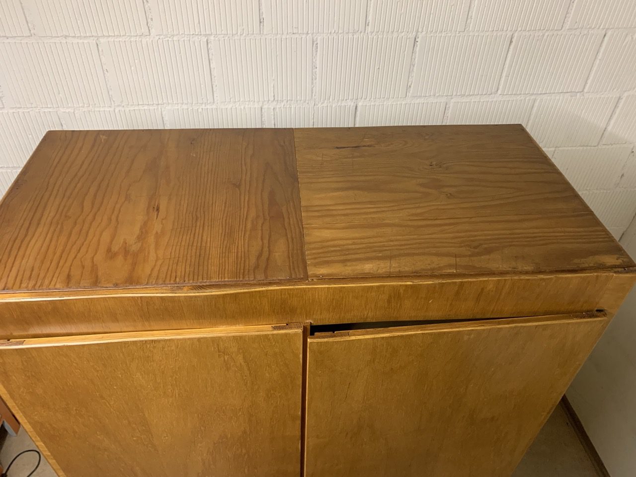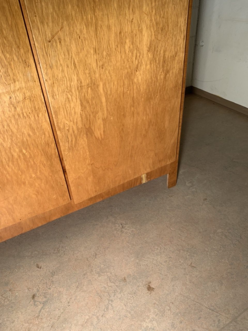 Produit venduGrande armoire en bois avec trois étagères et une penderie.