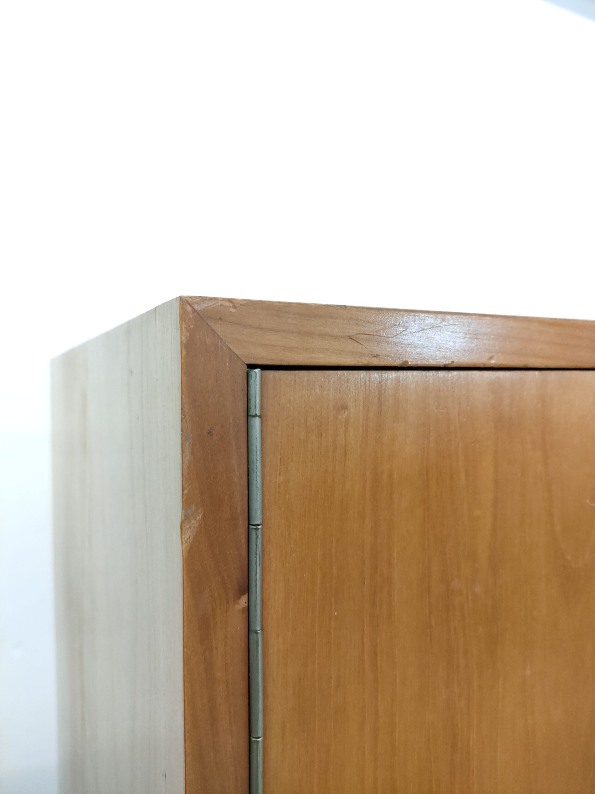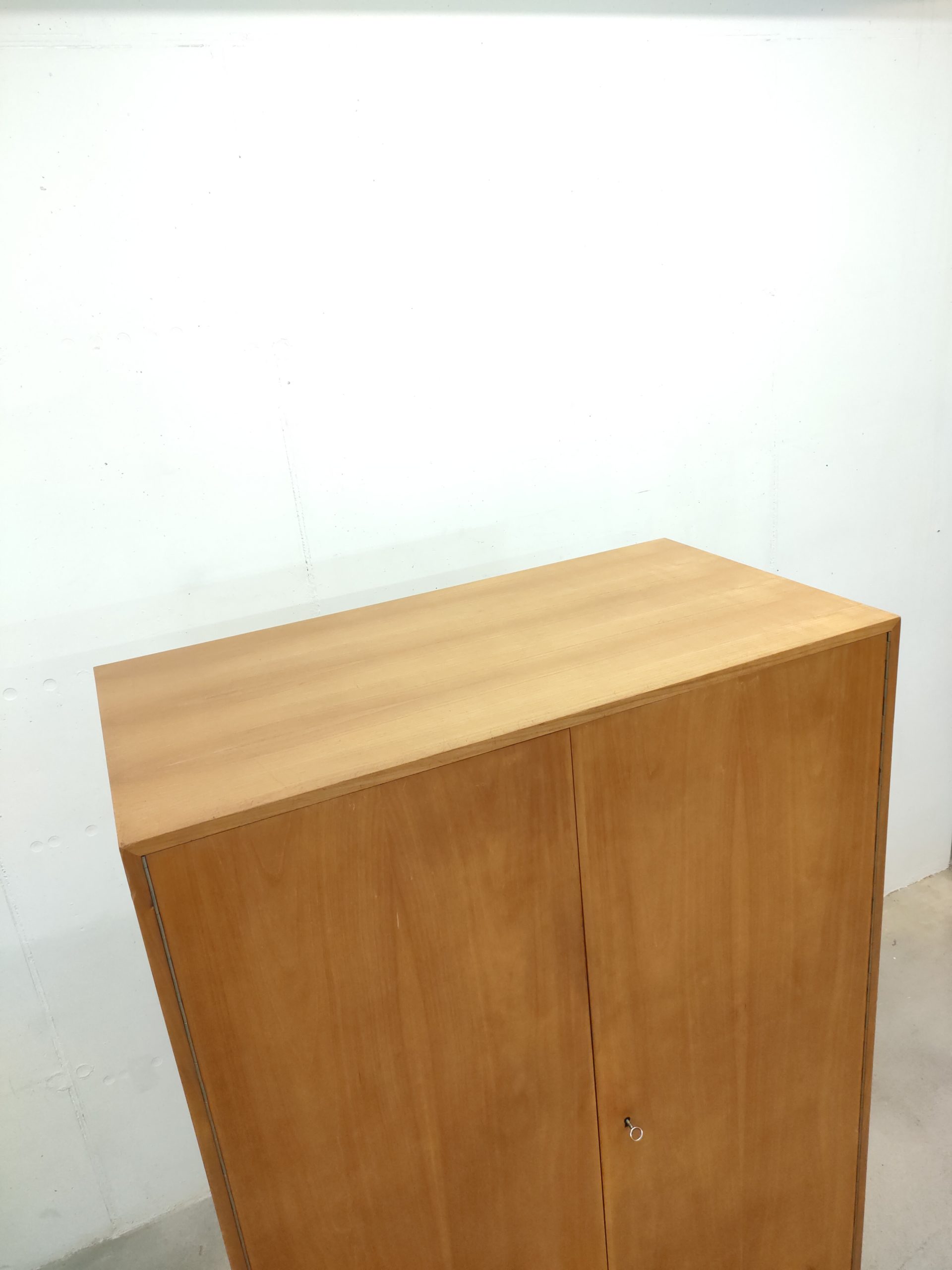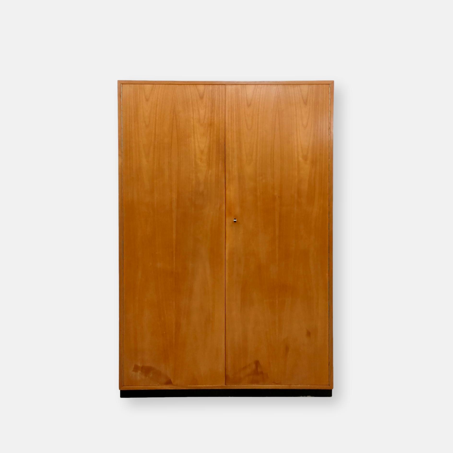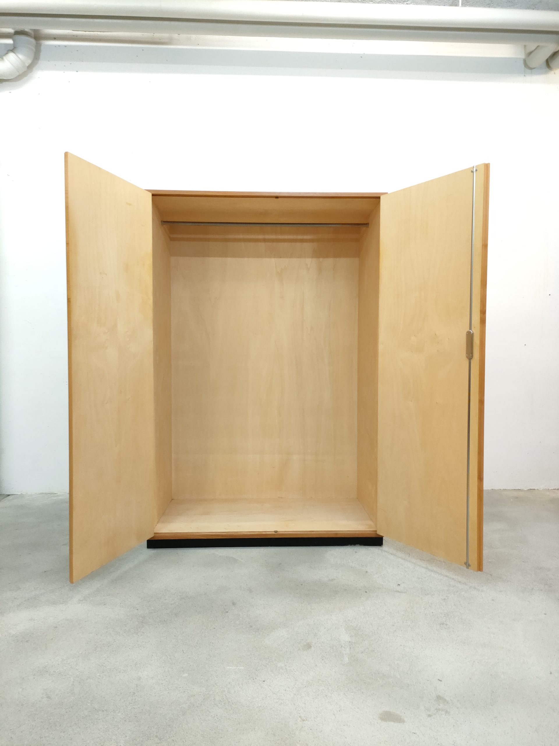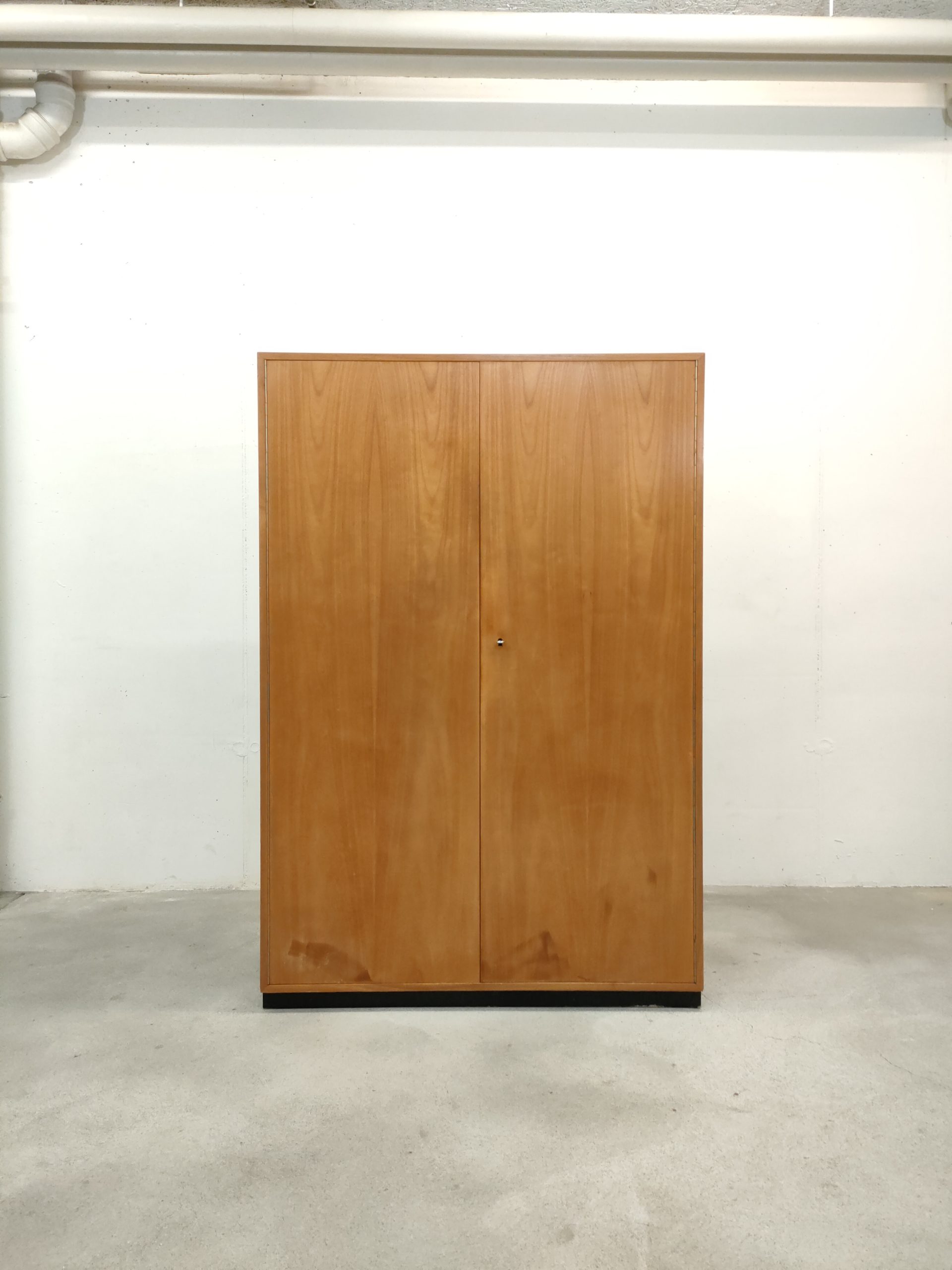 Produit venduArmoire penderie vintage en bois avec socle en bois peint en noir. Fabrication suisse des années 50-60. Des traces sont présentes en particulier sur la partie inférieure (voir photos). L’armoire est stable solide et parfaitement fonctionnelle.