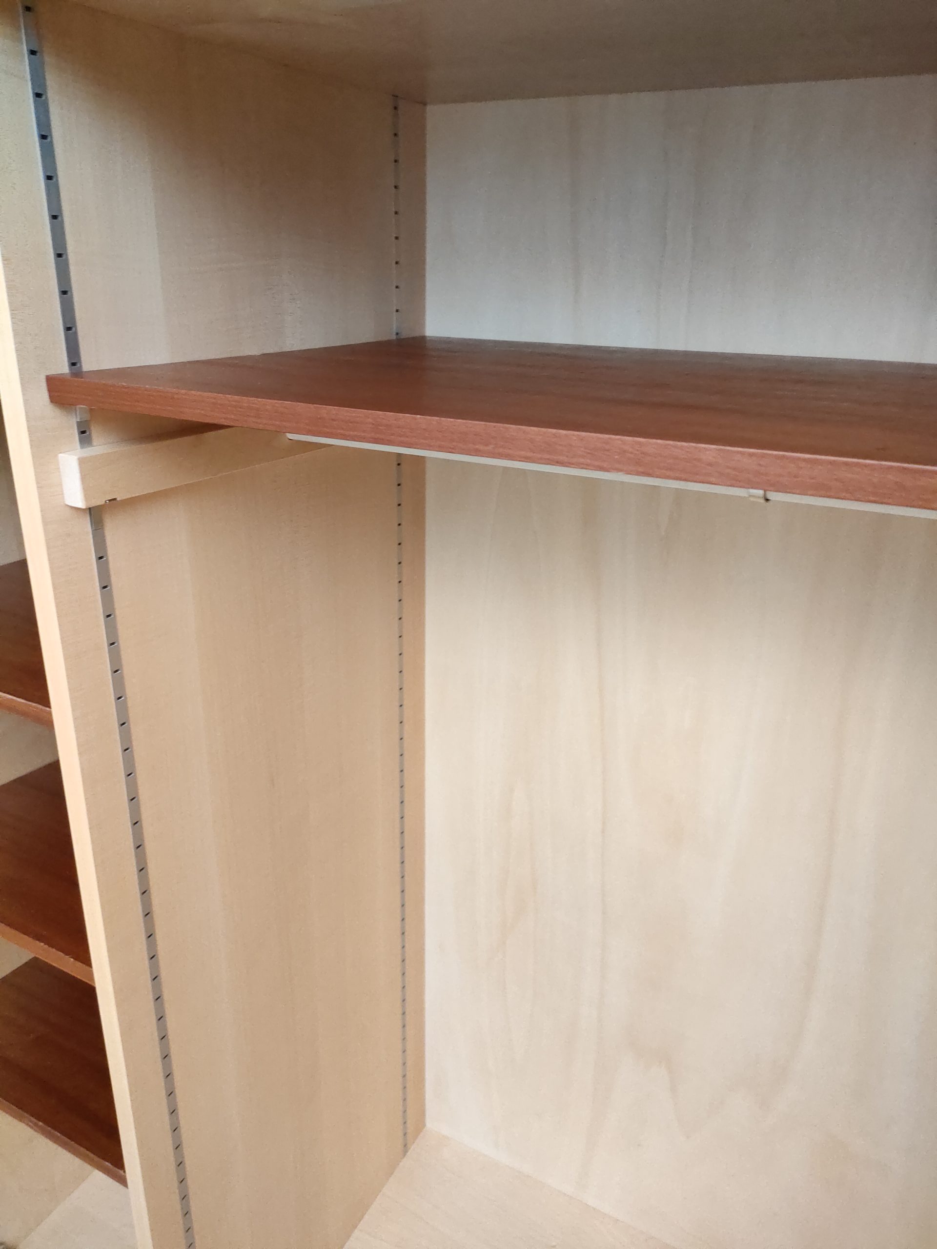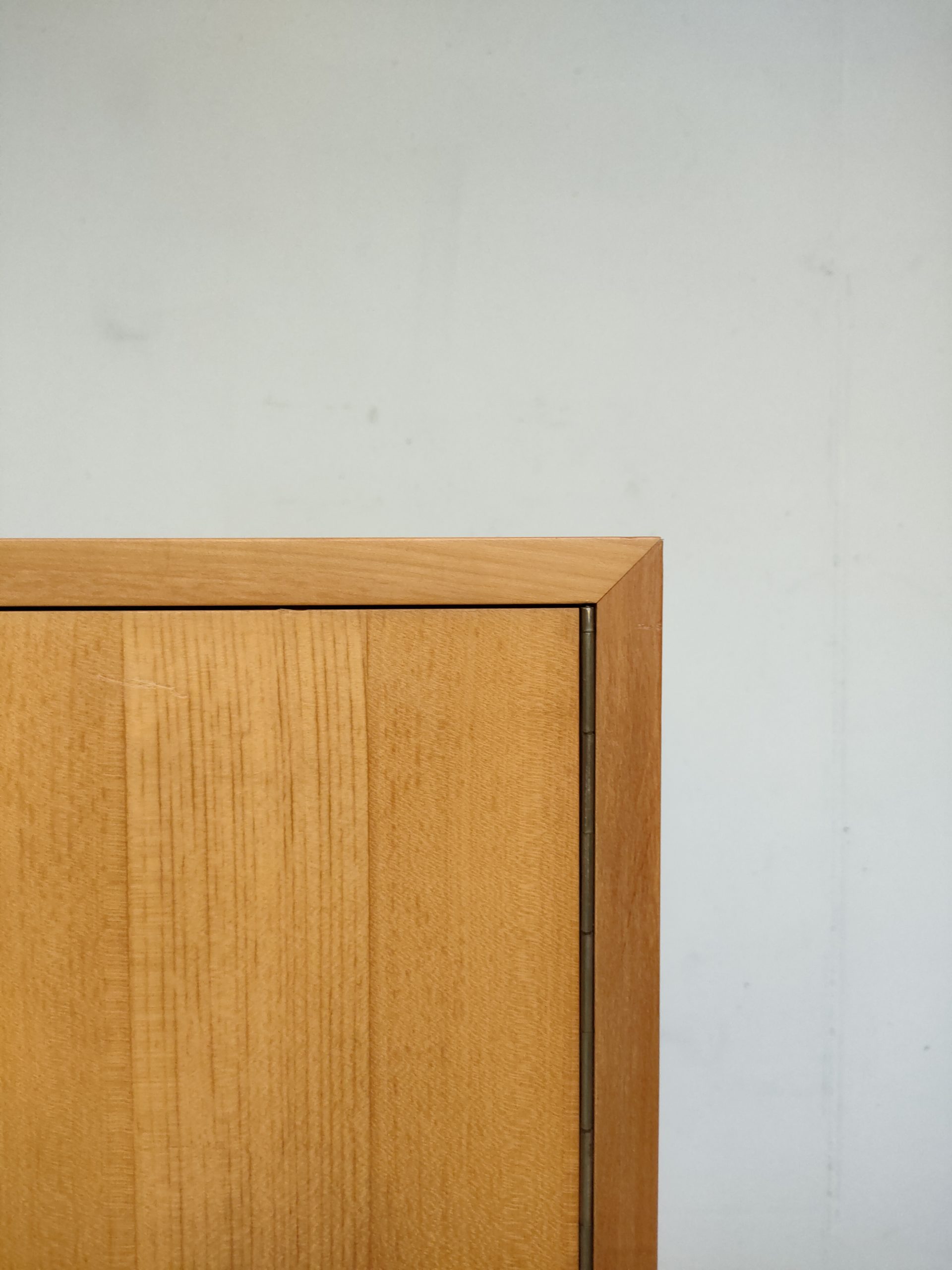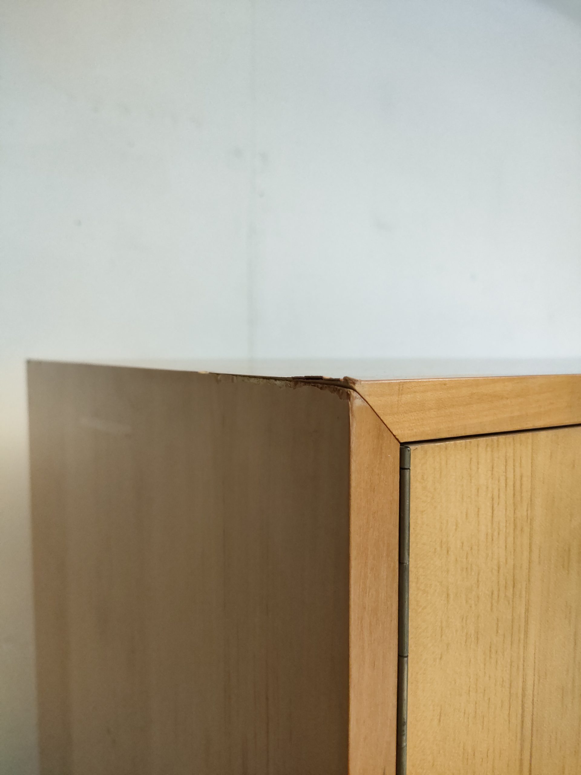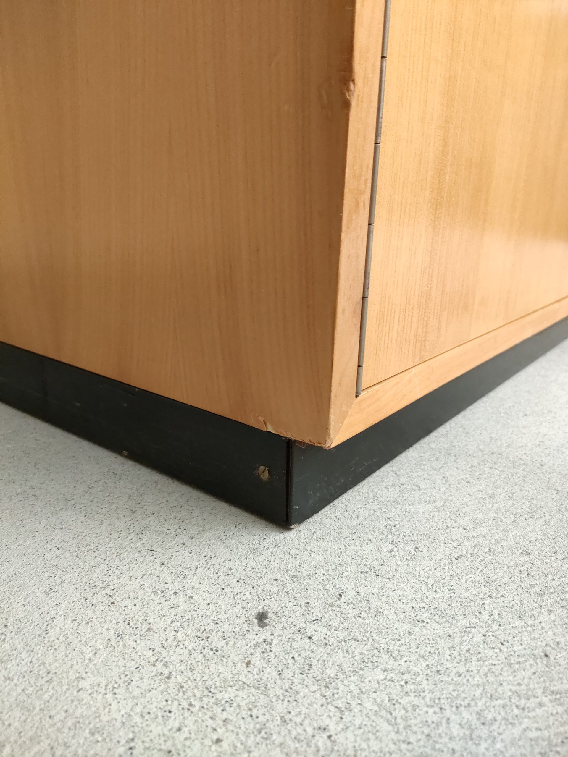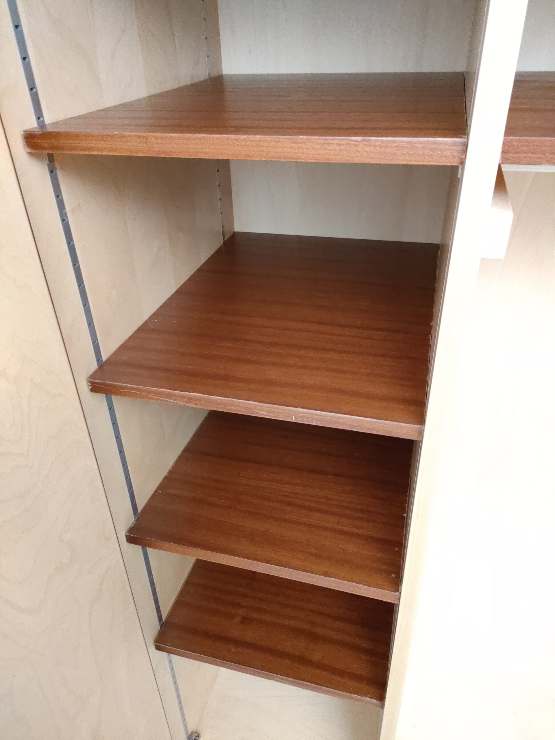 Produit venduArmoire Zingg Lamprecht vintage en bois avec socle noir, penderie et étagère d’un côté et 4 étagères de l’autre. Des légères traces d’usure sur le bois aont présentes ainsi que des légers manques de placage à certains endroits (voir photos). L’armoire est stable et solide et élégante. Elle peut être démontée pour le transport.