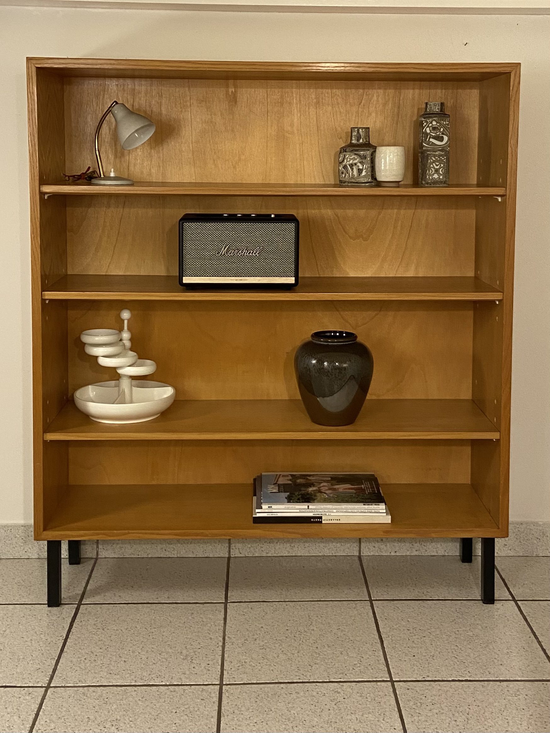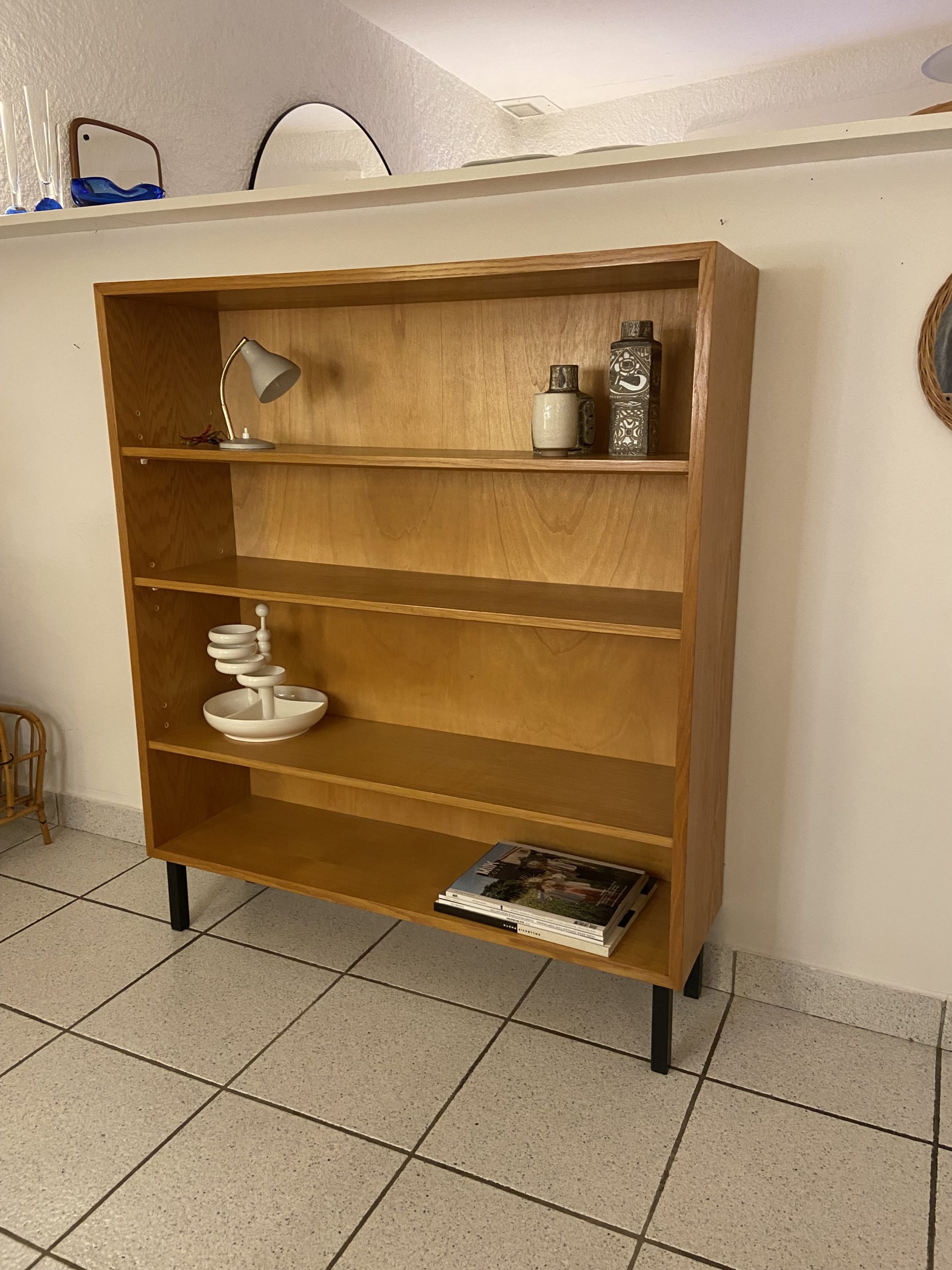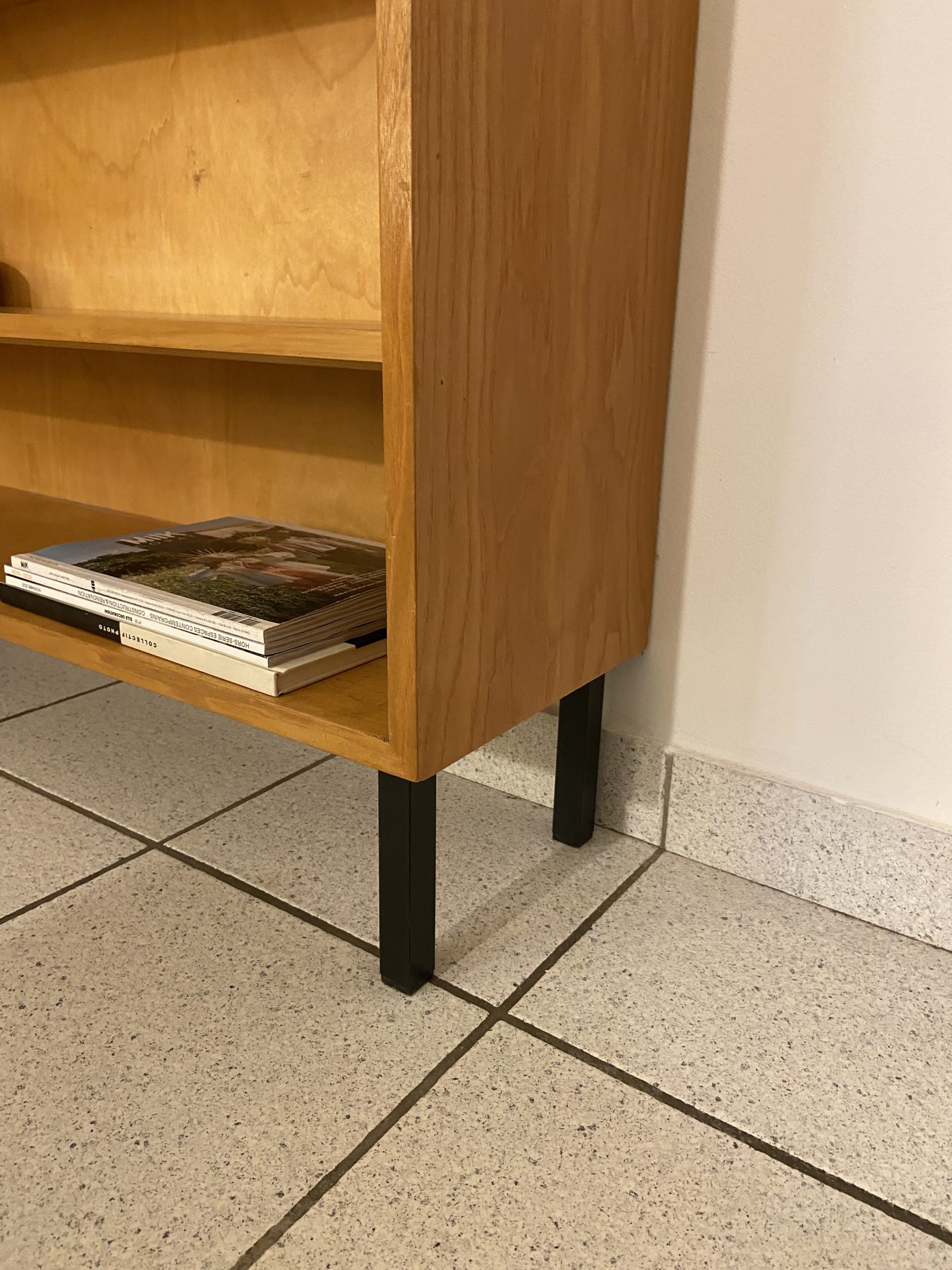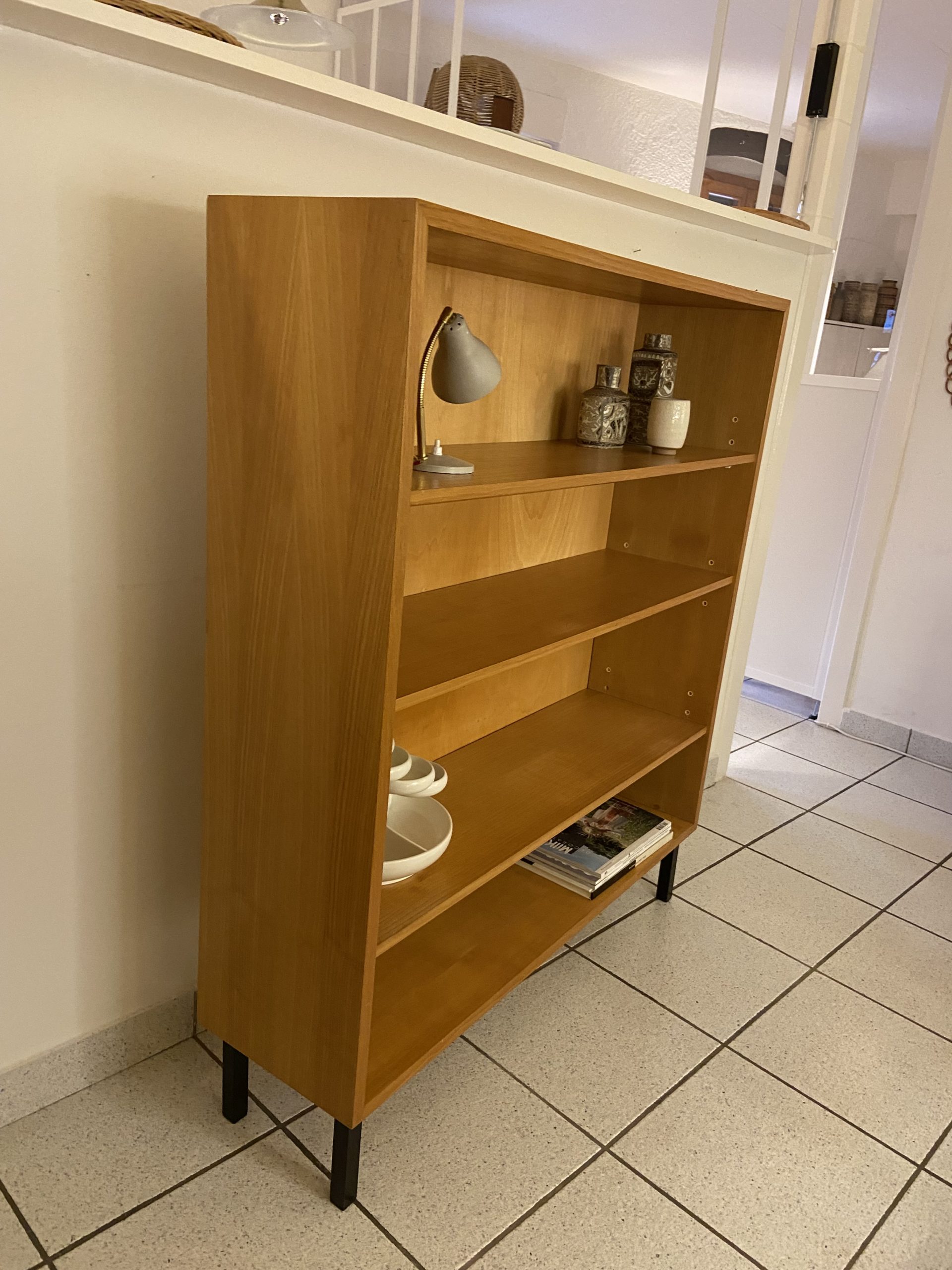 Etagère/bibliothèque vintage, piétement en métal