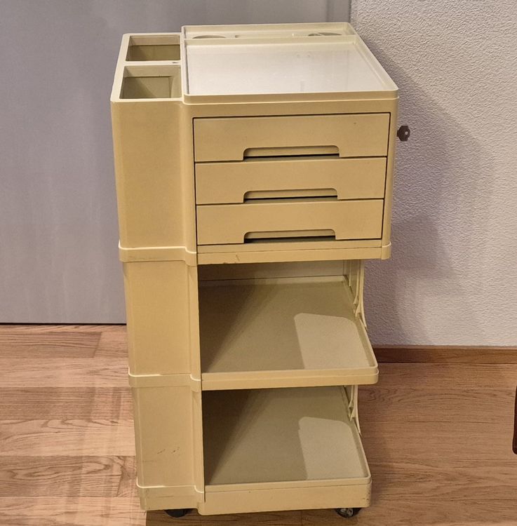 Parfait en tant que desserte, organisateur de bureau ou objet décoratif, ce chariot polyvalent allie praticité et raffinement. Sa structure robuste et son style indémodable en font une pièce de choix pour les amateurs de design vintage et les collectionneurs exigeants.