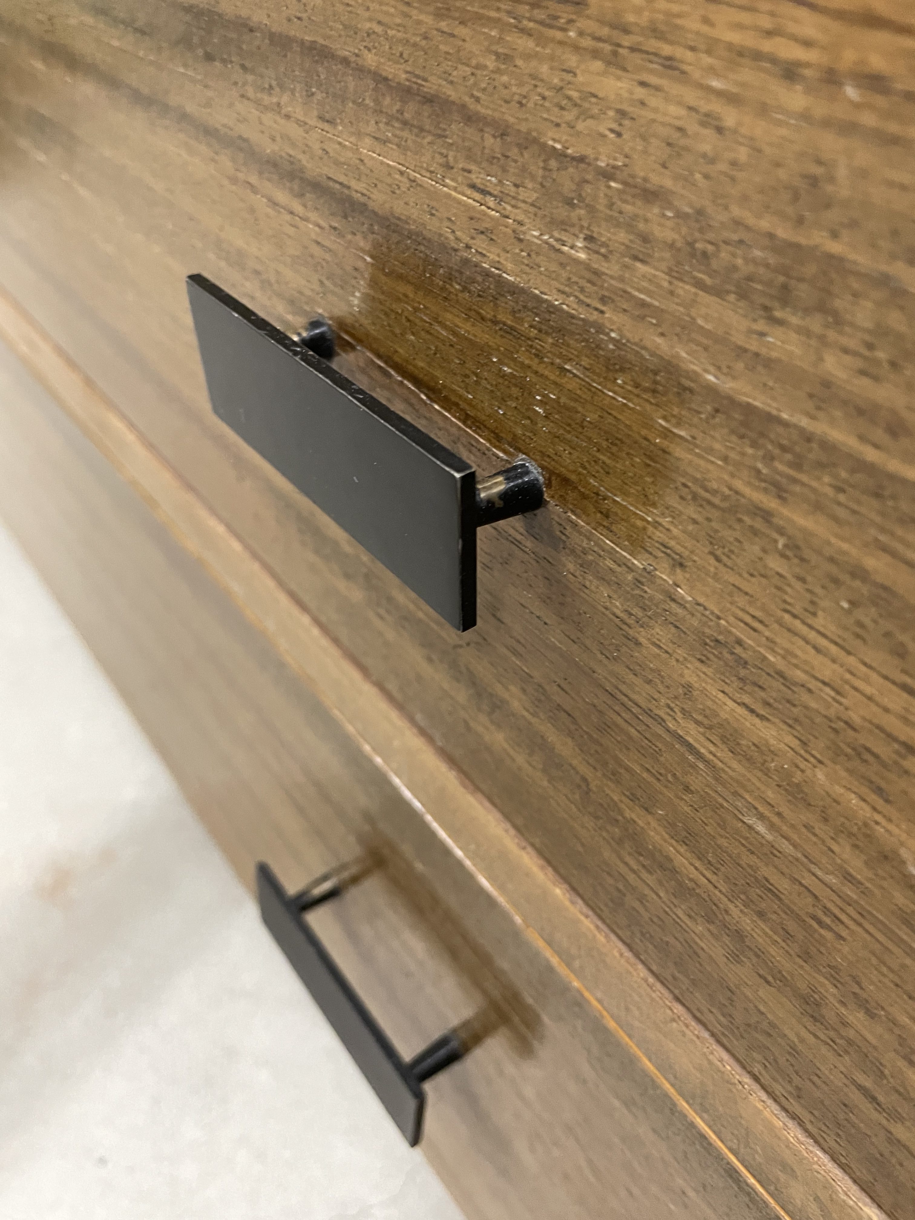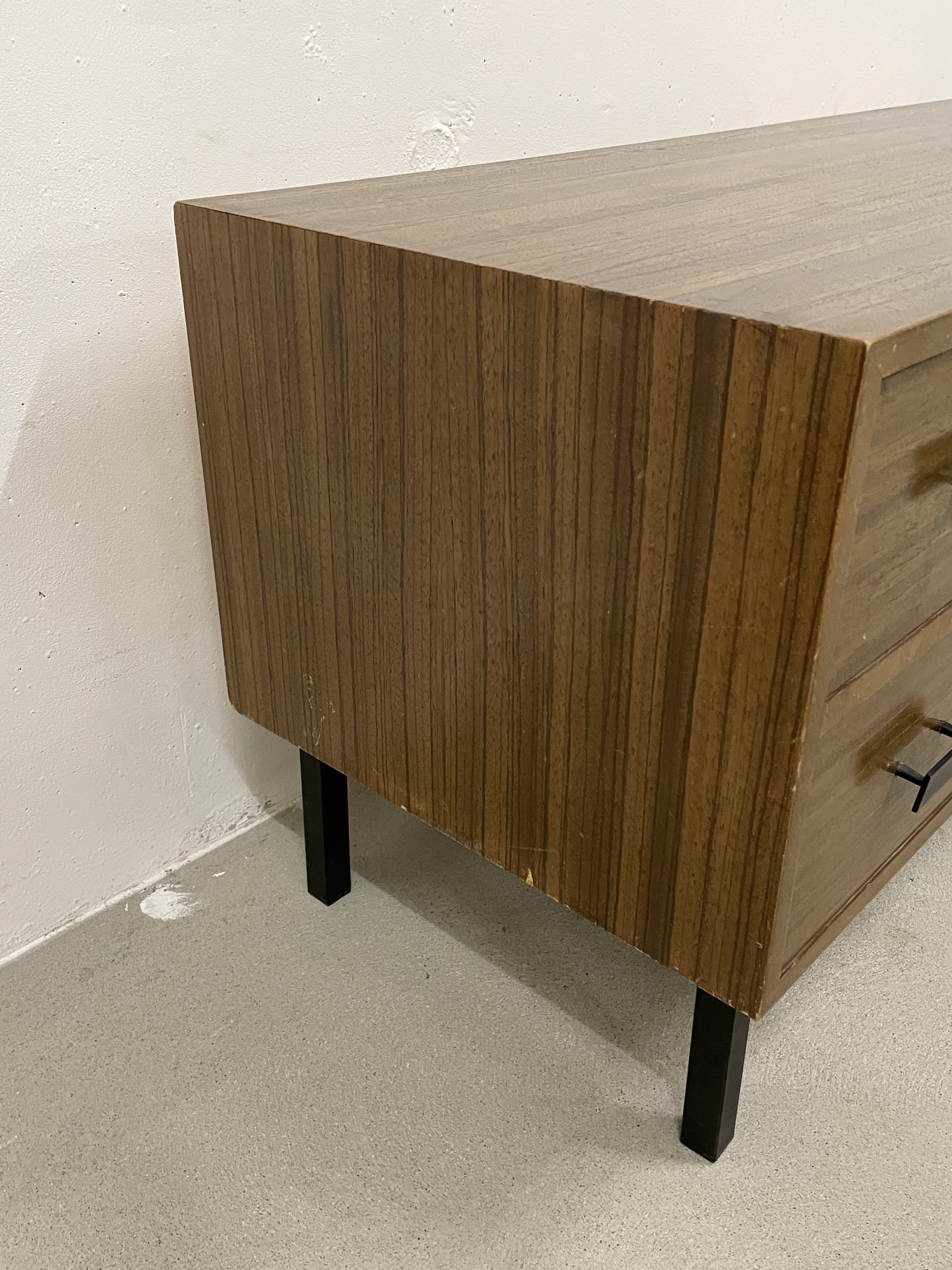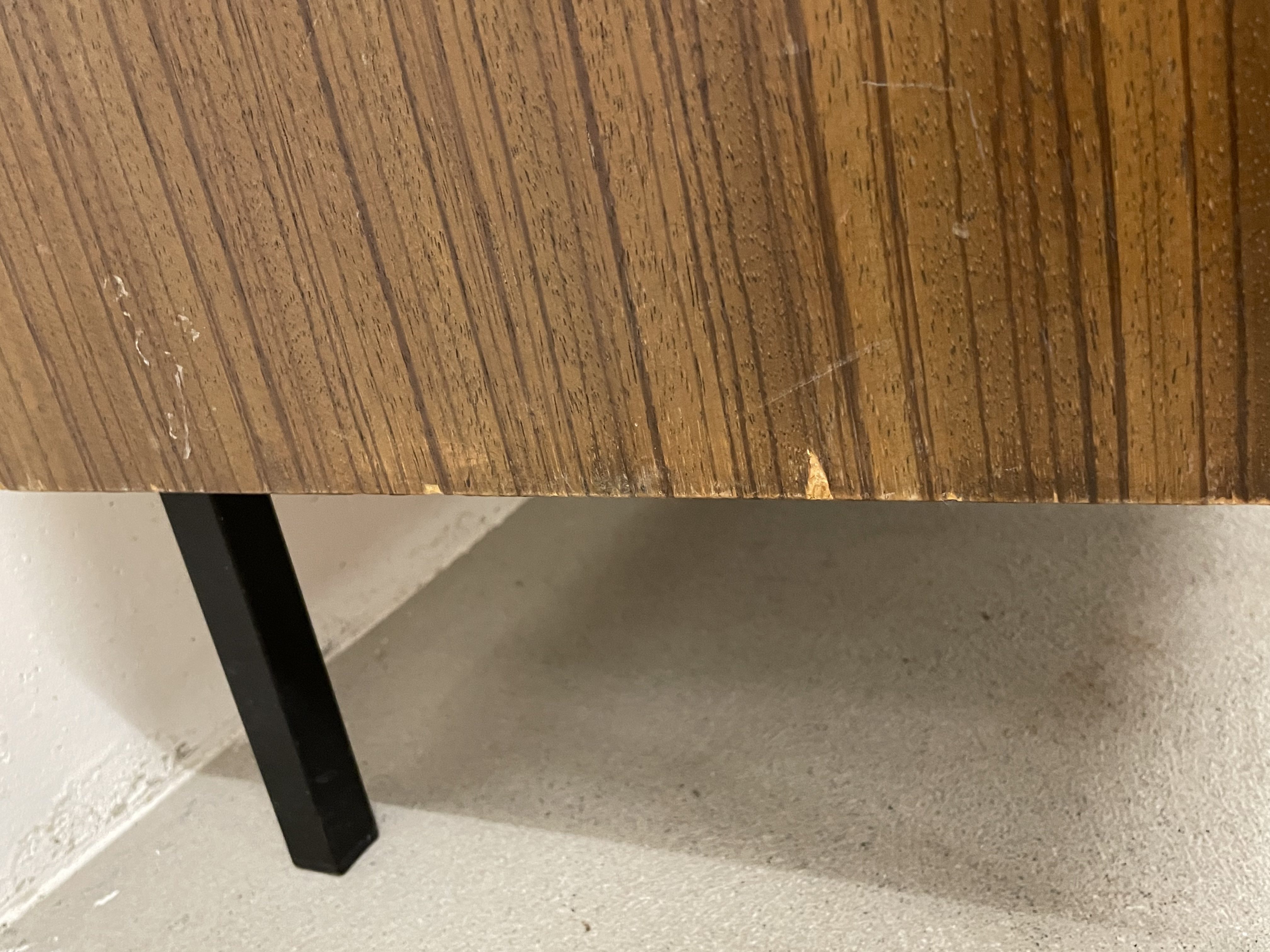 Produit venduCommode à 4 tiroirs assortie à 2 autres chevets (disponibles dans une autre annonce). La commode présente quelques traces d’usure et des marques assez visibles. Les tiroirs sont propres, car toujours utilisés avec un papier au fond, retiré depuis.