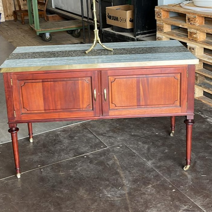 Produit venduCommode anglaise ancienne en acajou sur roulettes en laiton