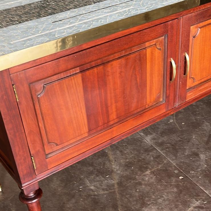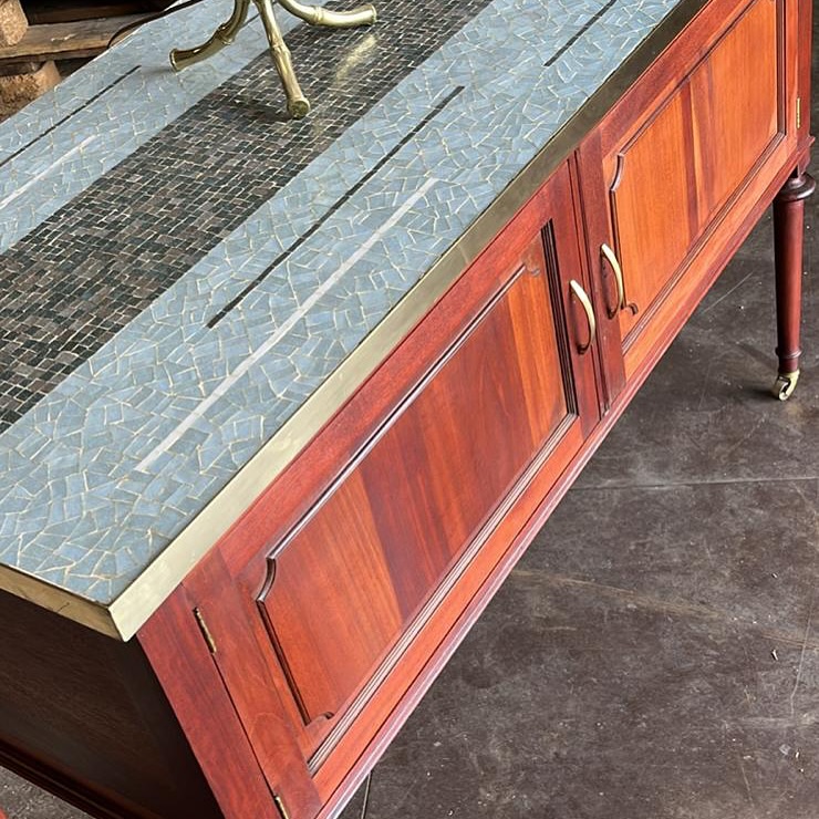Plateau en mosaïque et laiton