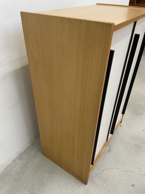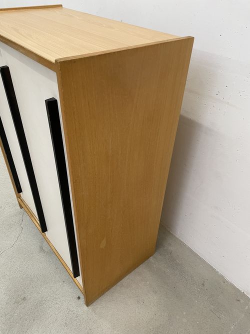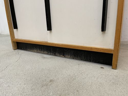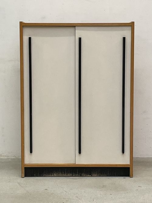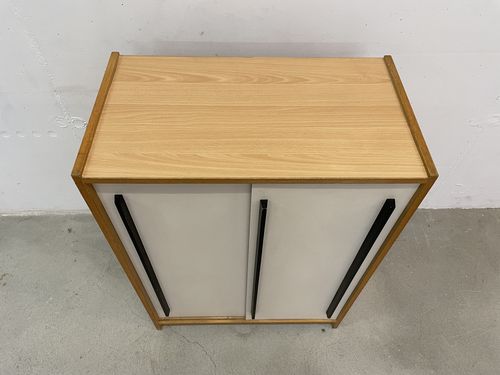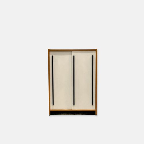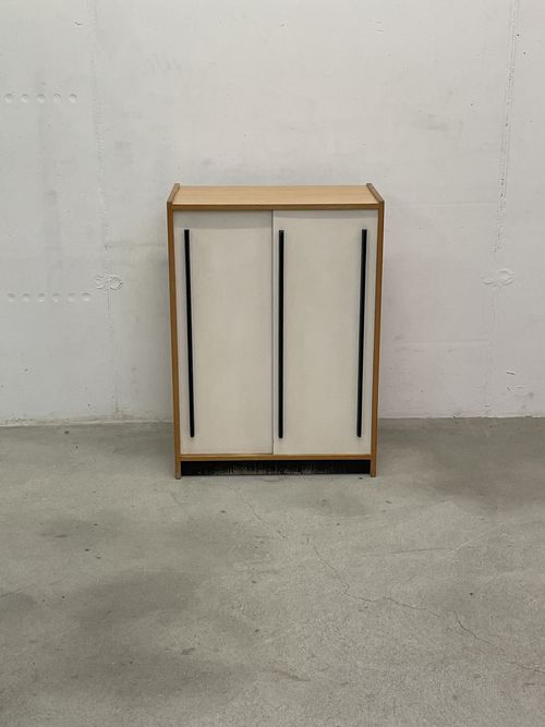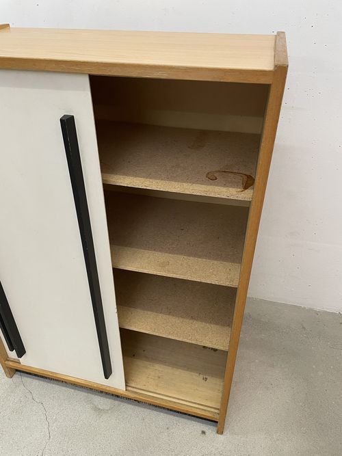 Produit venduCommode avec deux portes coulissantes blanches.