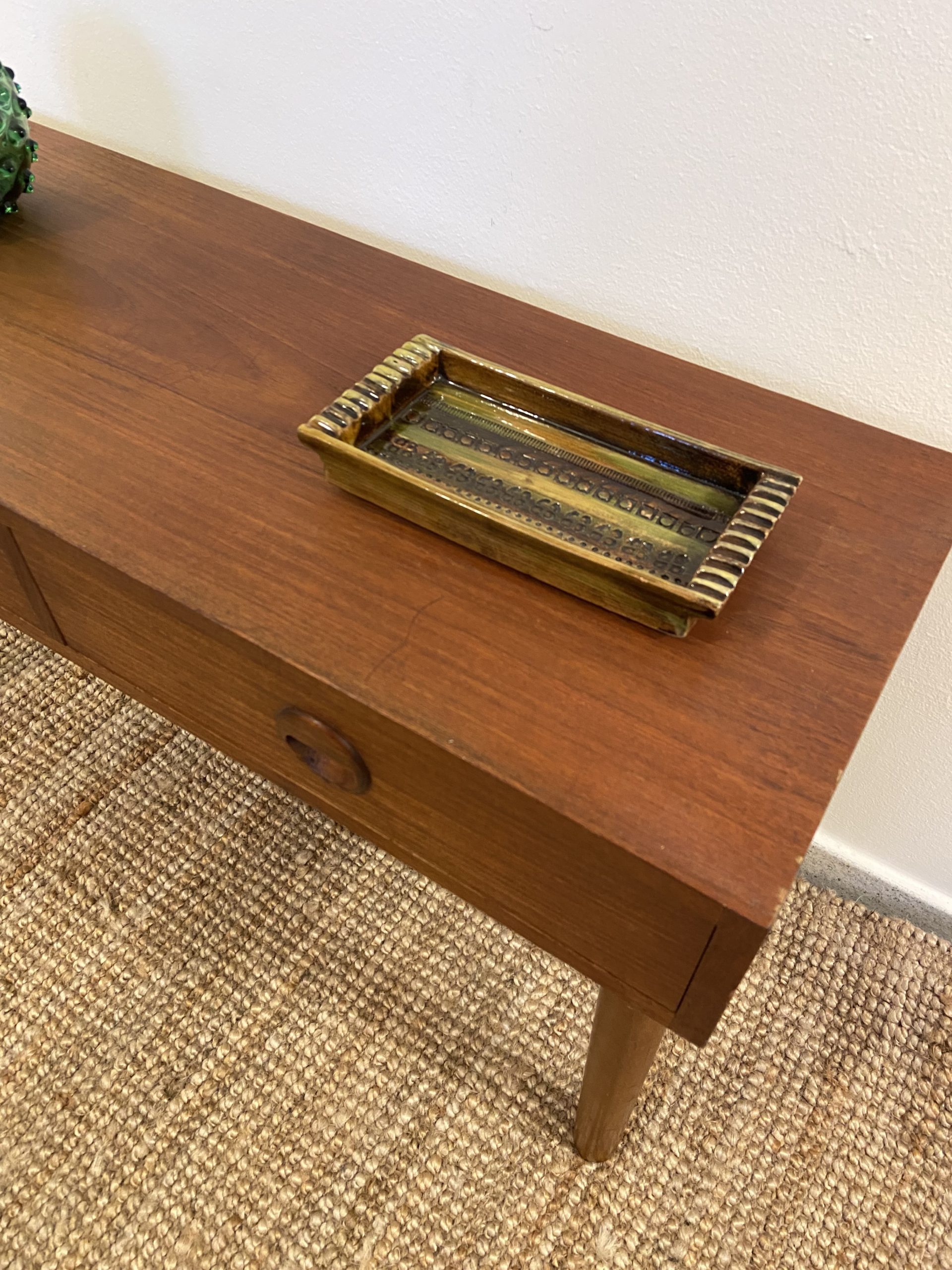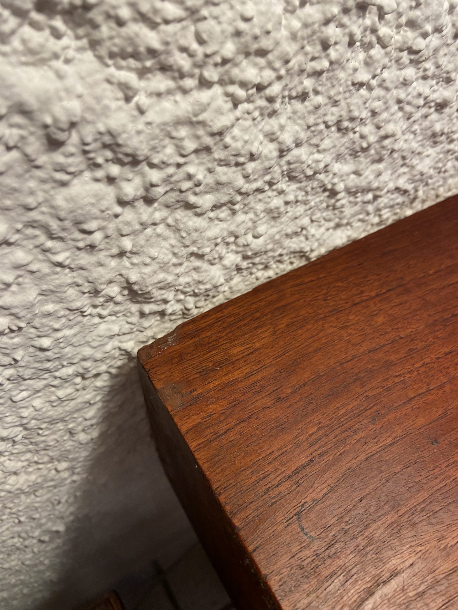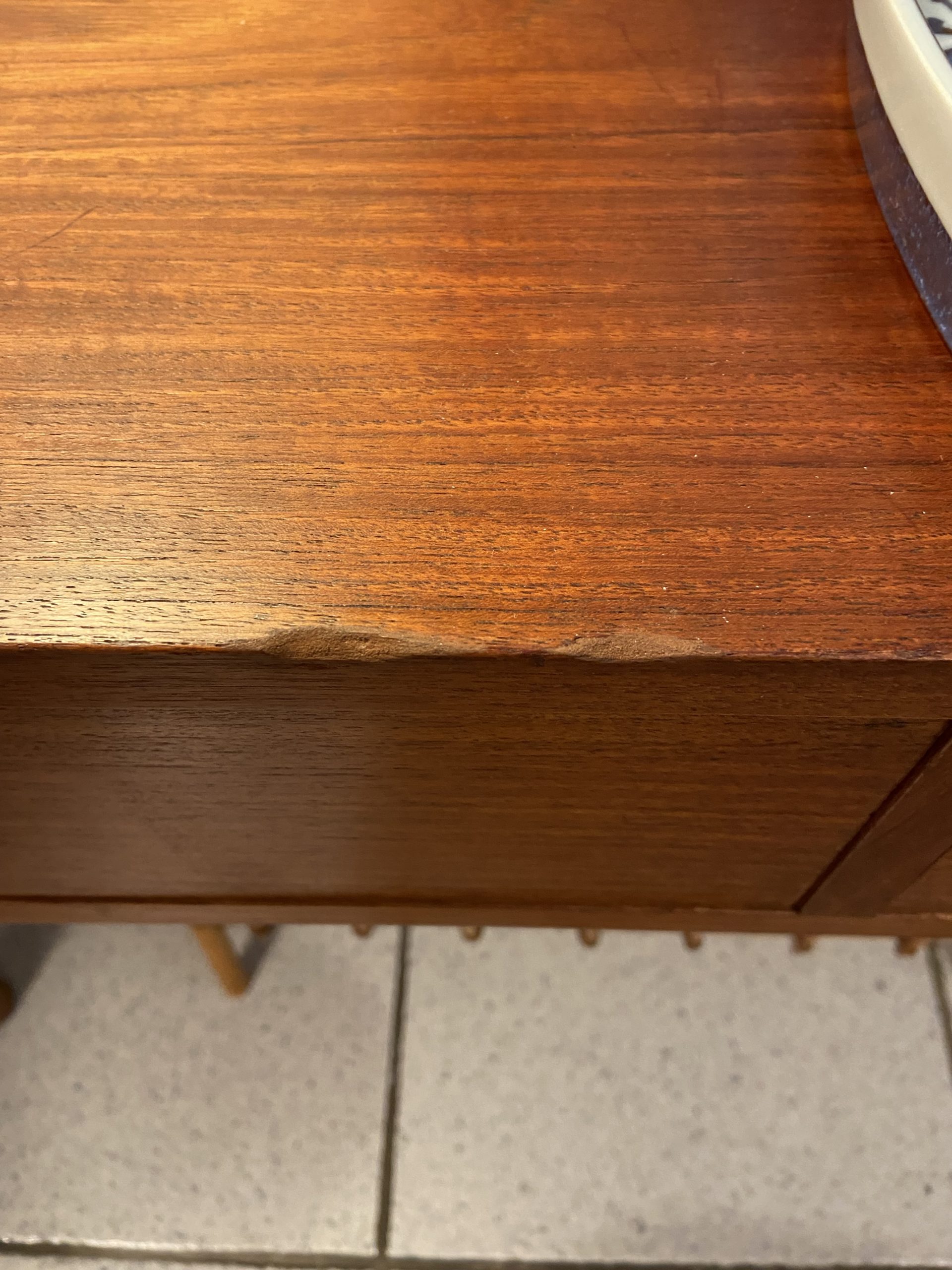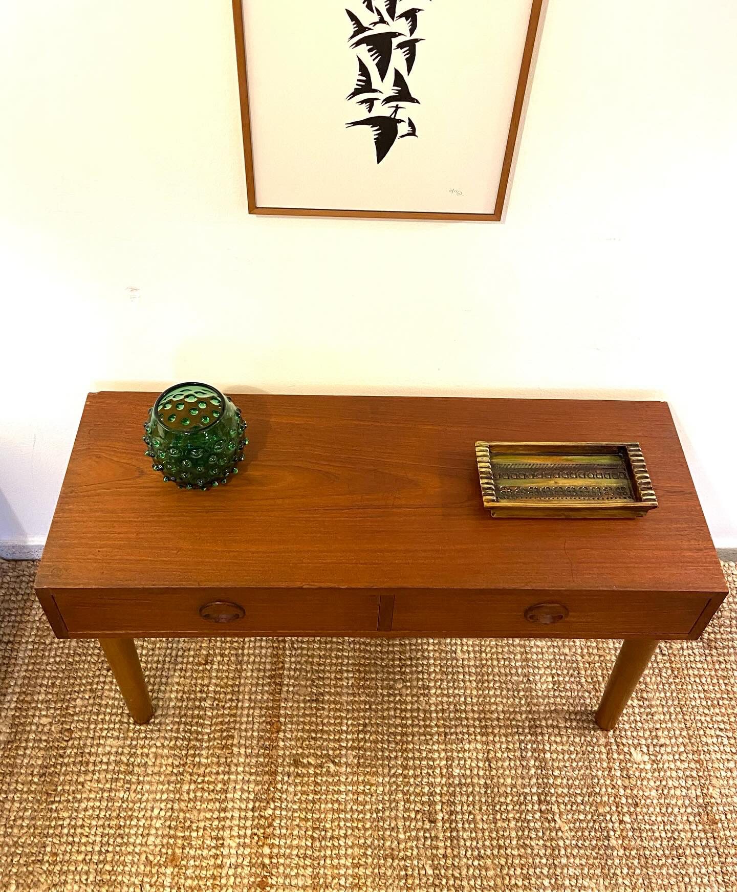 Produit venduJolie petite commode vintage en teck, composée de deux tiroirs.