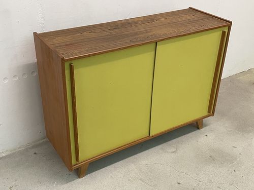 Produit venduCommode avec deux portes coulissantes jaunes.