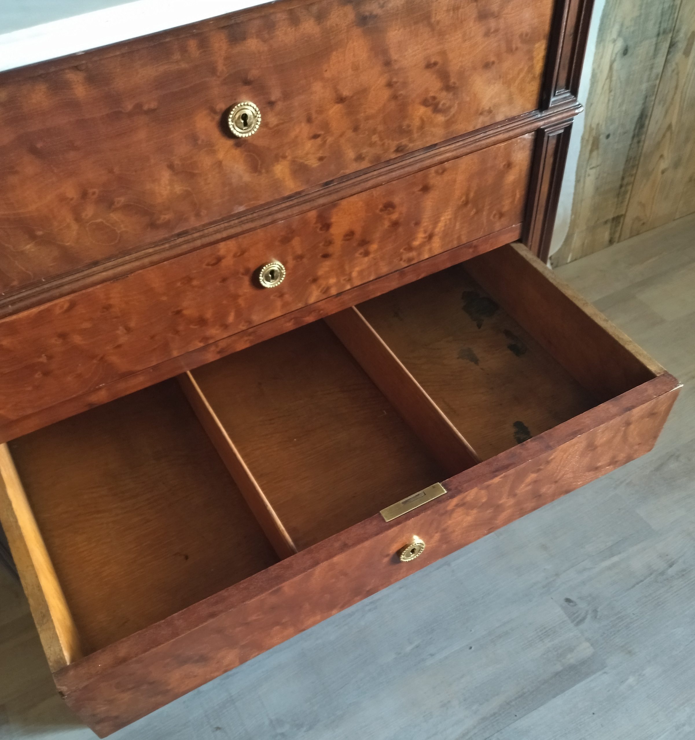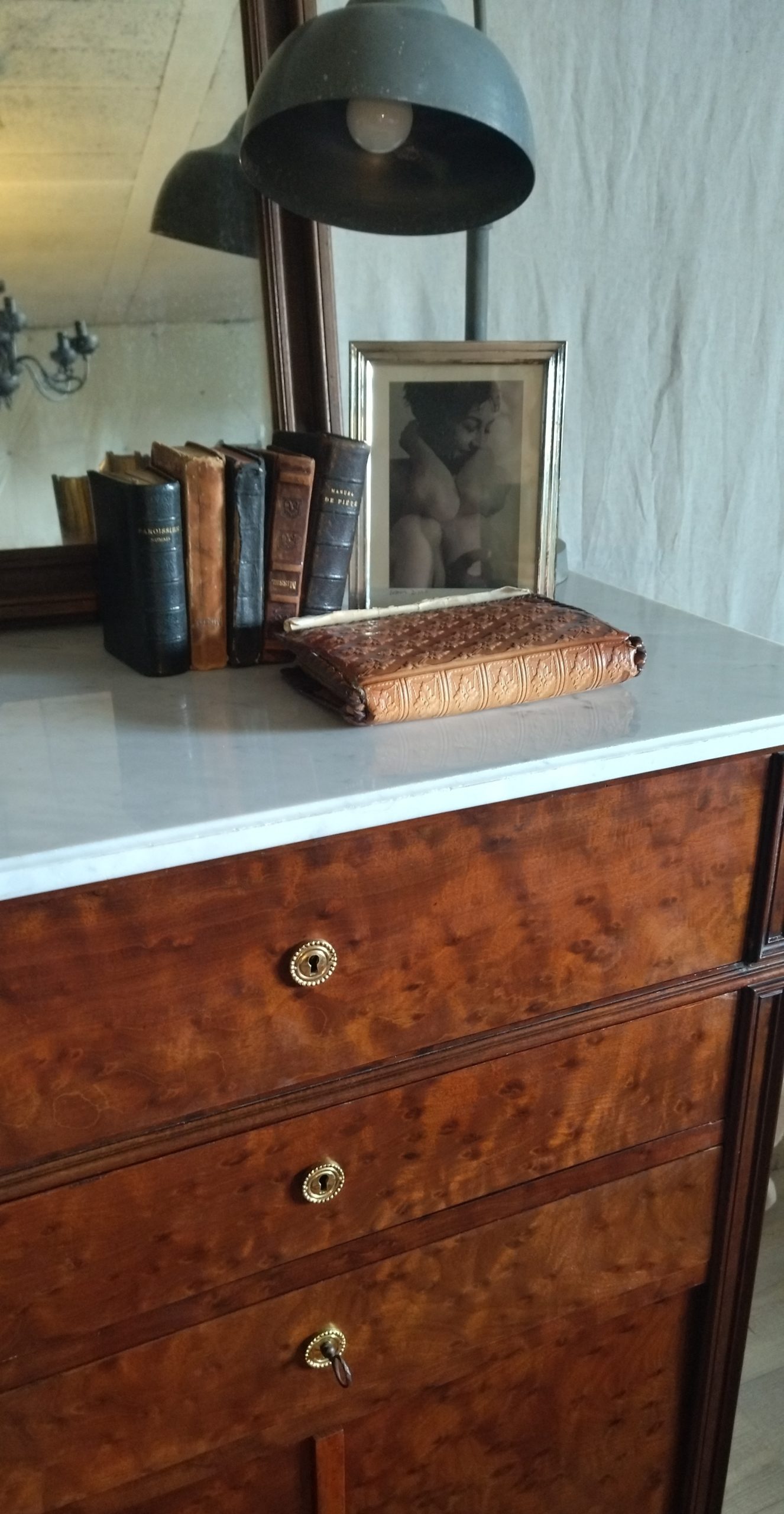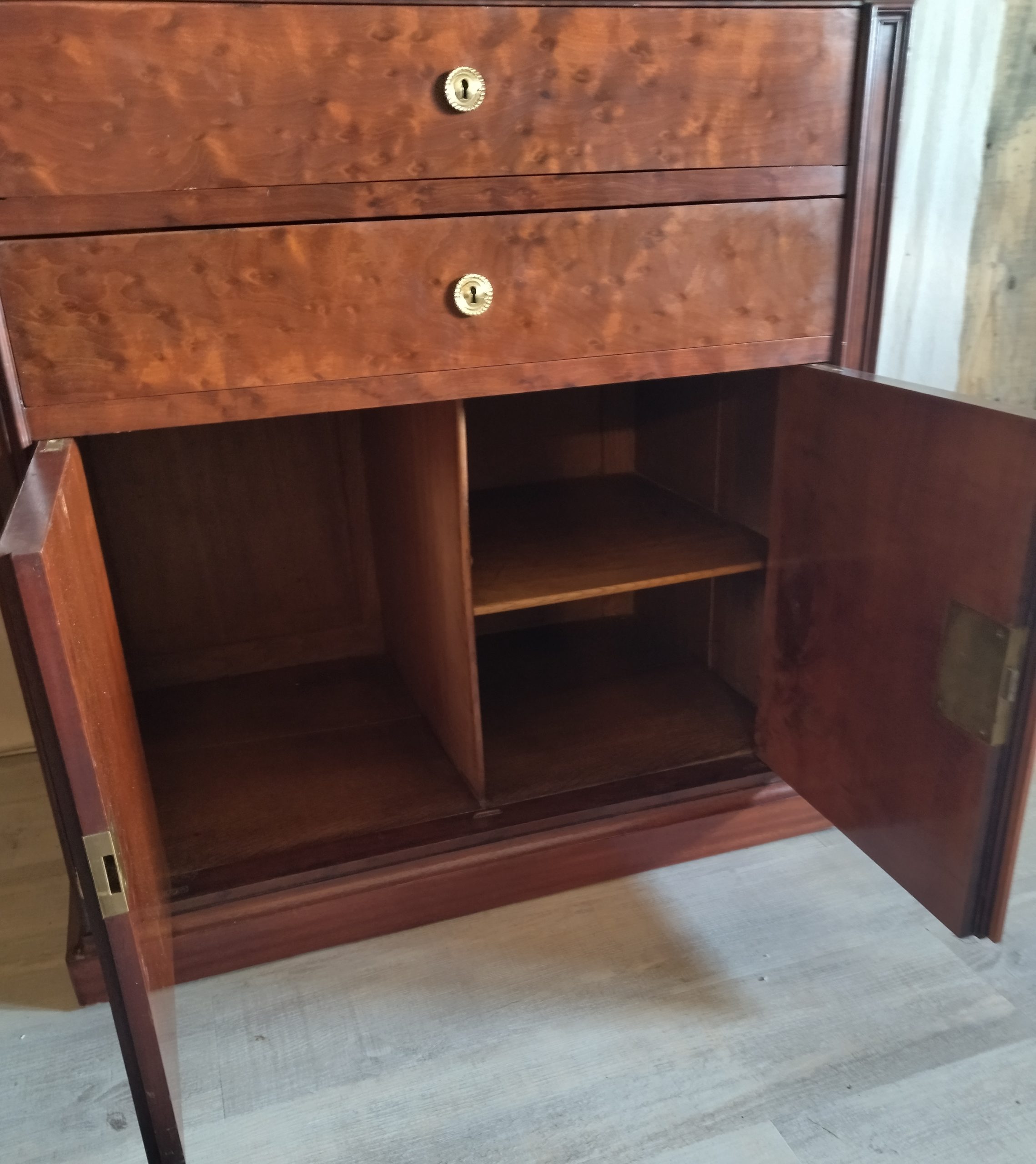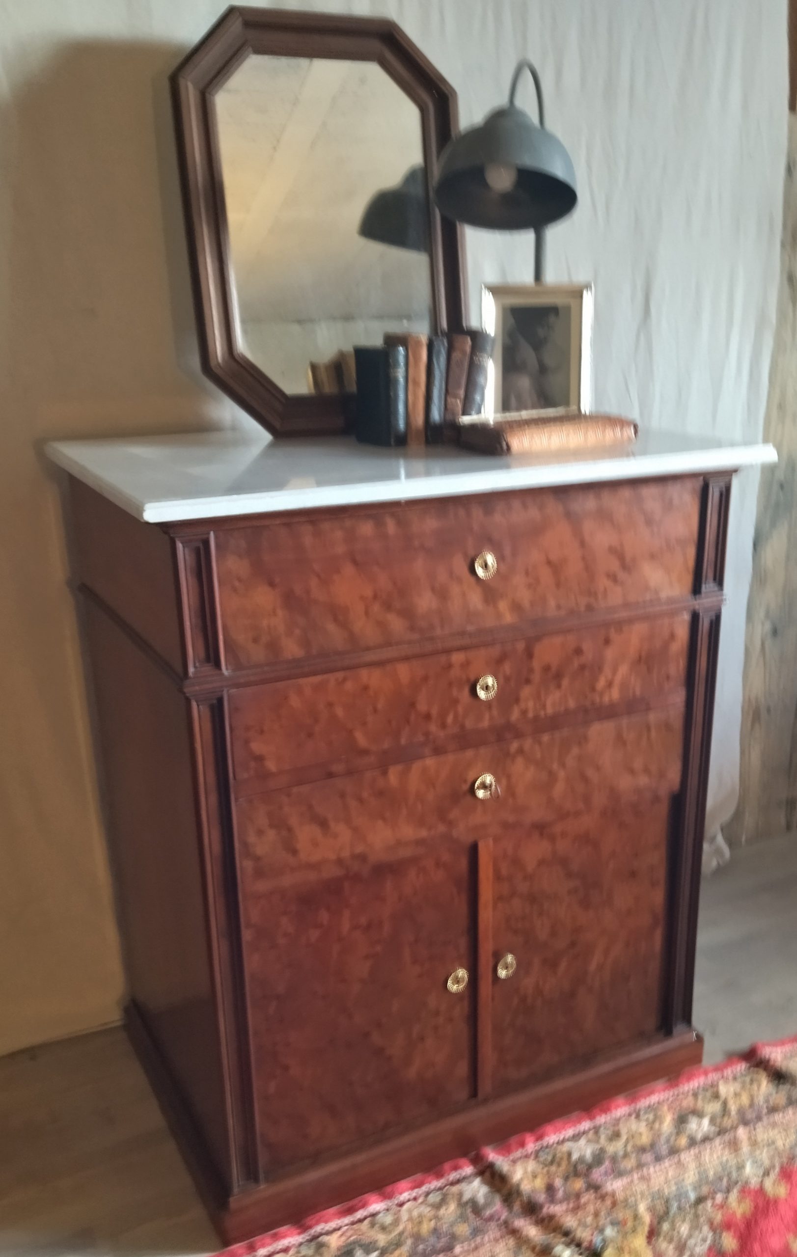Produit venduCommode ou secrétaire ou meuble de toilette plateau et intérieur premier tiroir marbre blanc, bois massif placage acajou. Joseph Roll, fabricant de meubles, exerça 42, faubourg Saint-Antoine à partir de 1844. Il participa à toutes les expositions de 1844 à 1867. Il mourut en 1877 sa veuve lui succéda pendant quelques années puis céda l’entreprise qui devint la maison Roll, Muller, Audoinaud et cie.