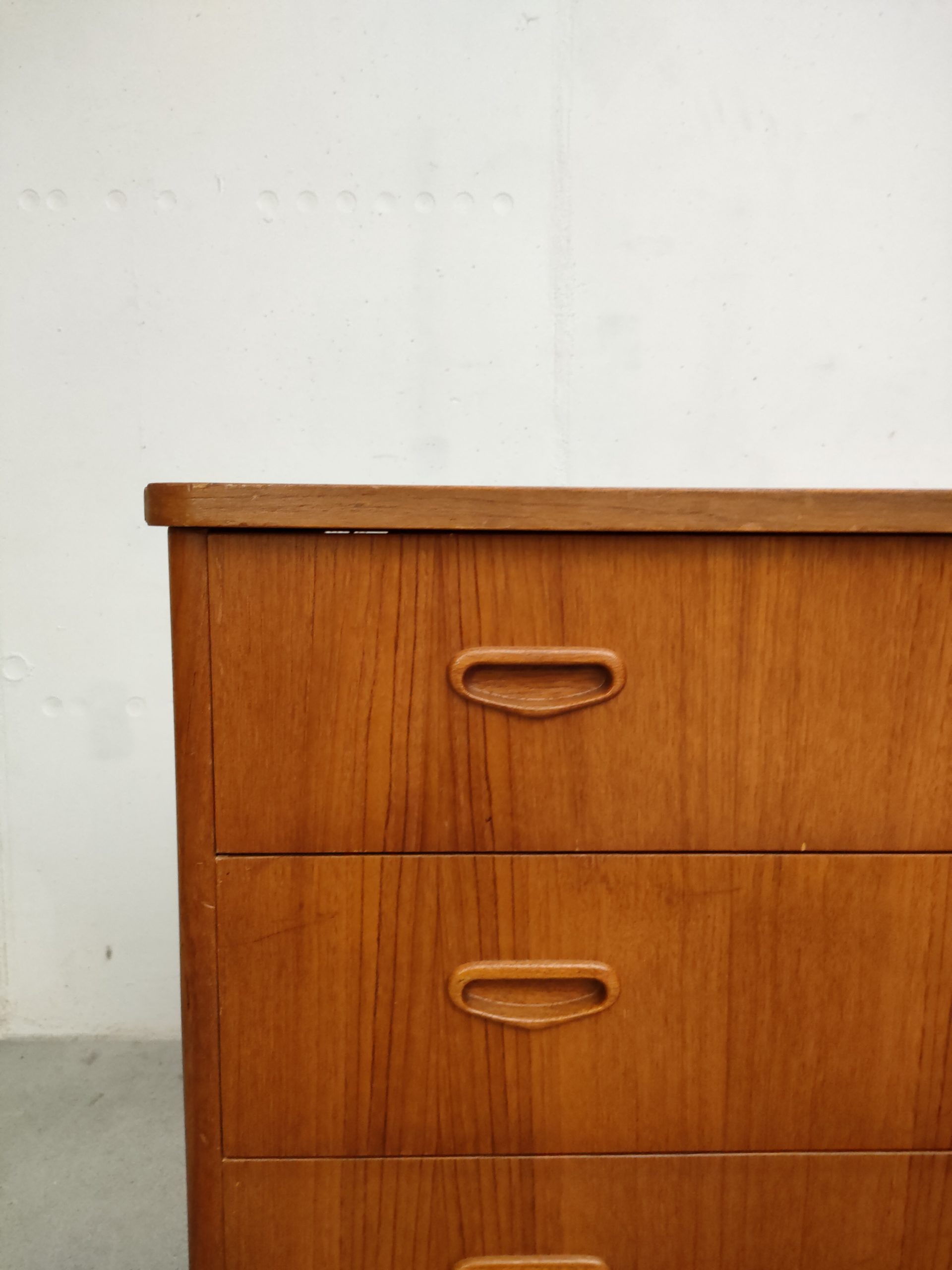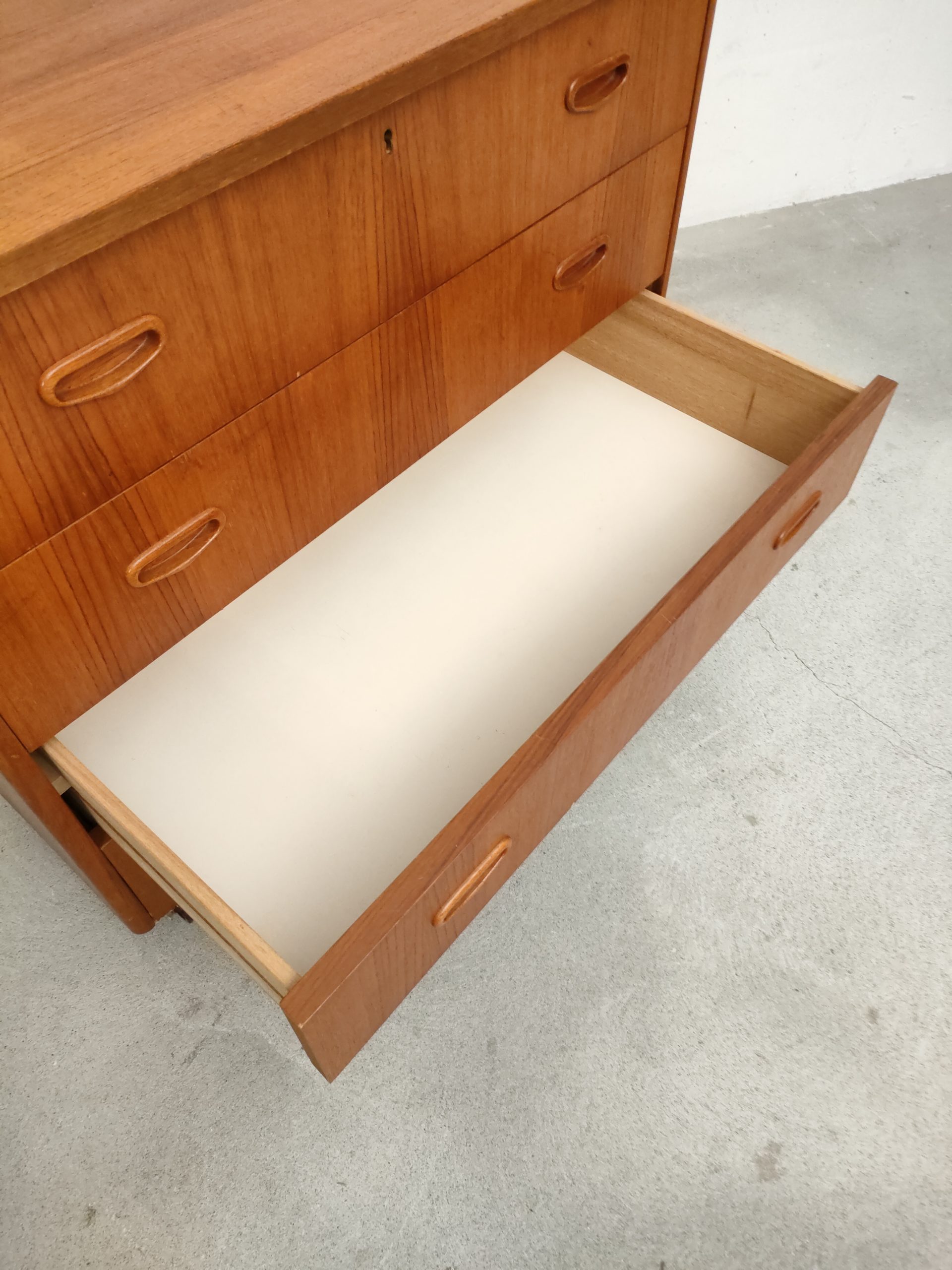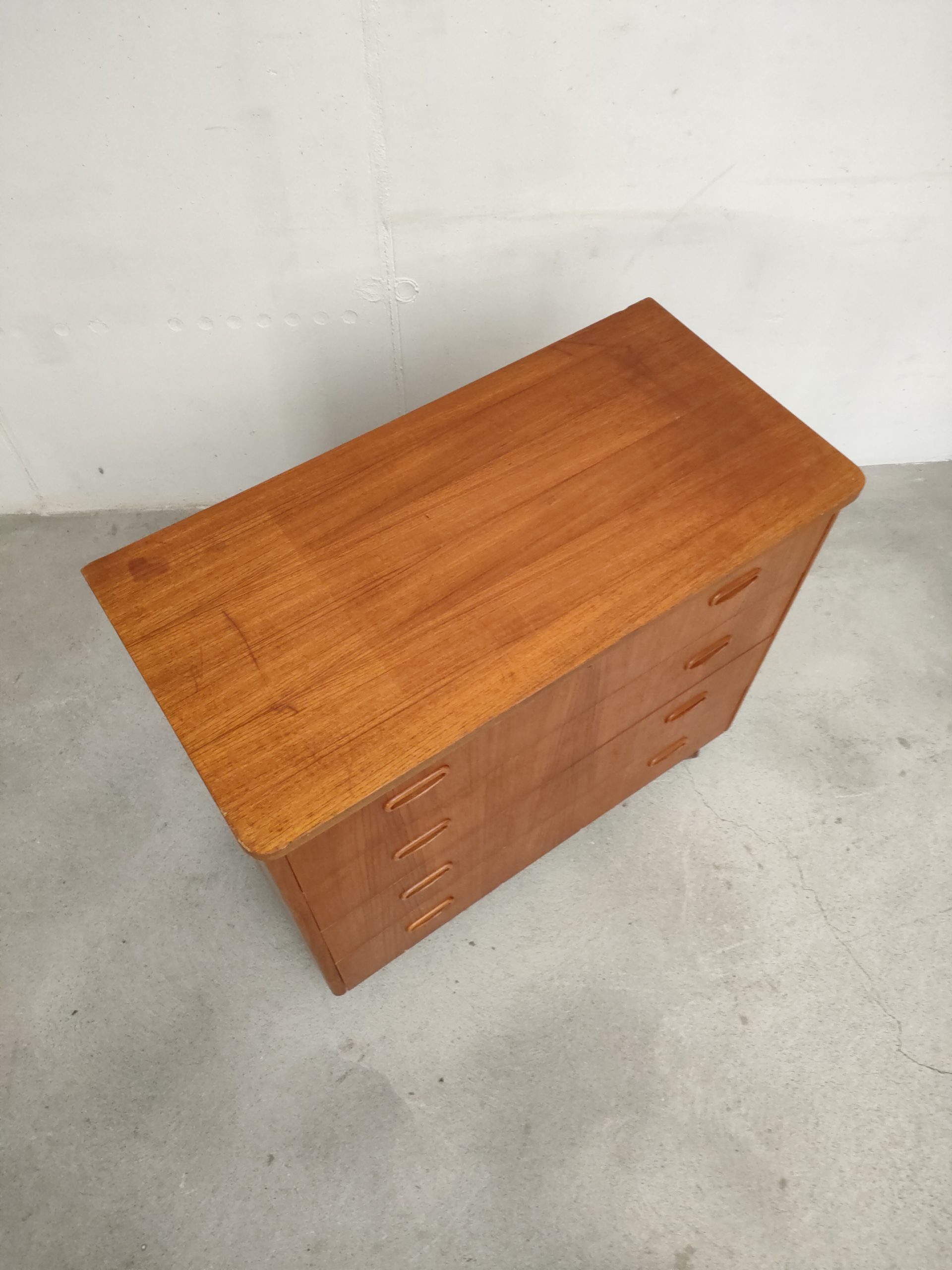Produit venduCommode suédoise en bois dotée de 4 tiroirs avec élégantes poignées. La commode est dotée de 4 roulettes qui ont été probablement ajoutées par son ancien propriétaire. Des traces d’usure sont présentes sur le bois (voir photos) mais la commode est stable et solide. La clé du premier tiroir est manquante.