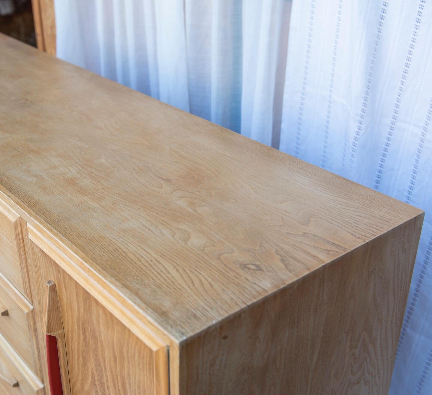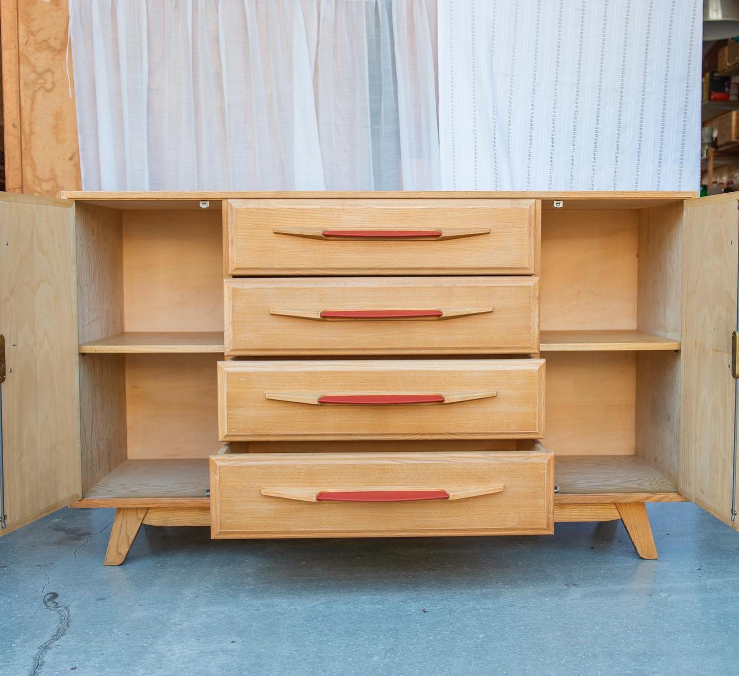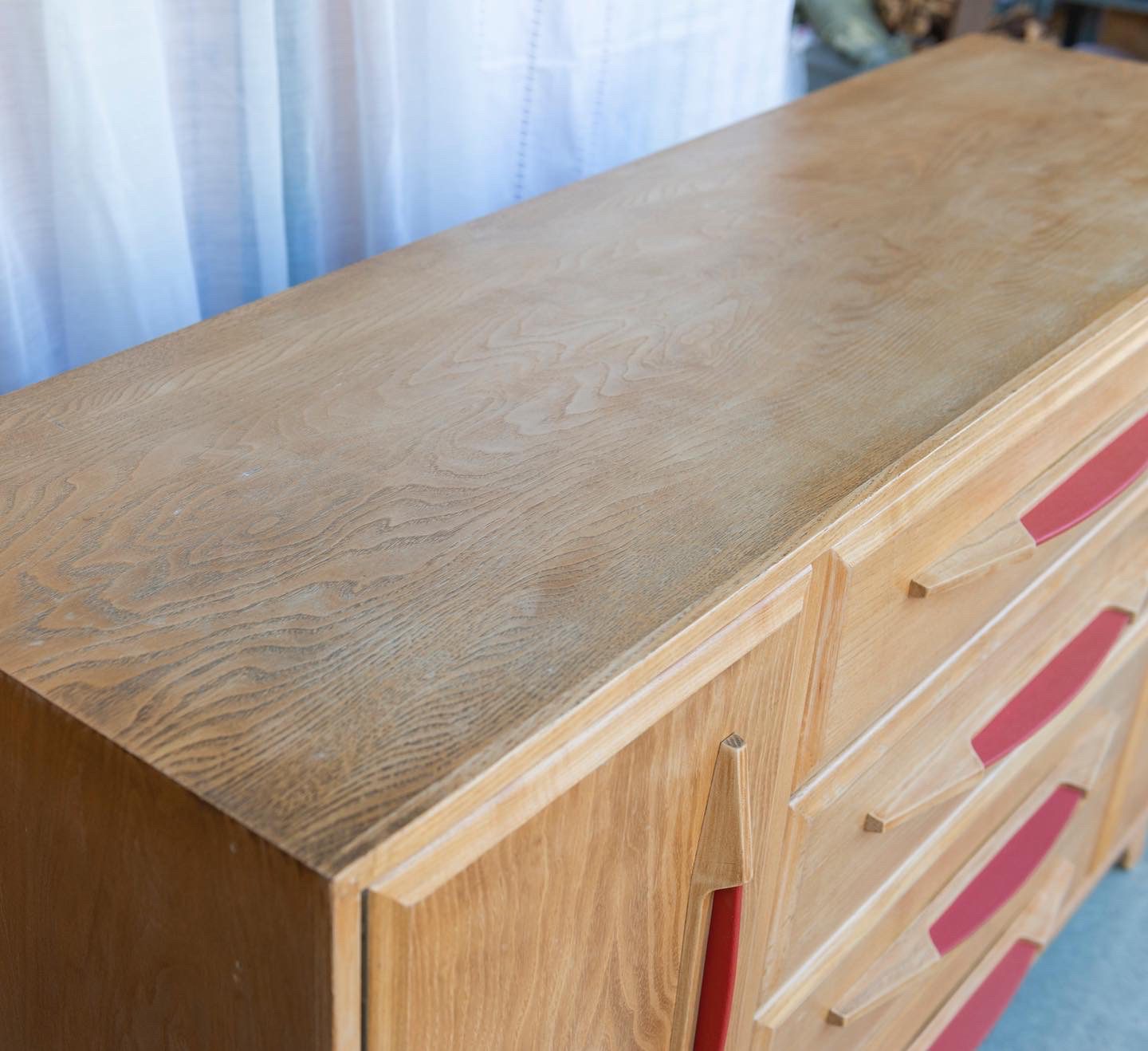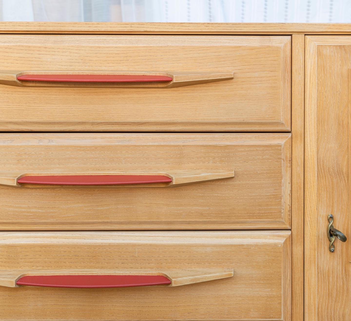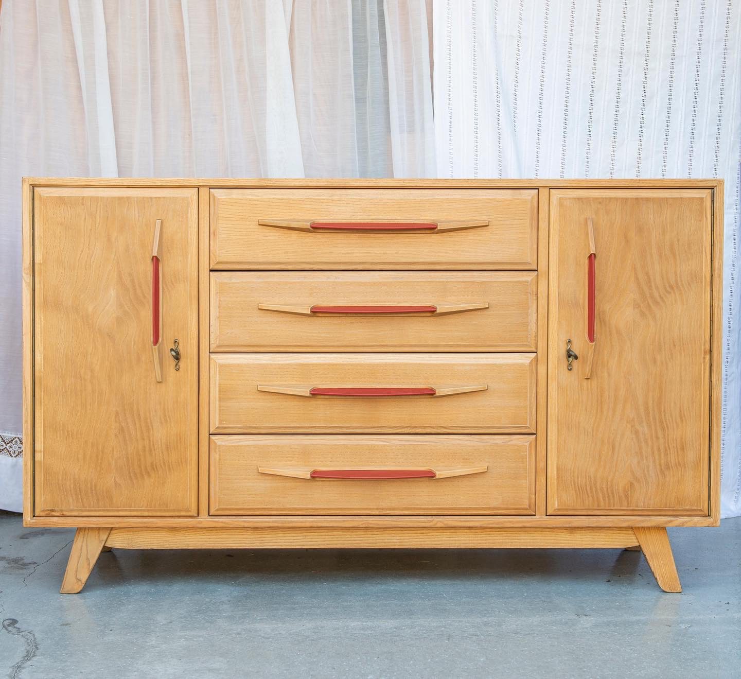 Produit venduSideboard vintage avec poignées en skaï rouge
