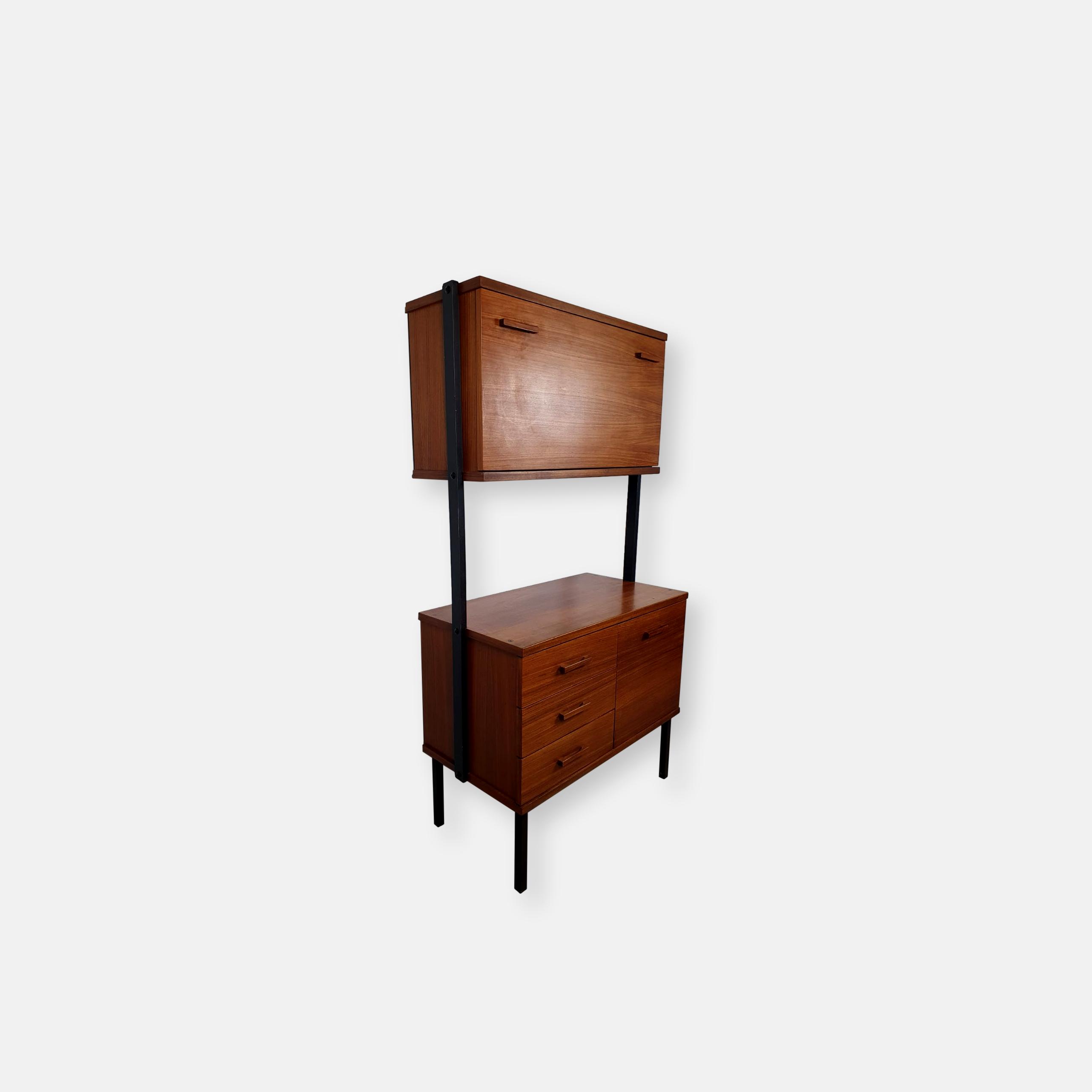Produit venduÉtagère/bar en bois des années 60 avec structure en métal. Le bar est élégant et peut être éclairé.