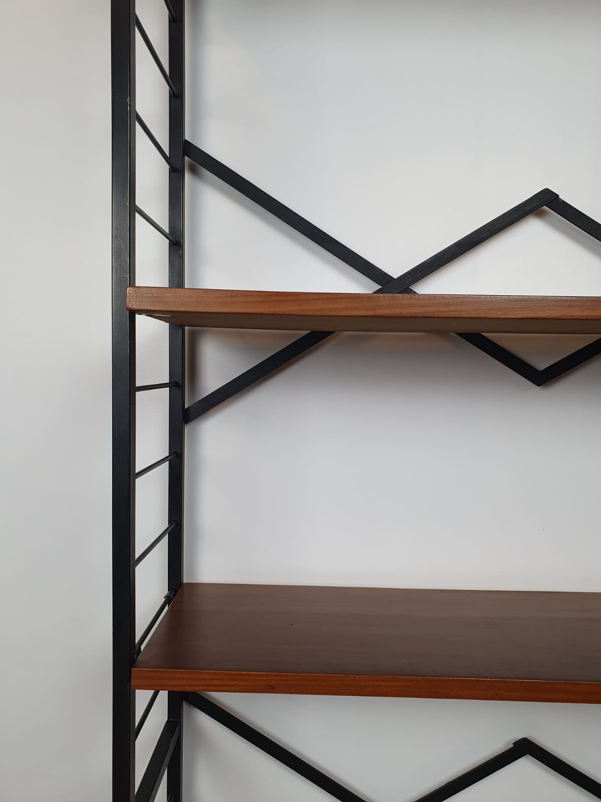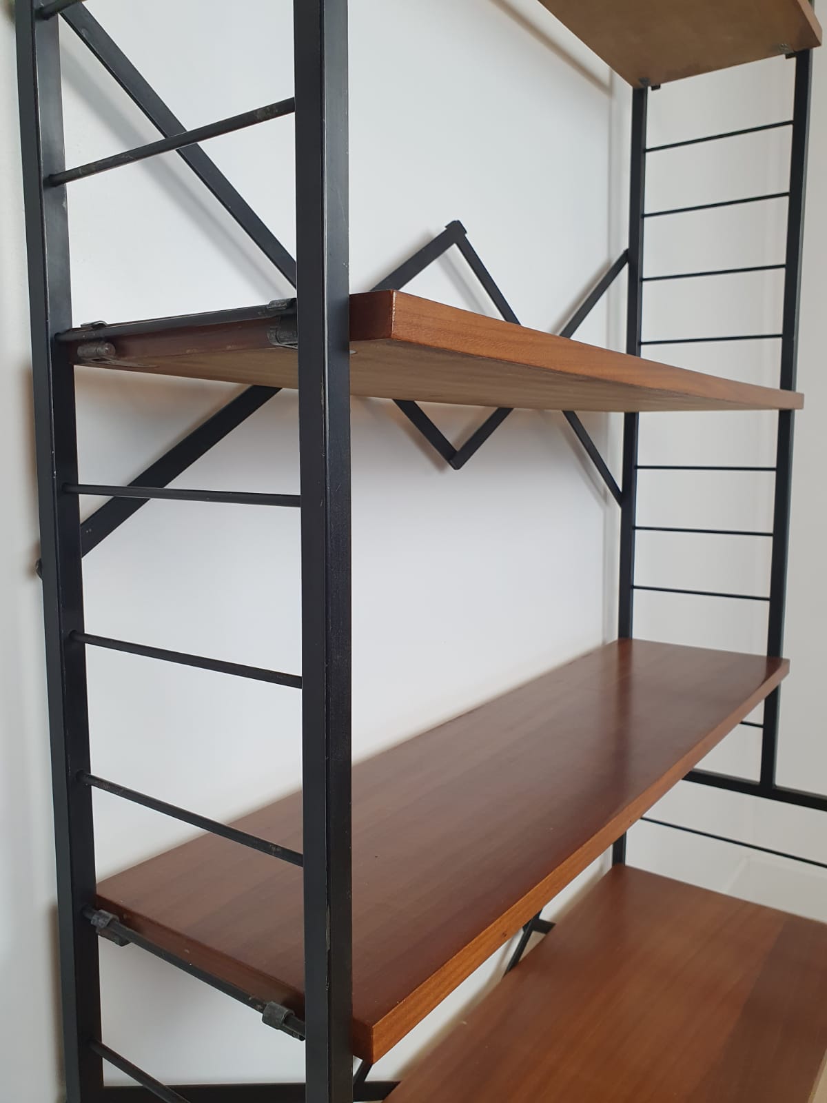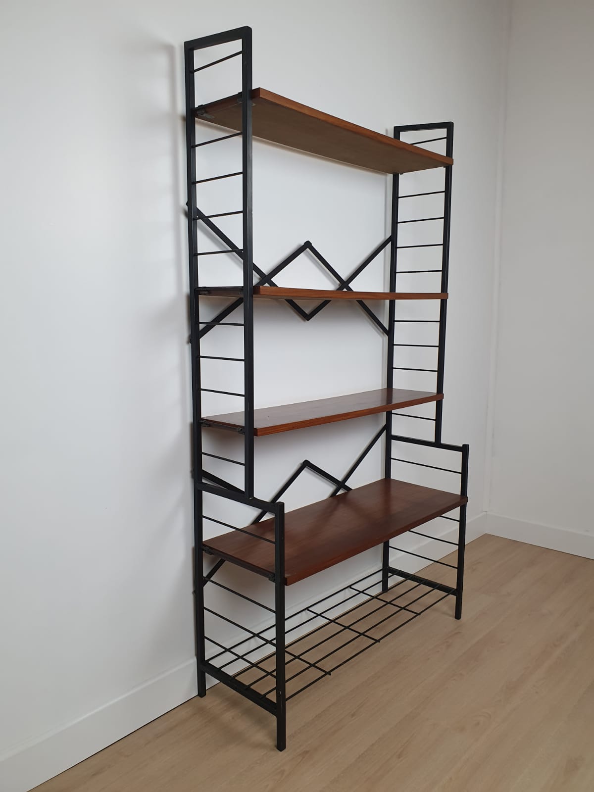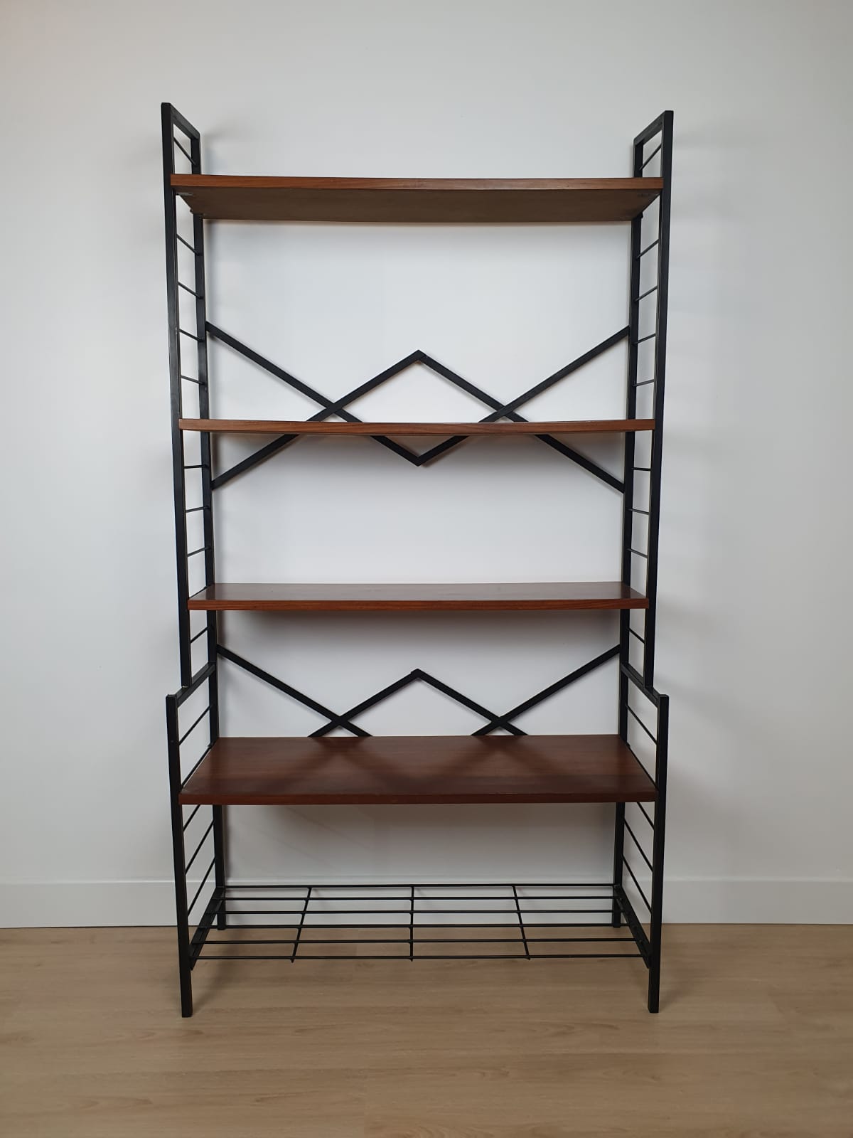 Structure en métal et plateaux en bois.