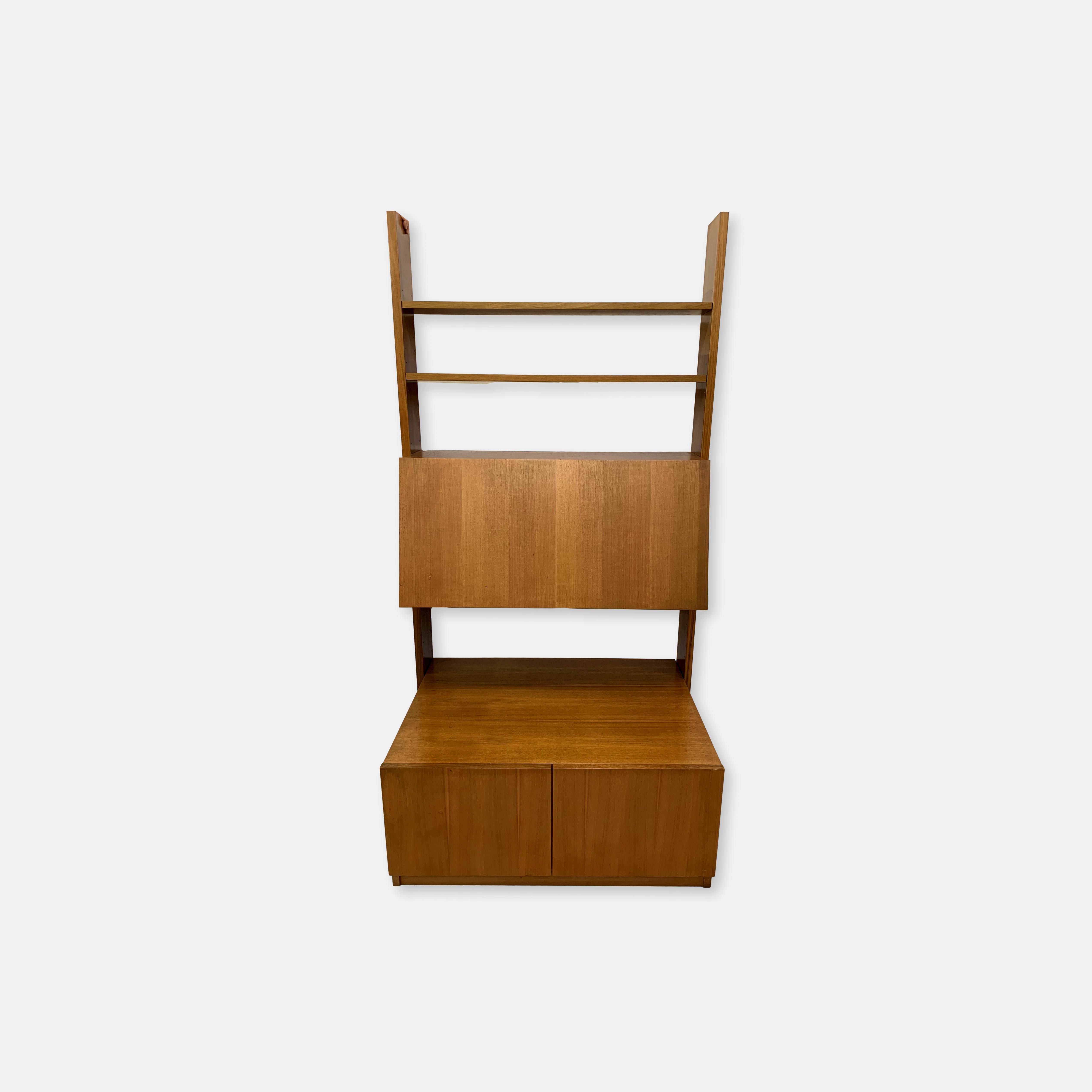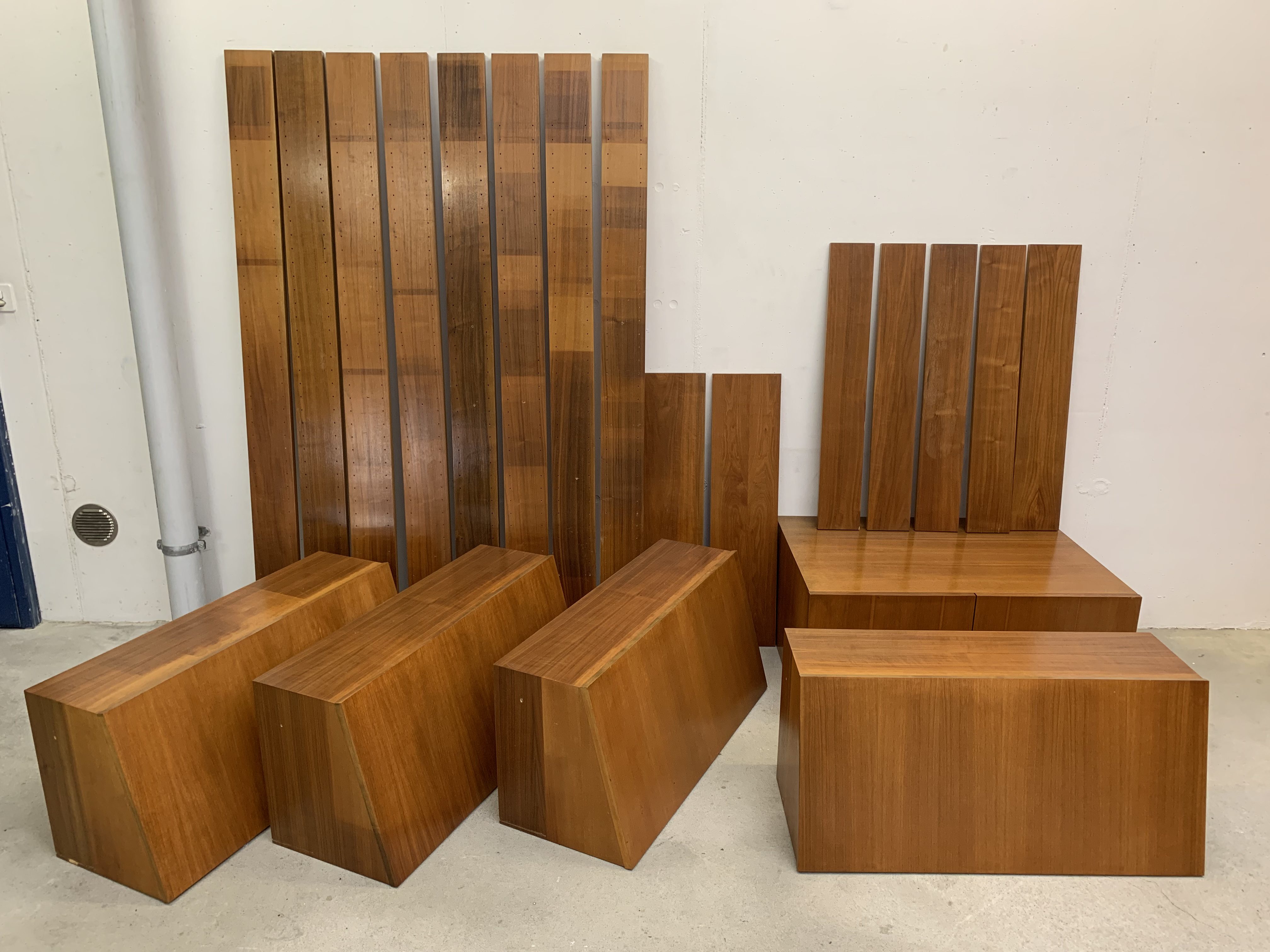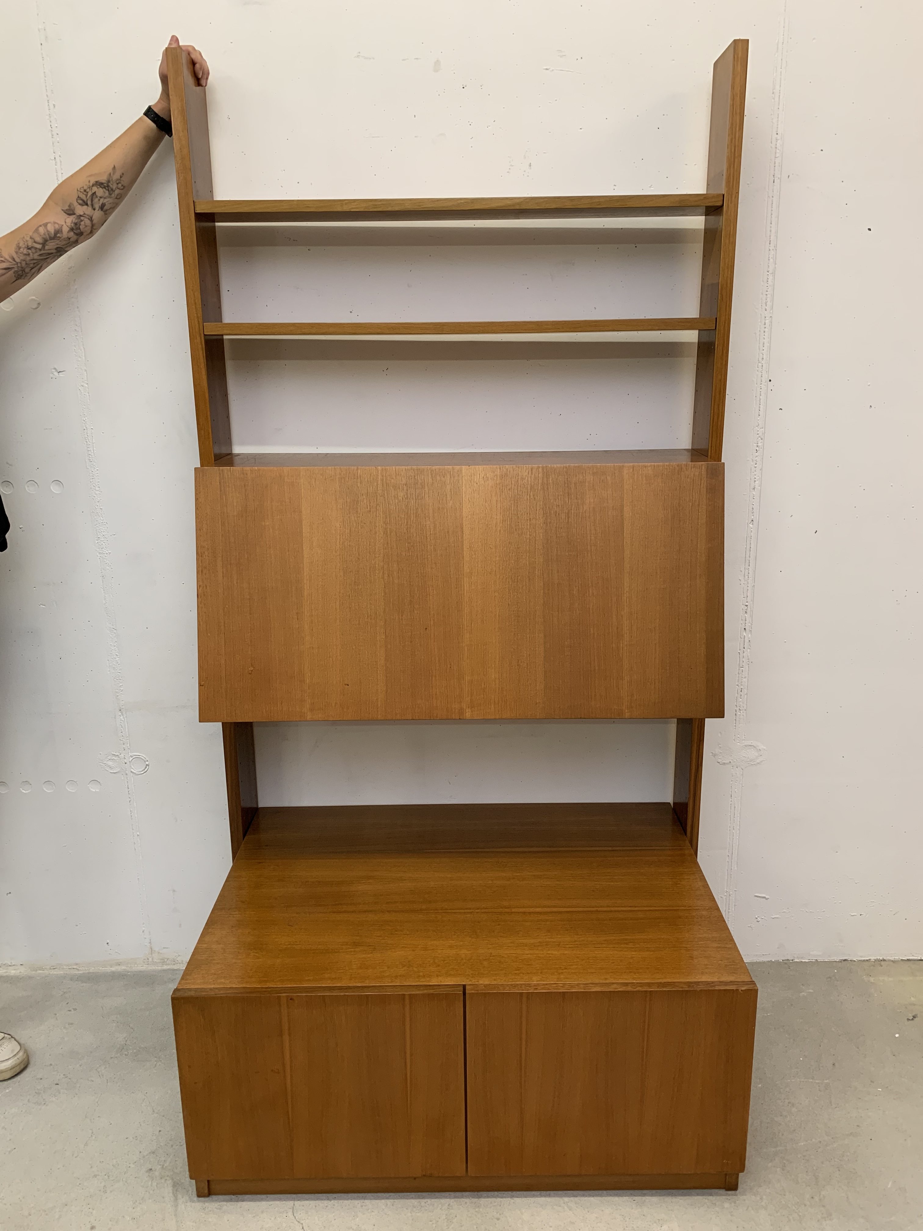 Produit venduÉtagère modulable avec caisson et tiroirs. Chaque élément peut être disposé à la hauteur voulue. Le caisson peut servir de minibar, mais sa porte ne reste pas parfaitement à l’horizontale une fois qu’elle est ouverte. La partie comprenant 2 tiroirs est indépendante (63 x 41 x 90 cm). Les tiroirs sont montés sur des rails à roulettes et sont équipés pour recevoir des dossiers suspendus. Les tablars mesurent 13,5 cm de profondeur et 90 cm de large. Le caisson fait 42 cm de hauteur et 36 de profondeur, à sa base (25 cm à son sommet). L’étagère se fixe uniquement au mur à son sommet à l’aide de petites équerres (fournies). Elle peut être facilement combinée avec les autres étagères identiques visibles sur une autre annonce.