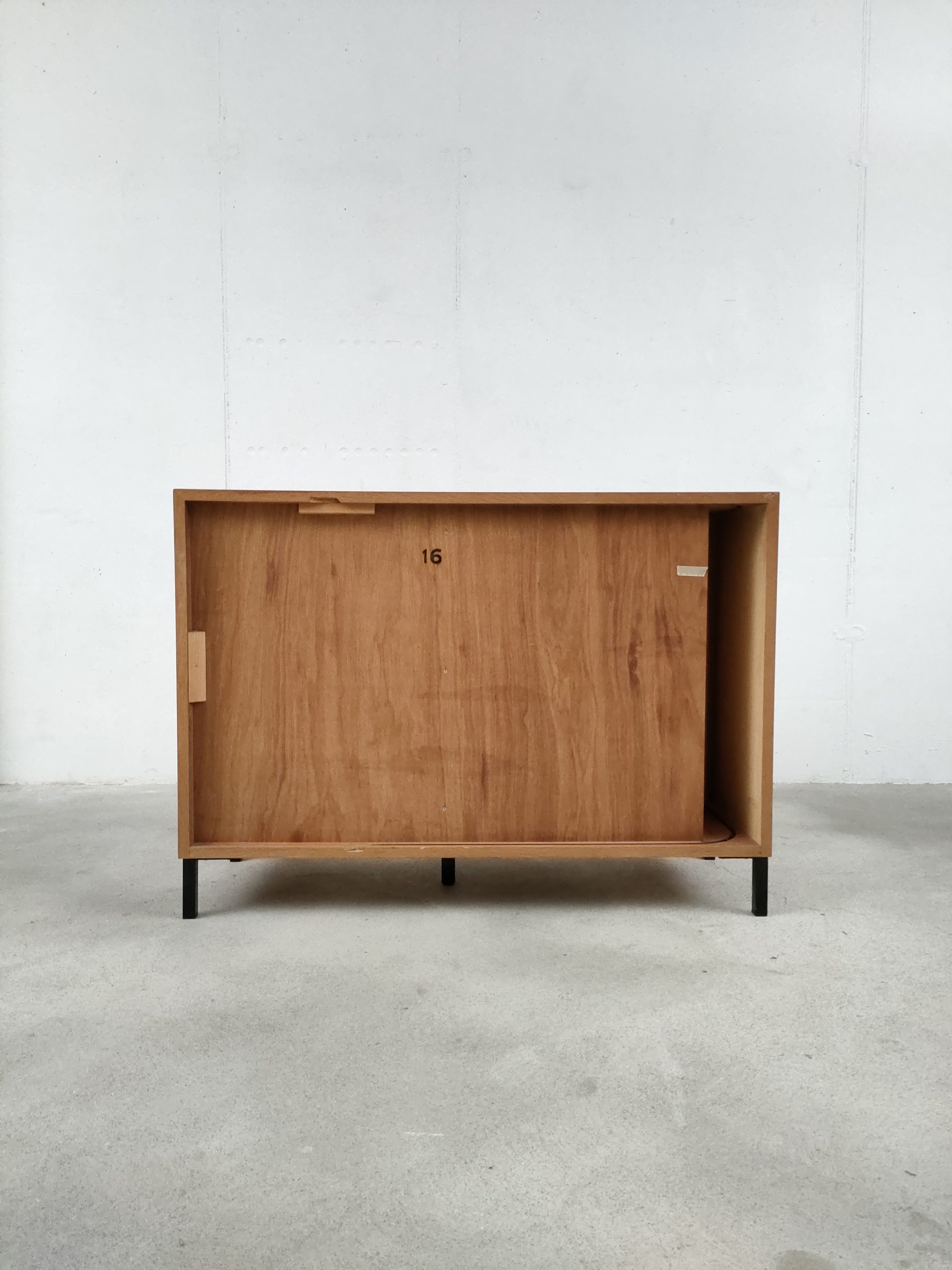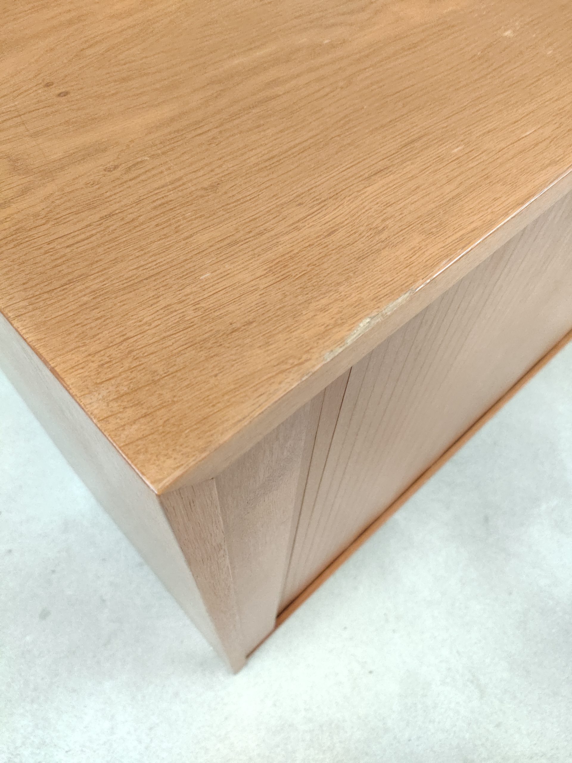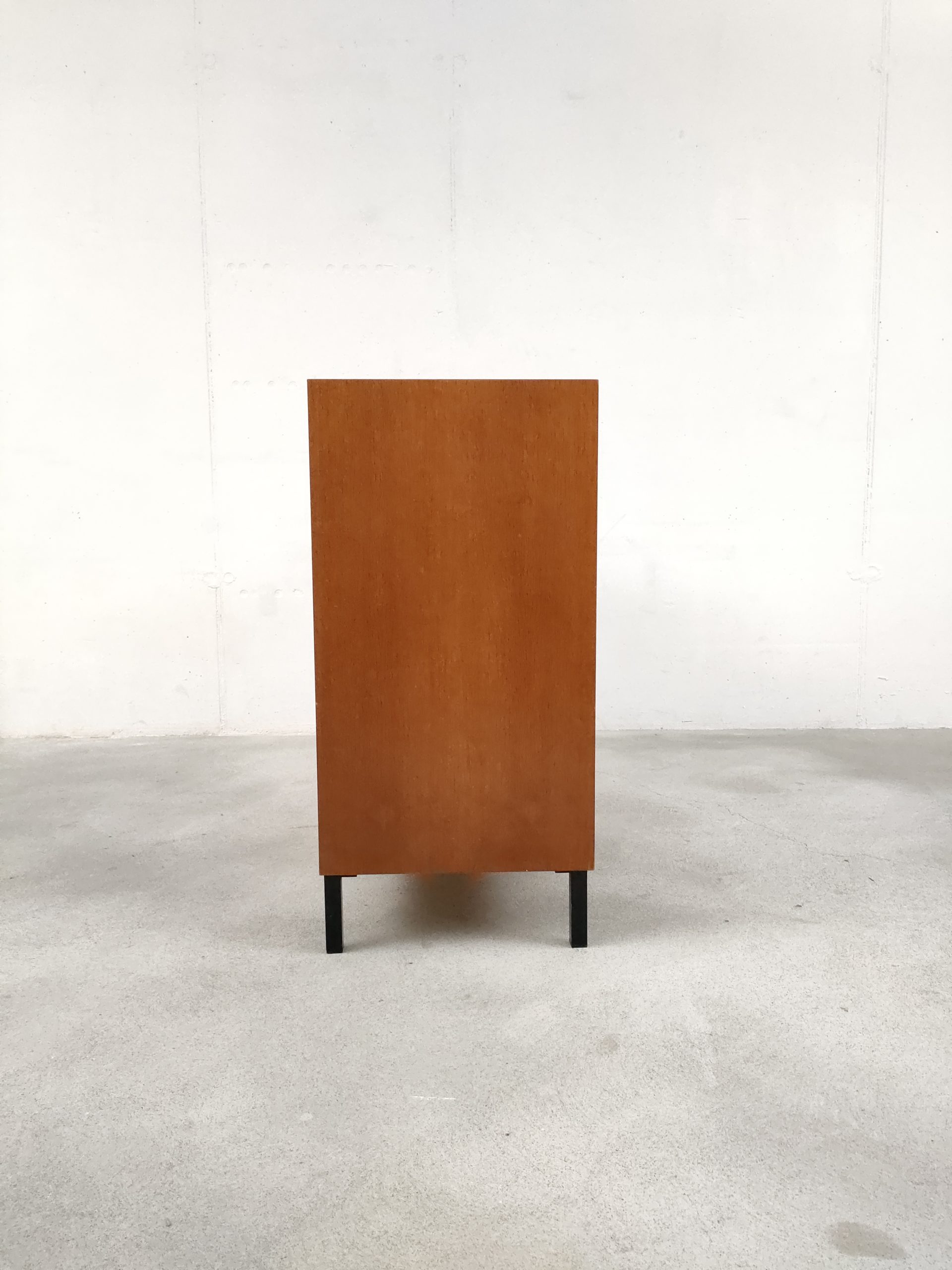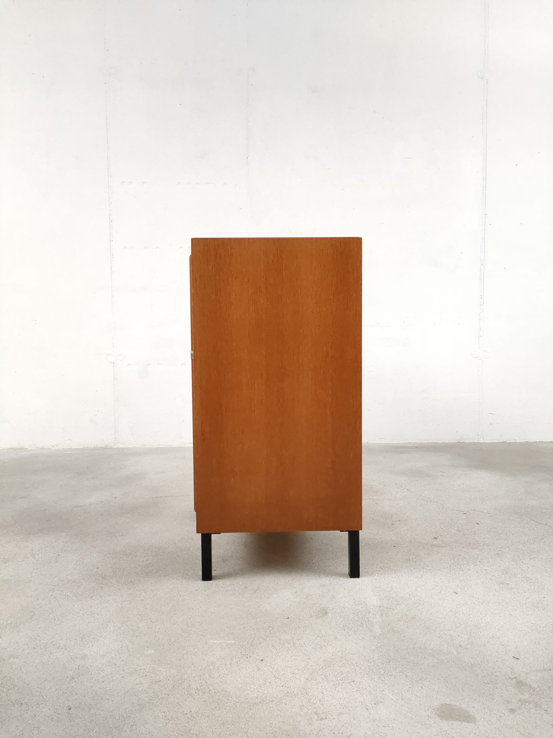 Produit venduMeuble à rideau vintage en bois avec piètement en métal. Le meuble dispose de 2 espaces internes dont une avec une étagère. Clé malheureusement non disponible et traces d’utilisation sur le plateau (cf. photo).