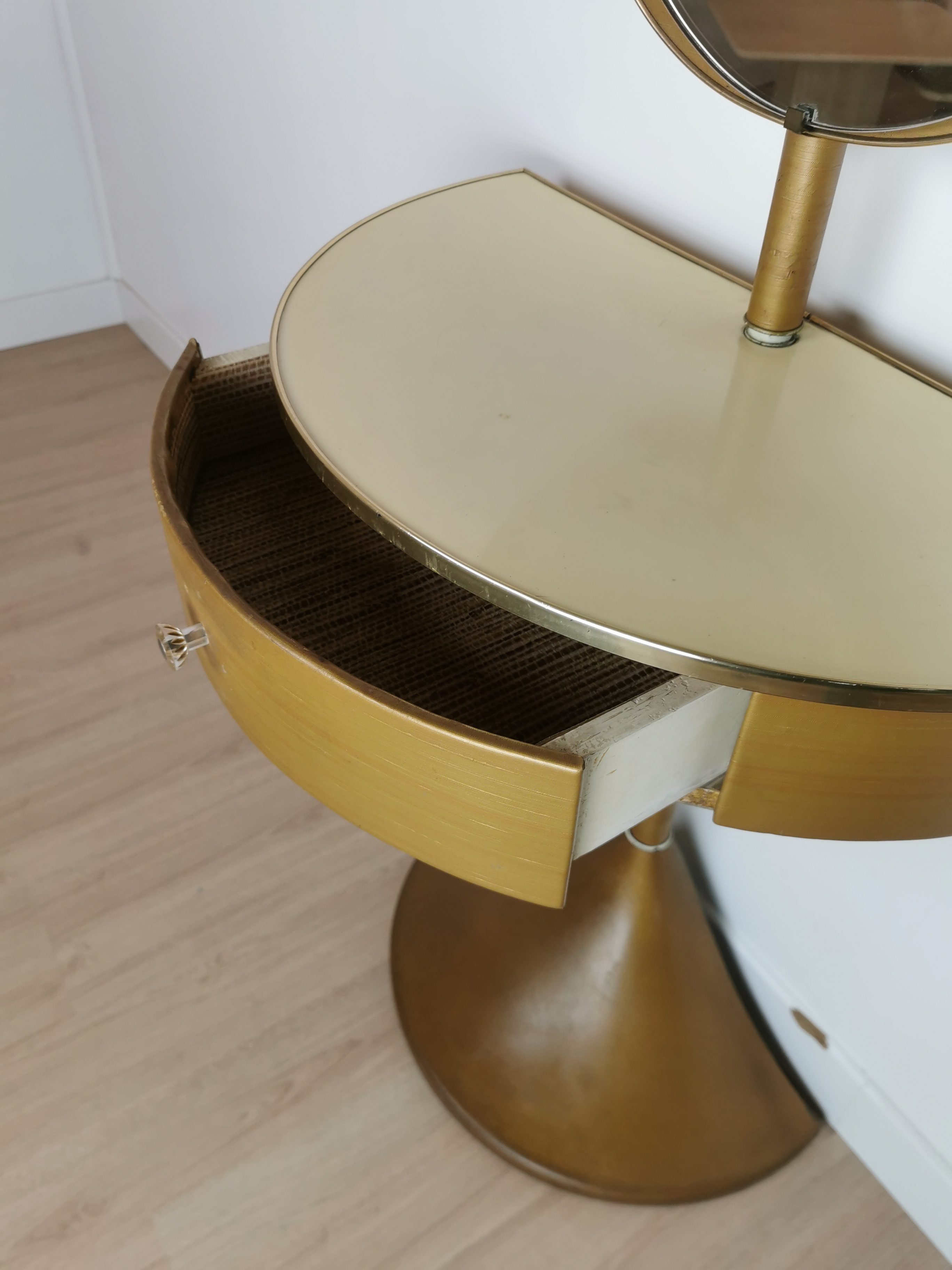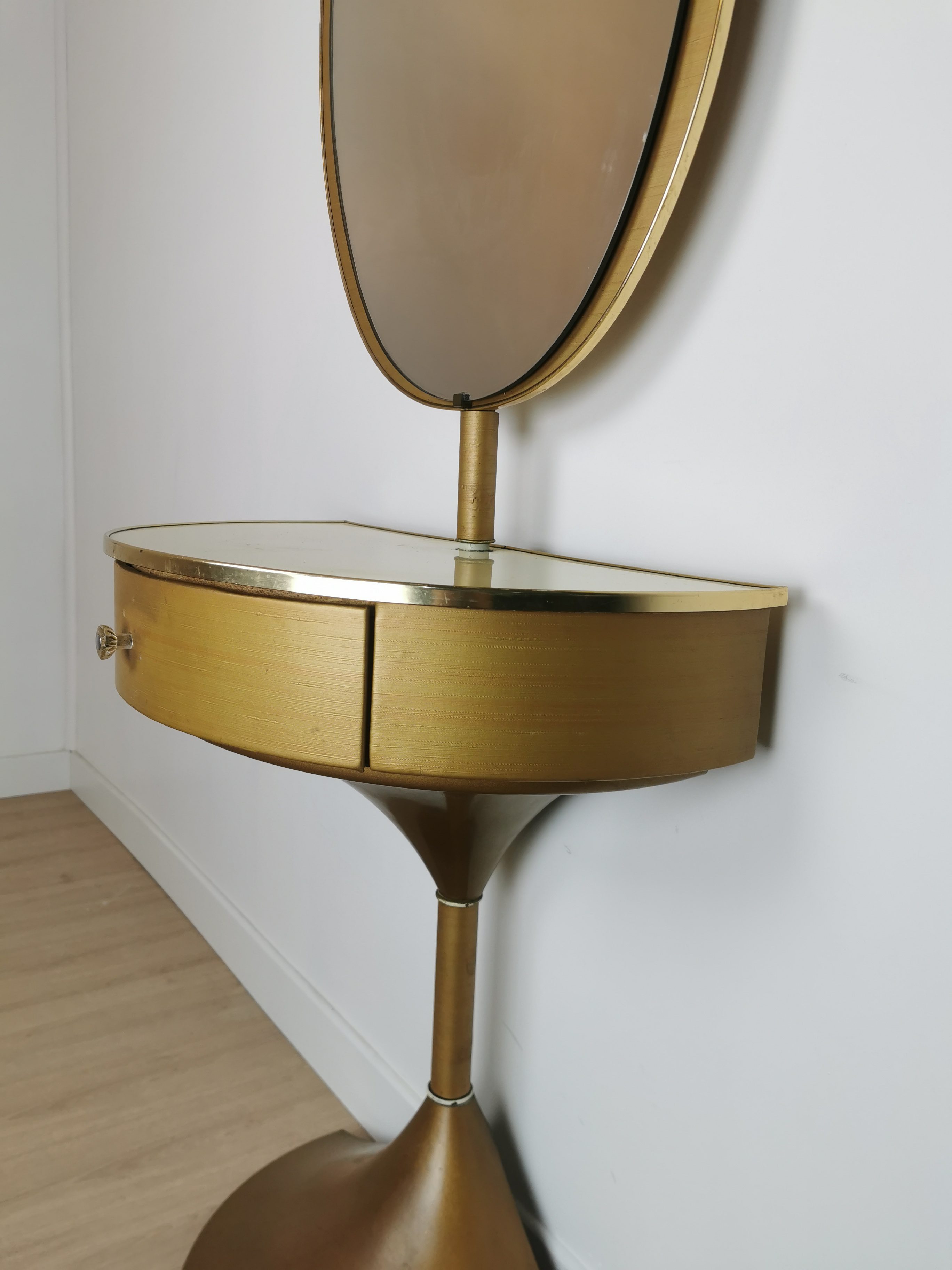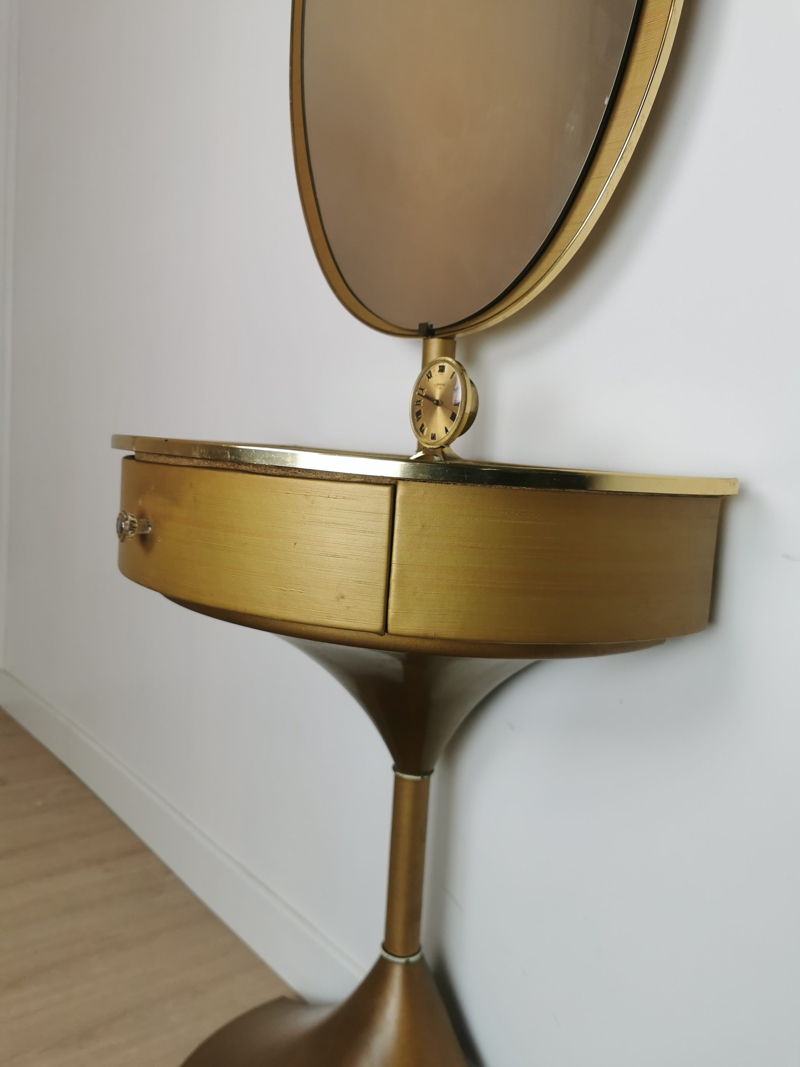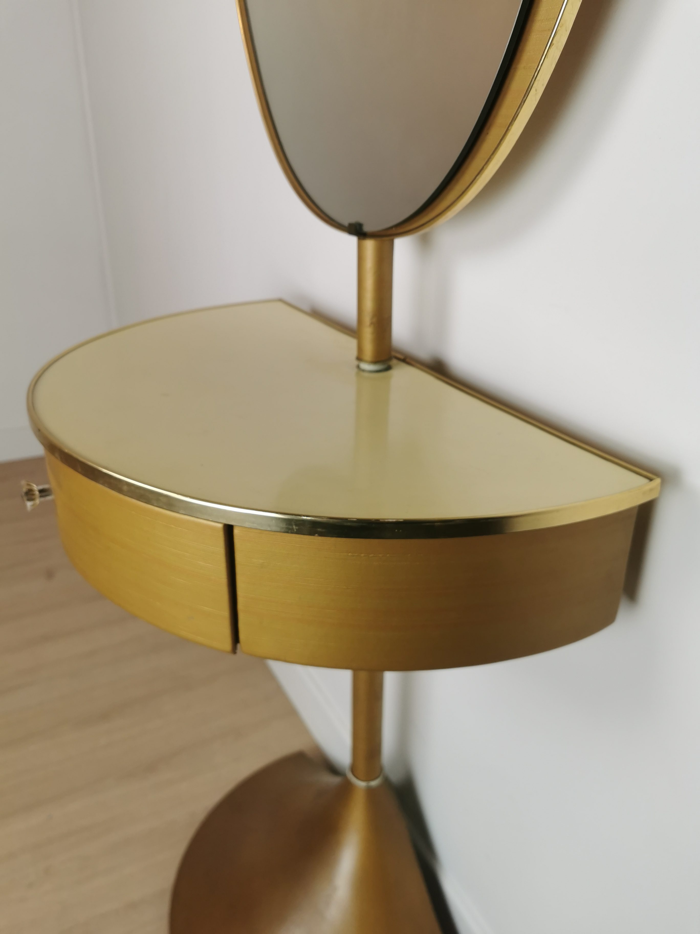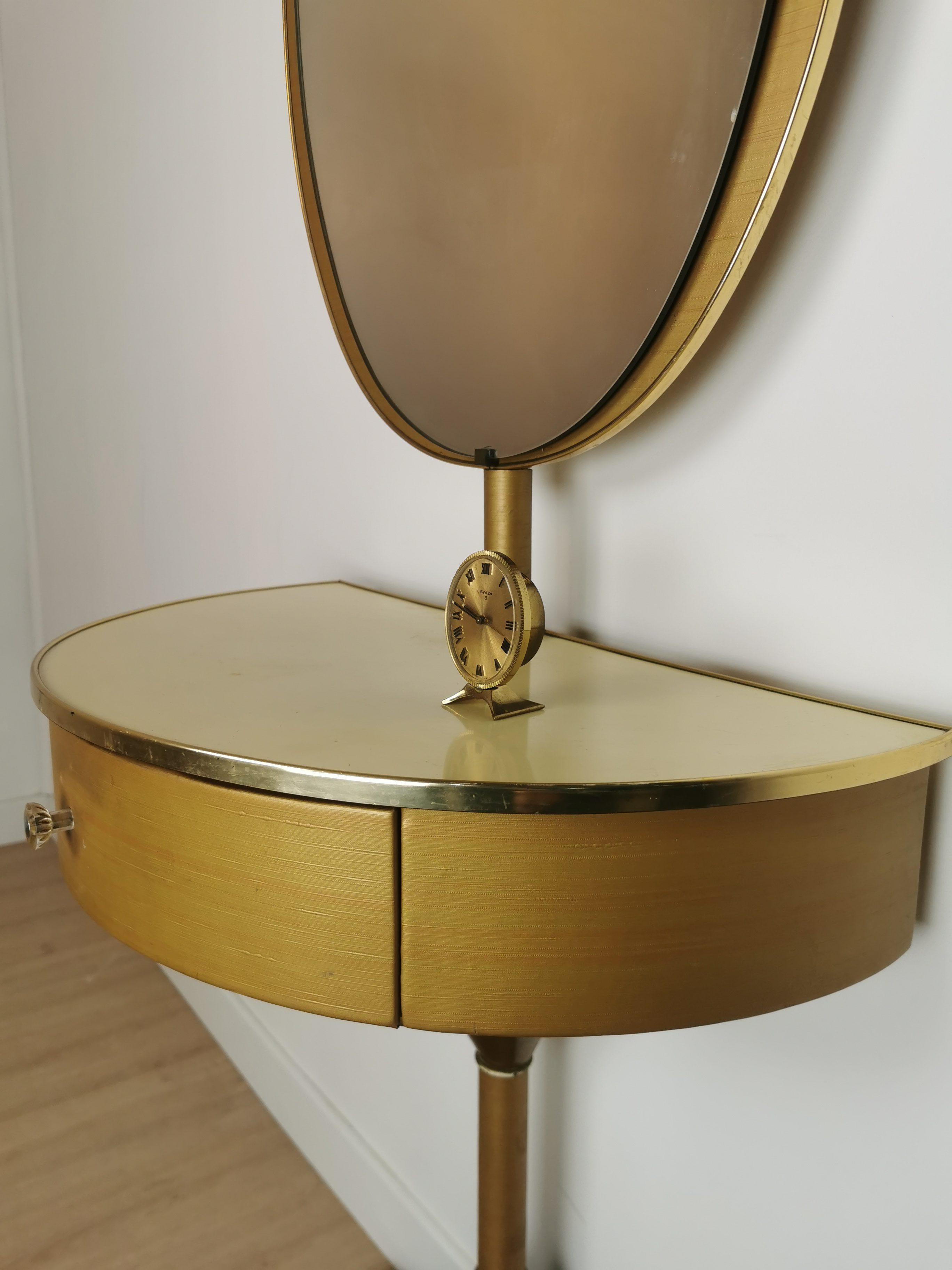 Produit venduMeuble coiffeuse/d’entrée des années 50/60 avec miroir, plateau et tiroir.