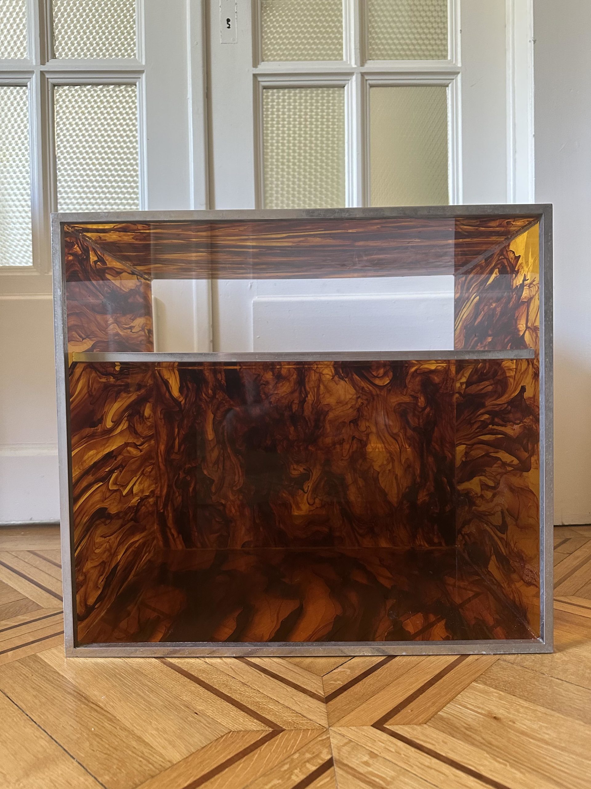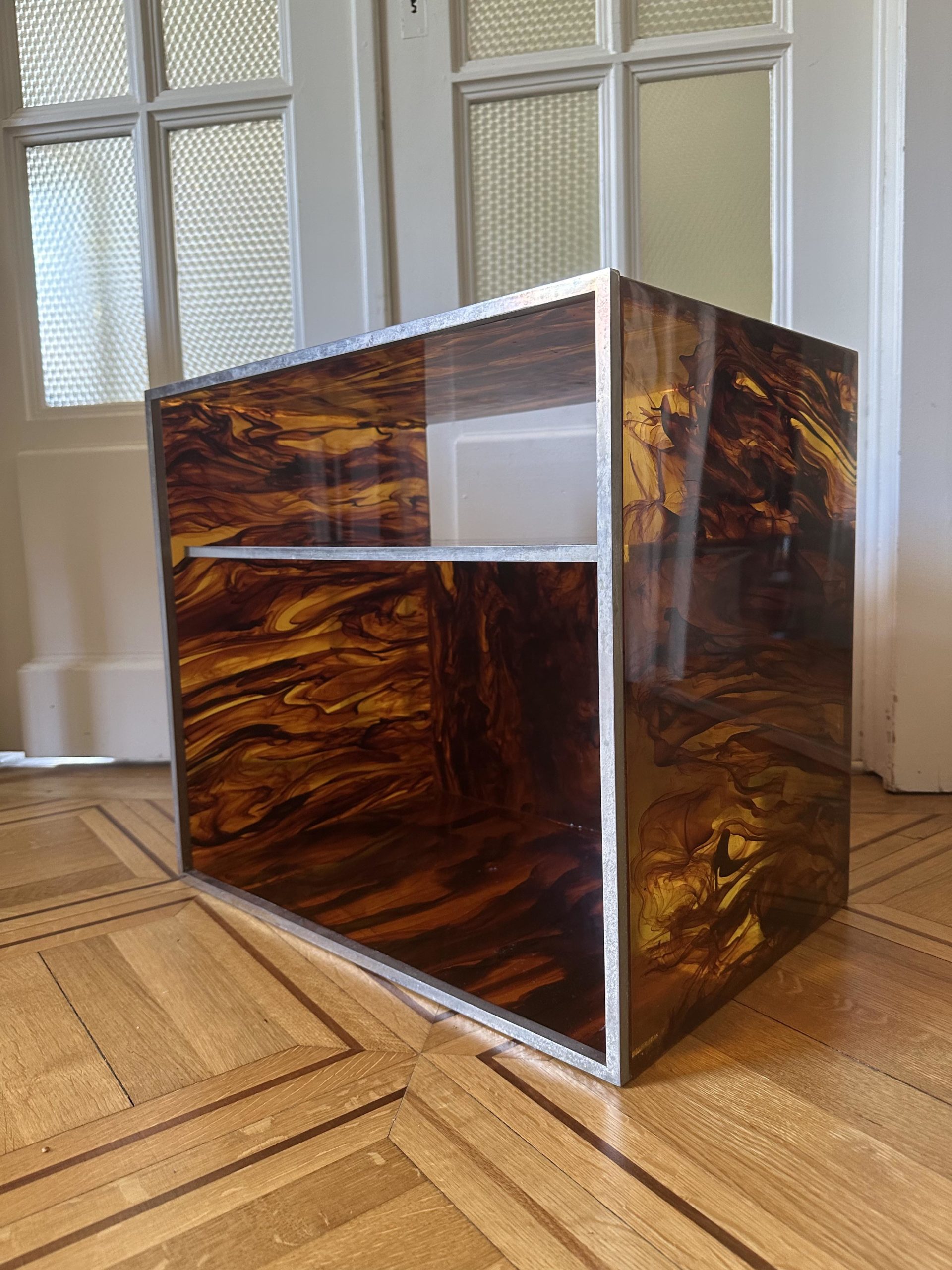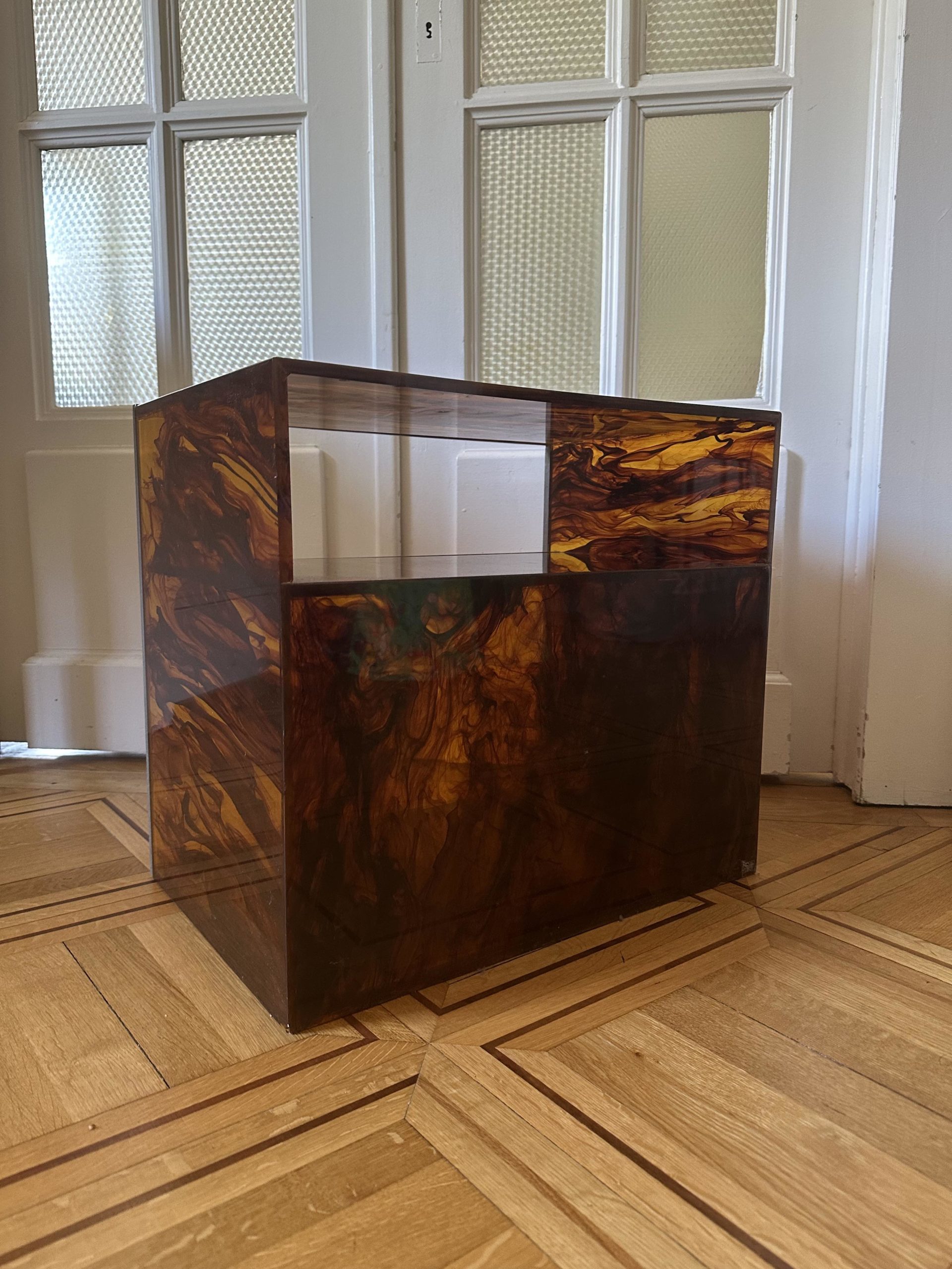 Produit venduMeuble d’appoint en plexiglas brun effet “marbré”.
