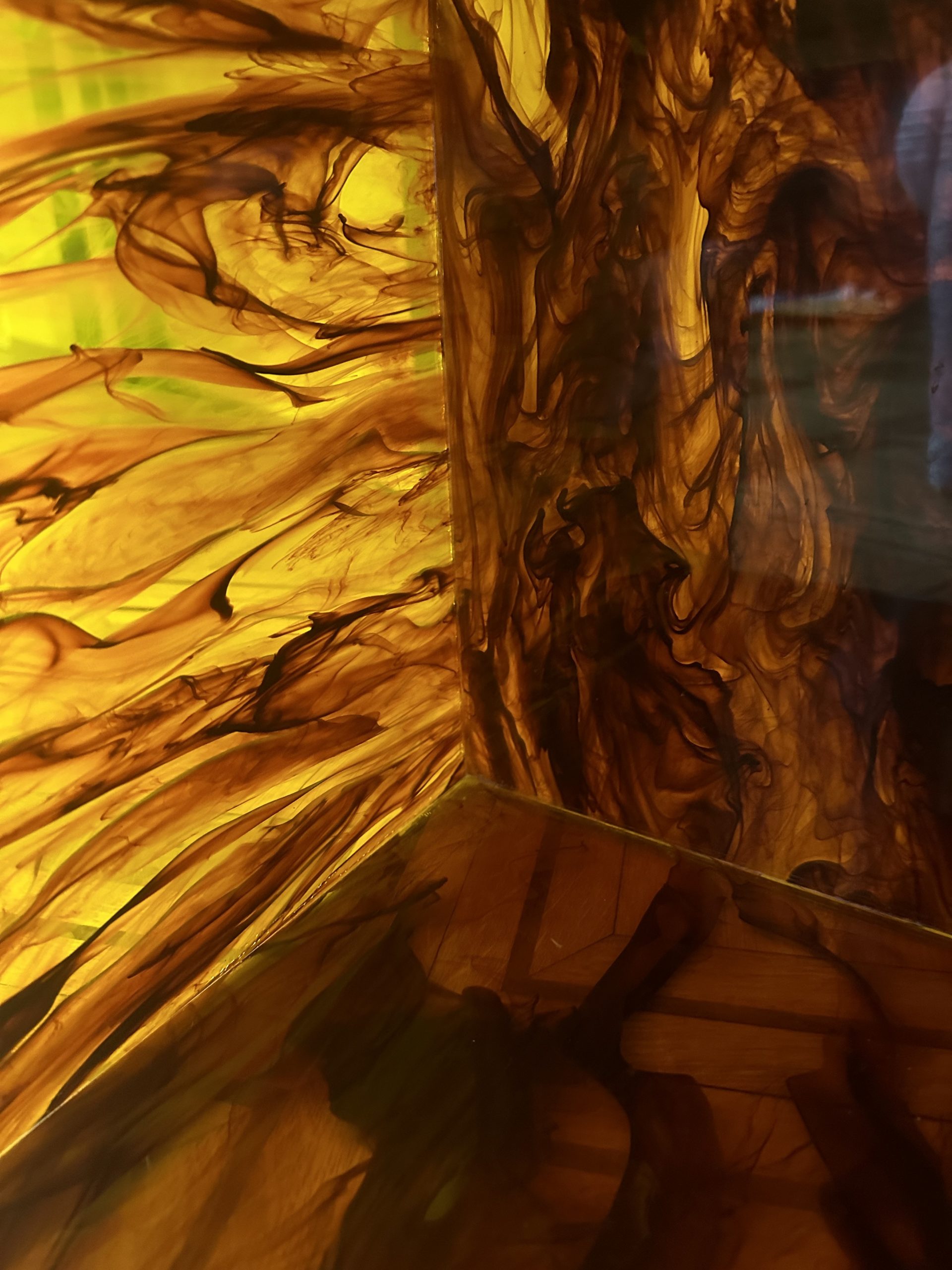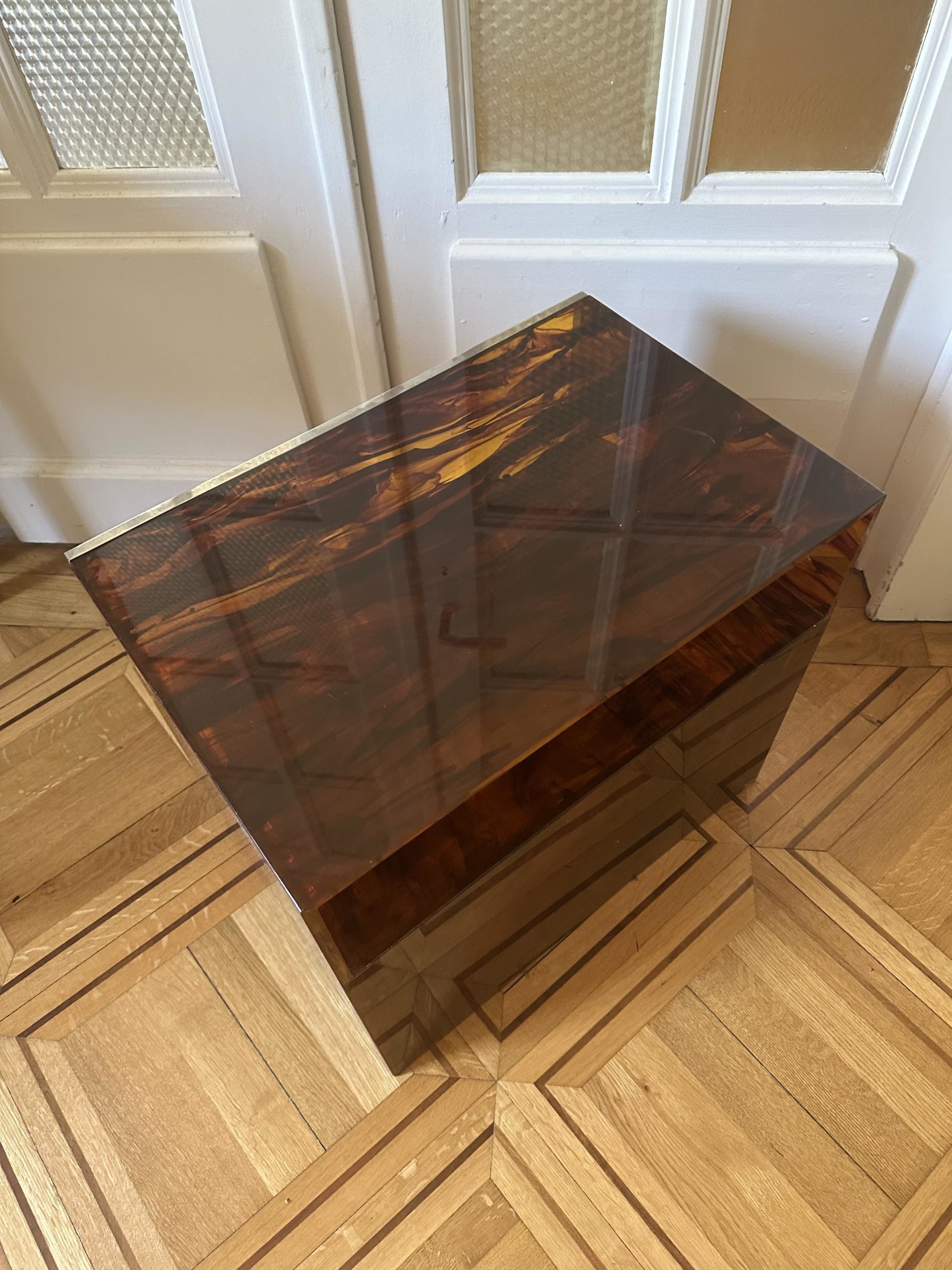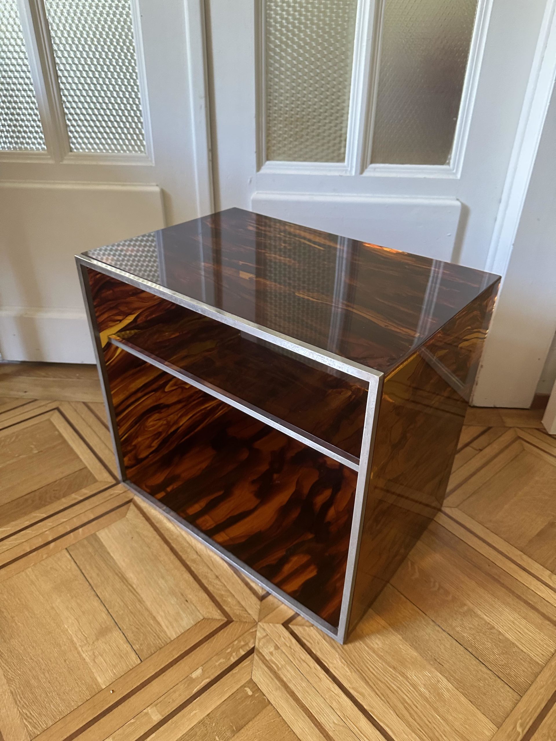 Produit venduMeuble d’appoint en plexiglas brun effet “marbré”.