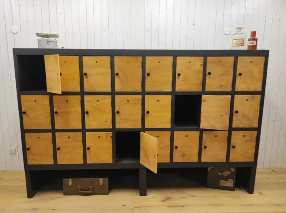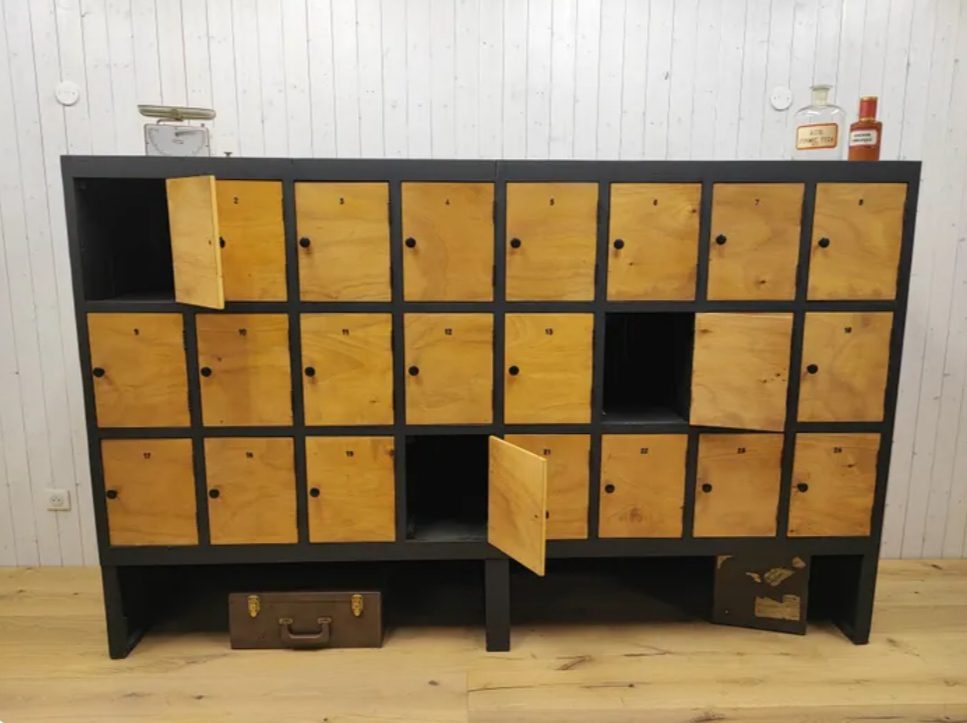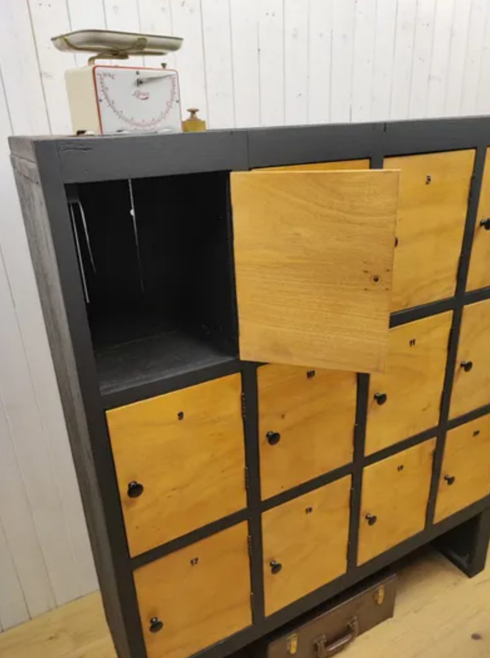 Joli meuble de métier à casier sortant tout droit de restauration ! Composé de 24 casier (dimensions casier : h34 ,l26).