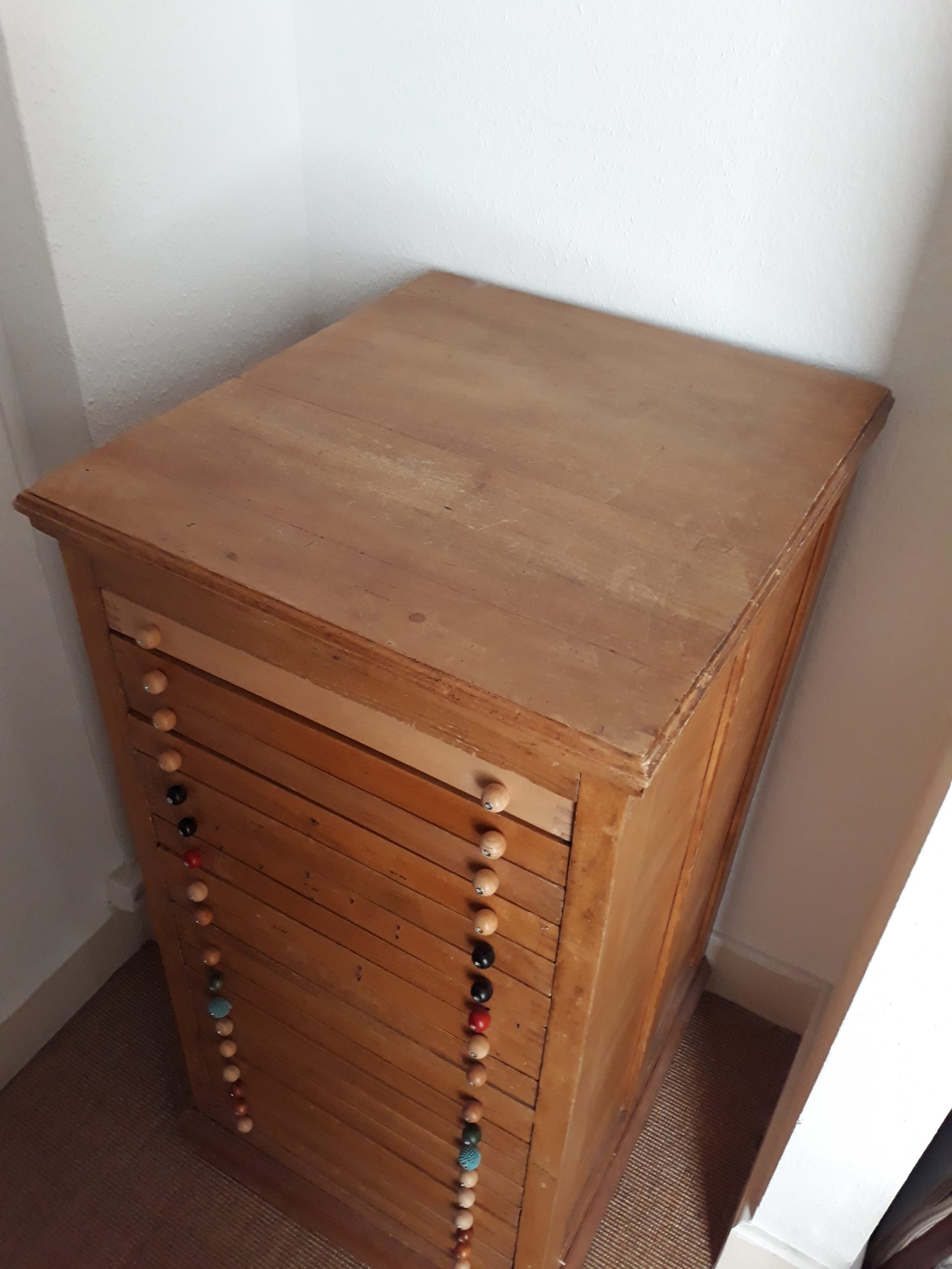 Produit vendu– Meuble de quincaillerie servant à ranger les petites pièces types vis, écrous, etc.