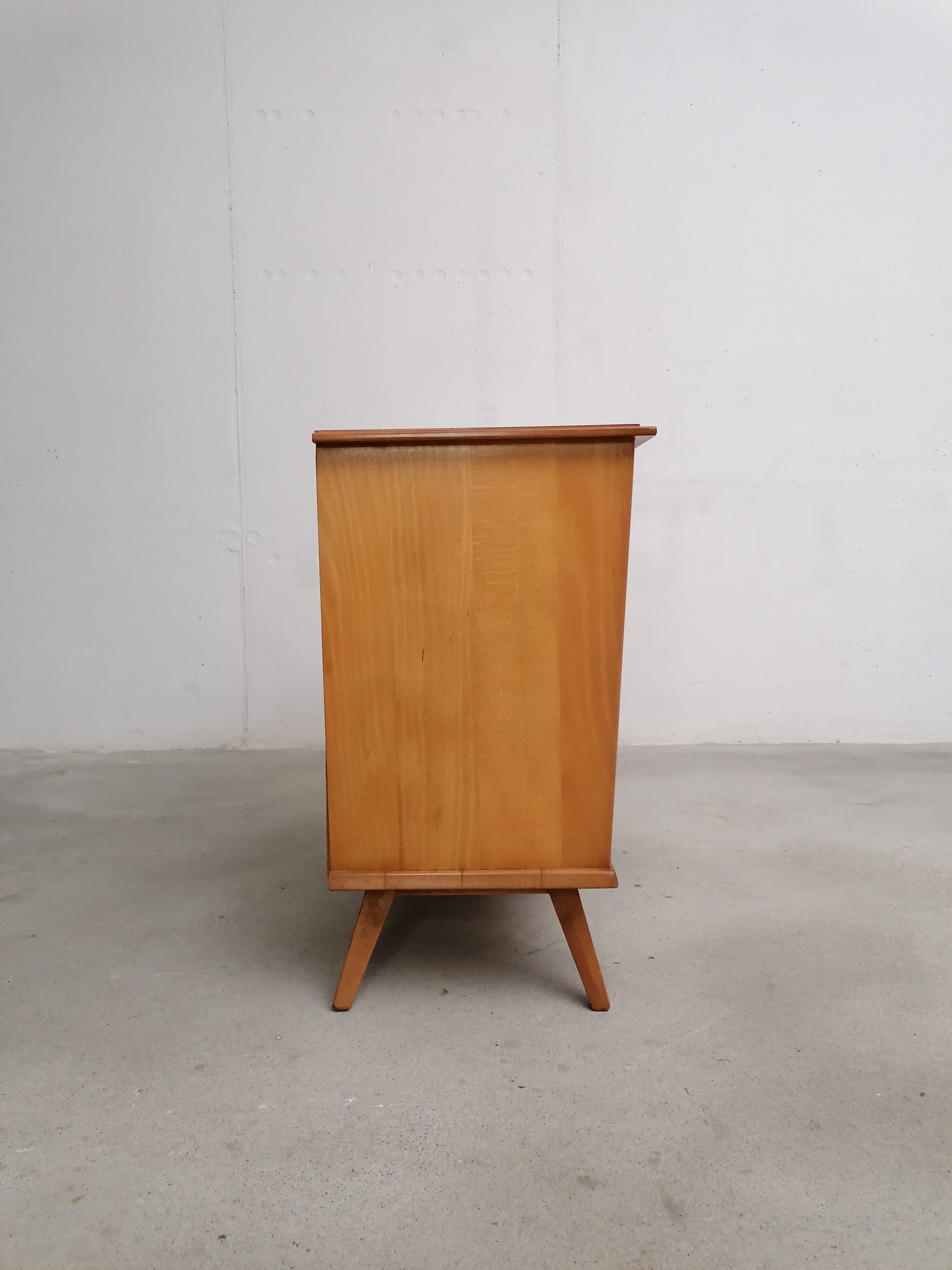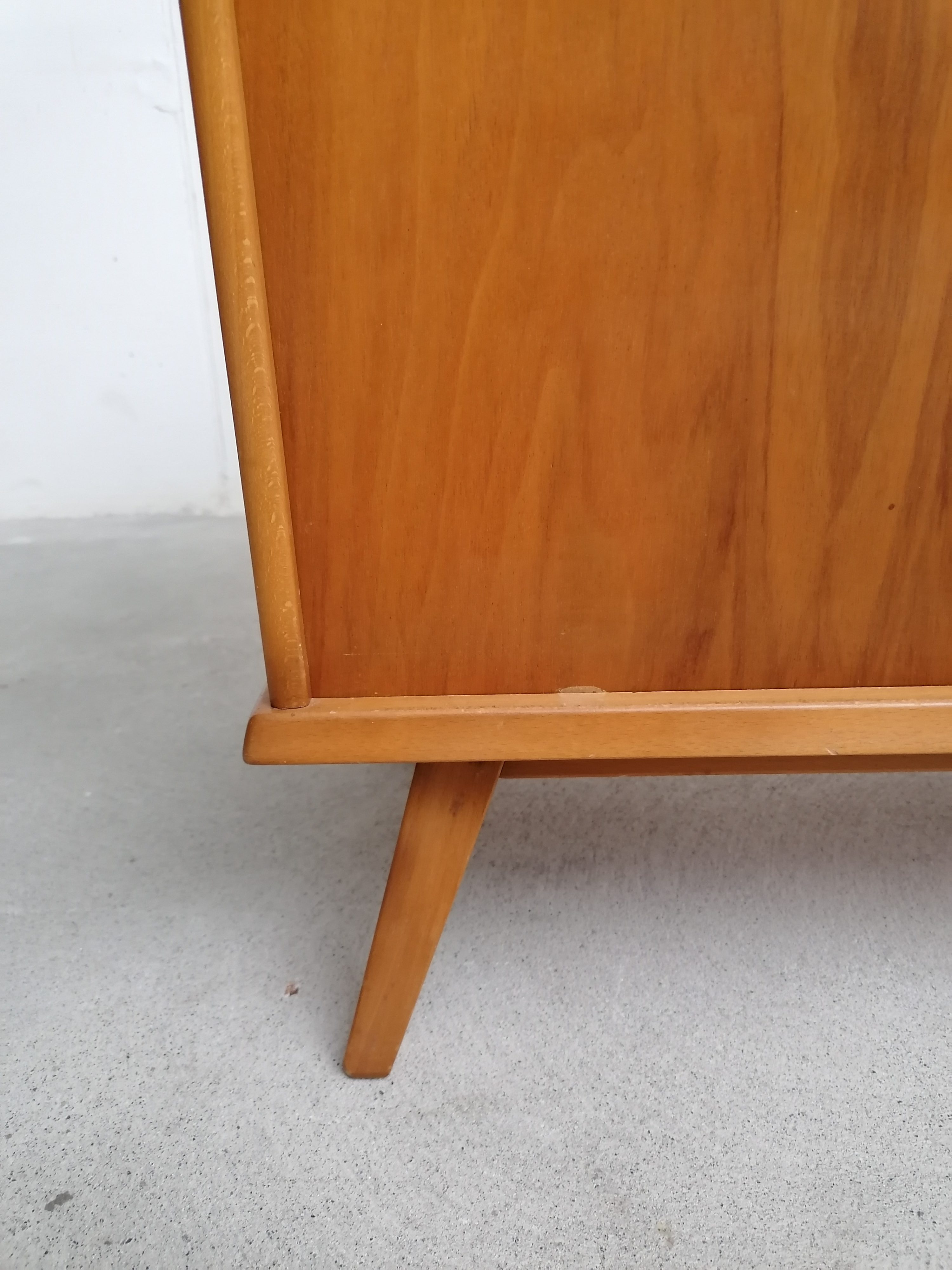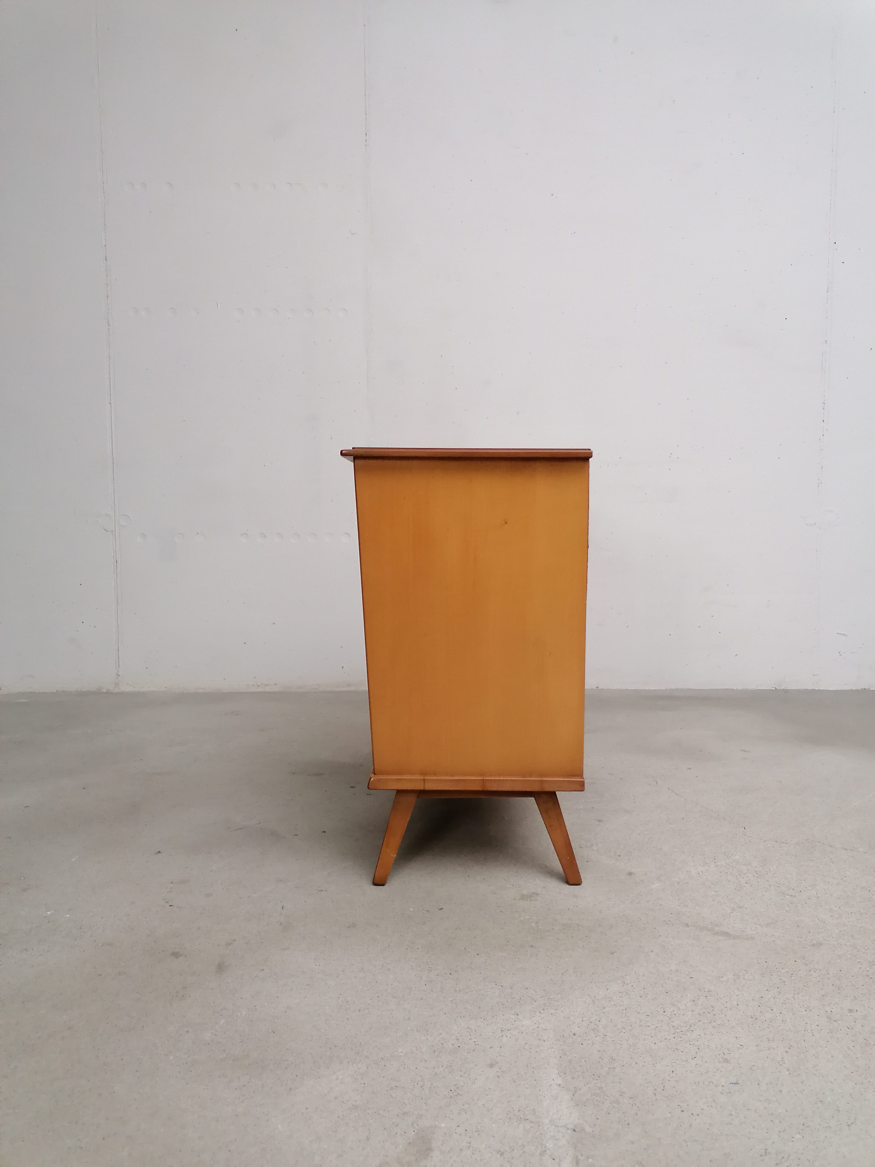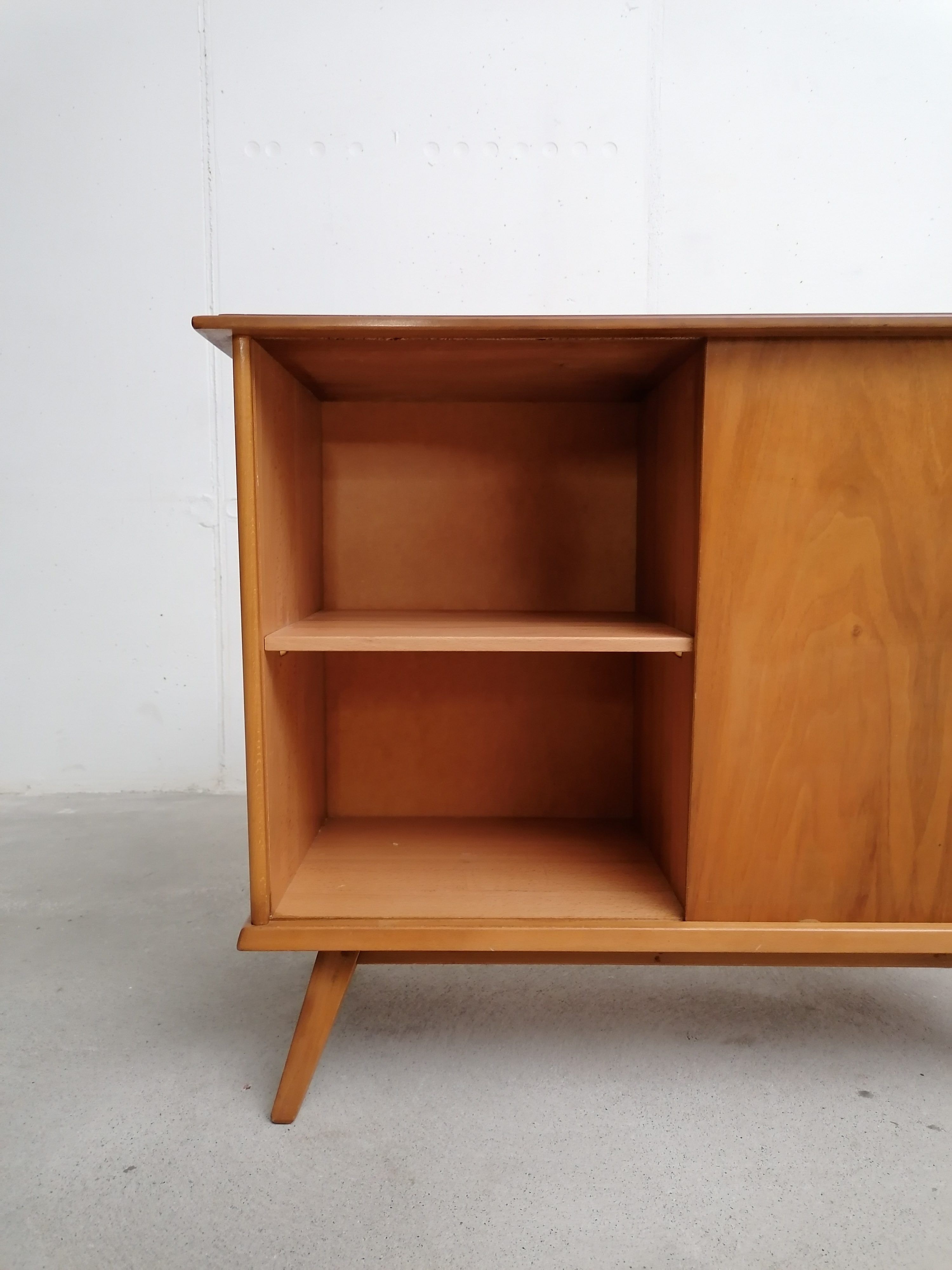 Produit venduMeuble de rangement vintage en bois avec porte coulissante et élégant piètement. Un tiroir et deux étagères complètent ce petit meuble de rangement vintage que grâce à ses dimensions peut trouver facilement place dans une entrée et dans d’autres petites pièces.