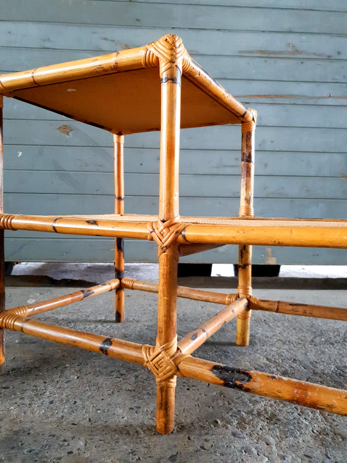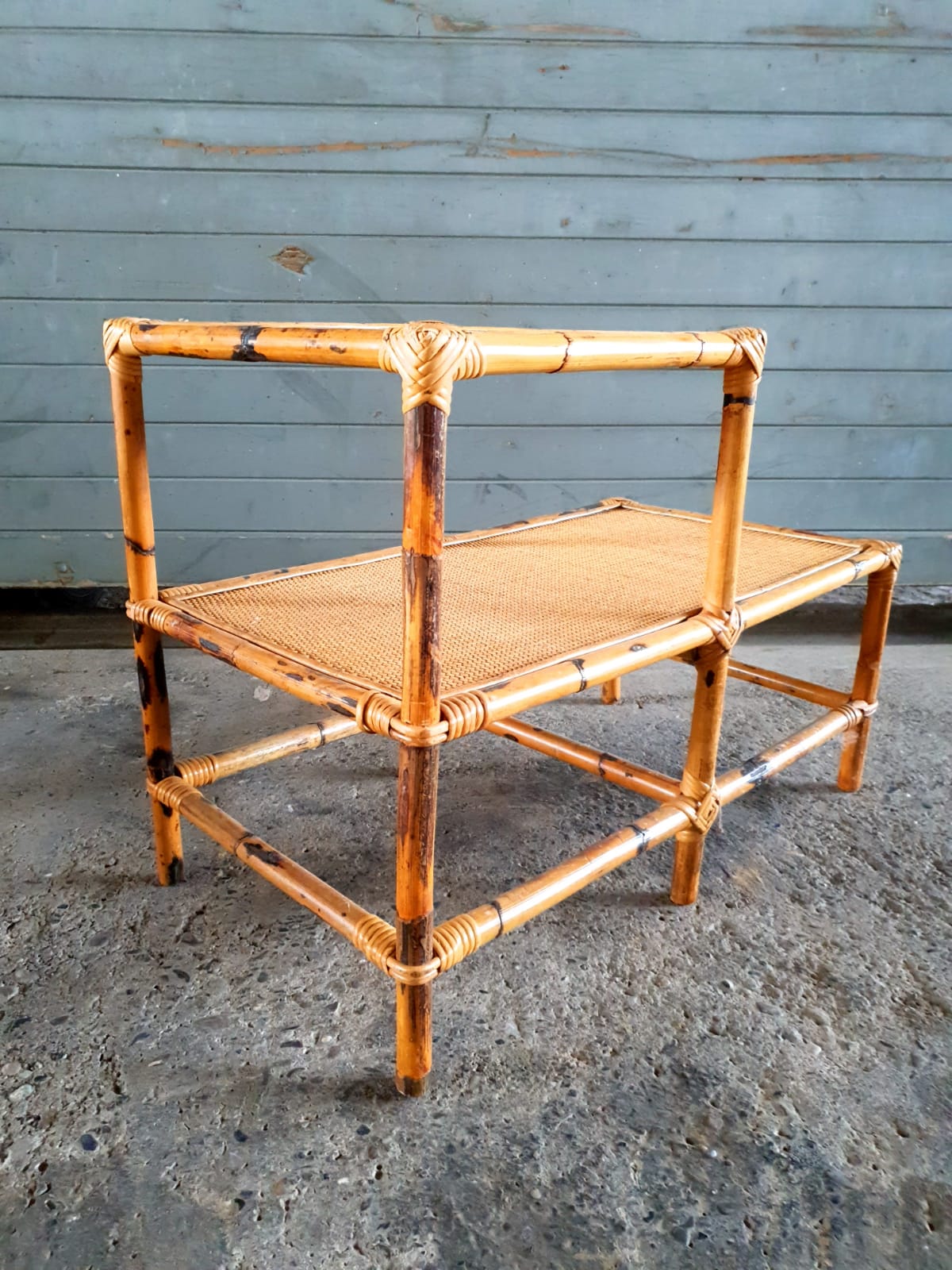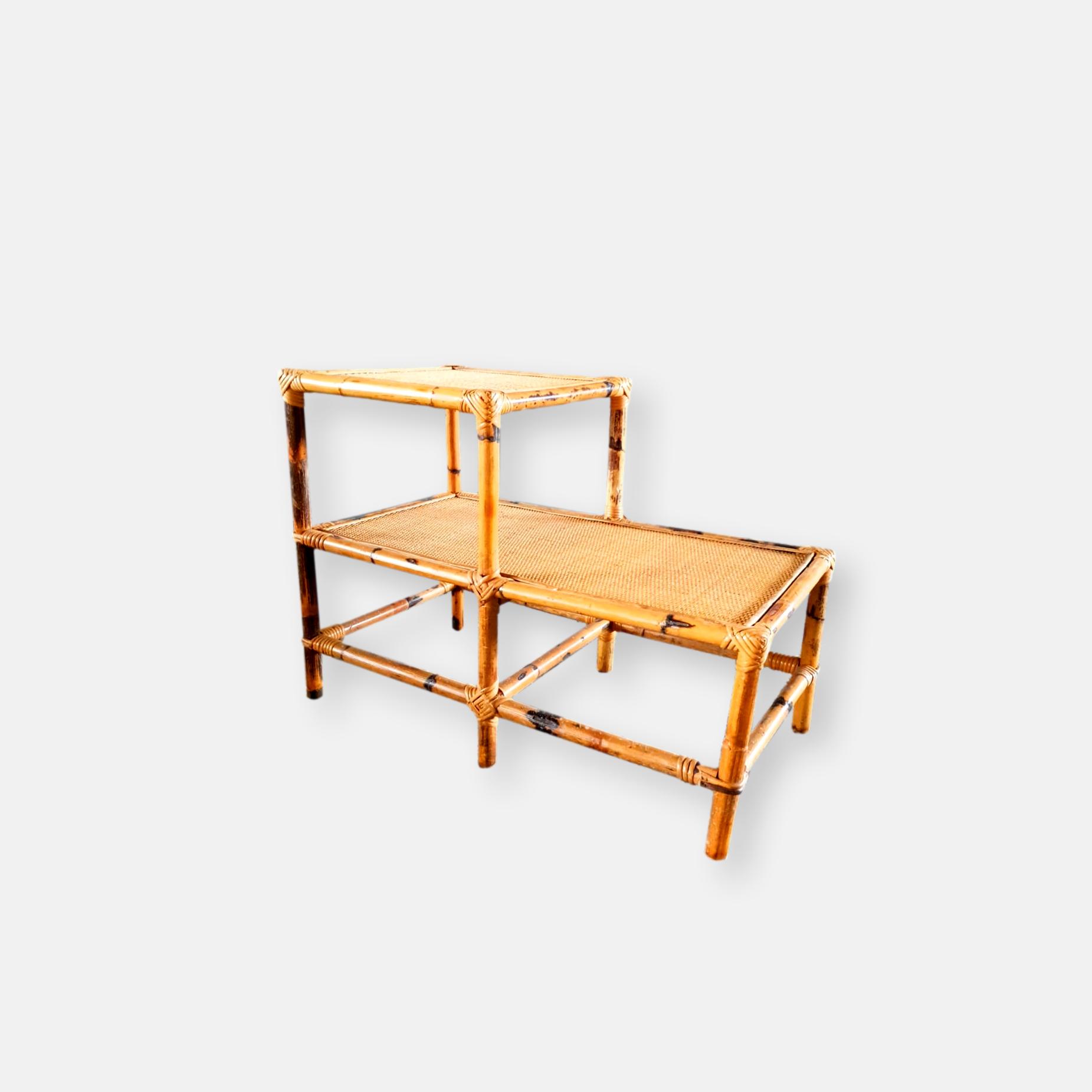 Produit venduMeuble étagère en rotin 60s sur 2 niveaux.