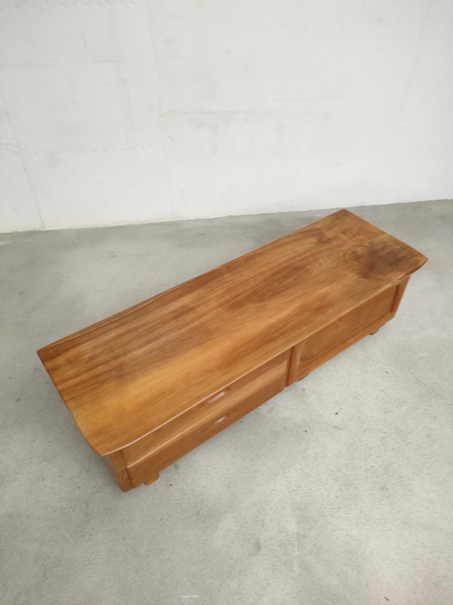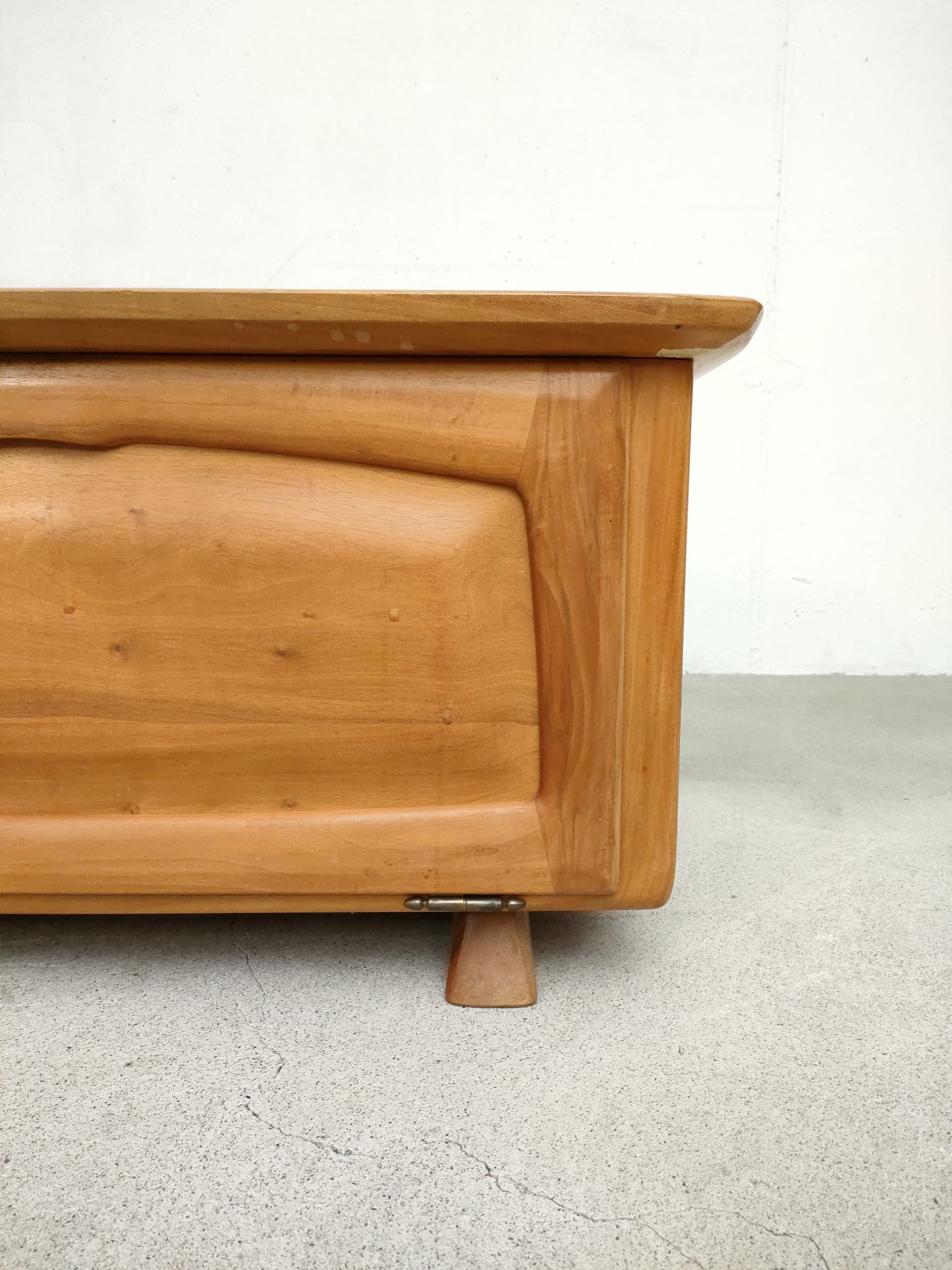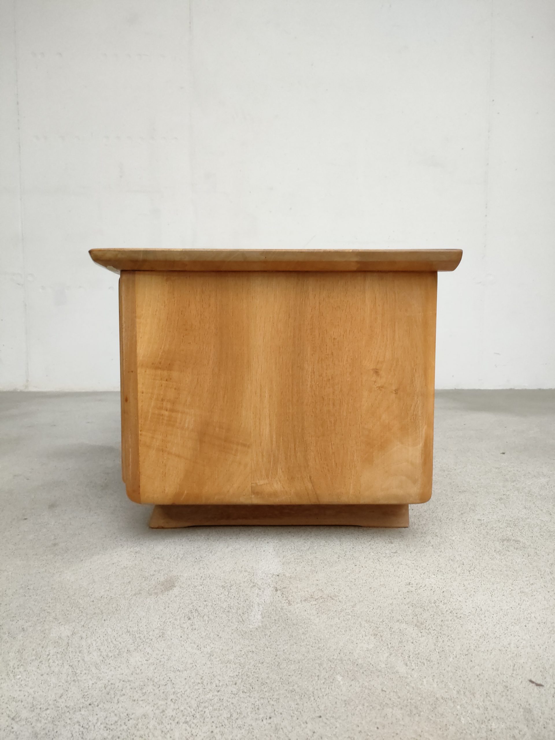 Produit venduEnfilade basse en bois réalisée par Franz Xaver Sproll. Elle est dotée de deux tiroirs avec poignées caractéristiques du travail de Franz Xaver Sproll et d’un espace de rangement avec porte rabattable. Quelques traces d’eau sont présentes (voir photos). Le meuble est stable et solide et parfaitement fonctionnel.