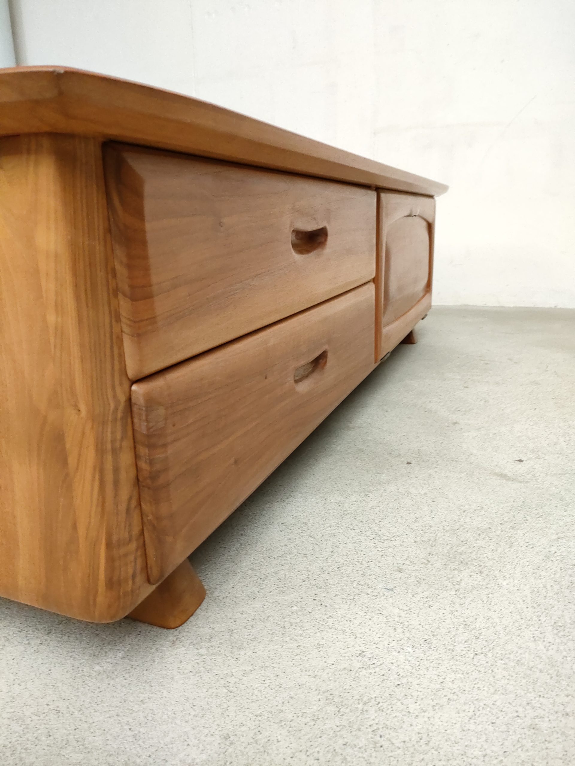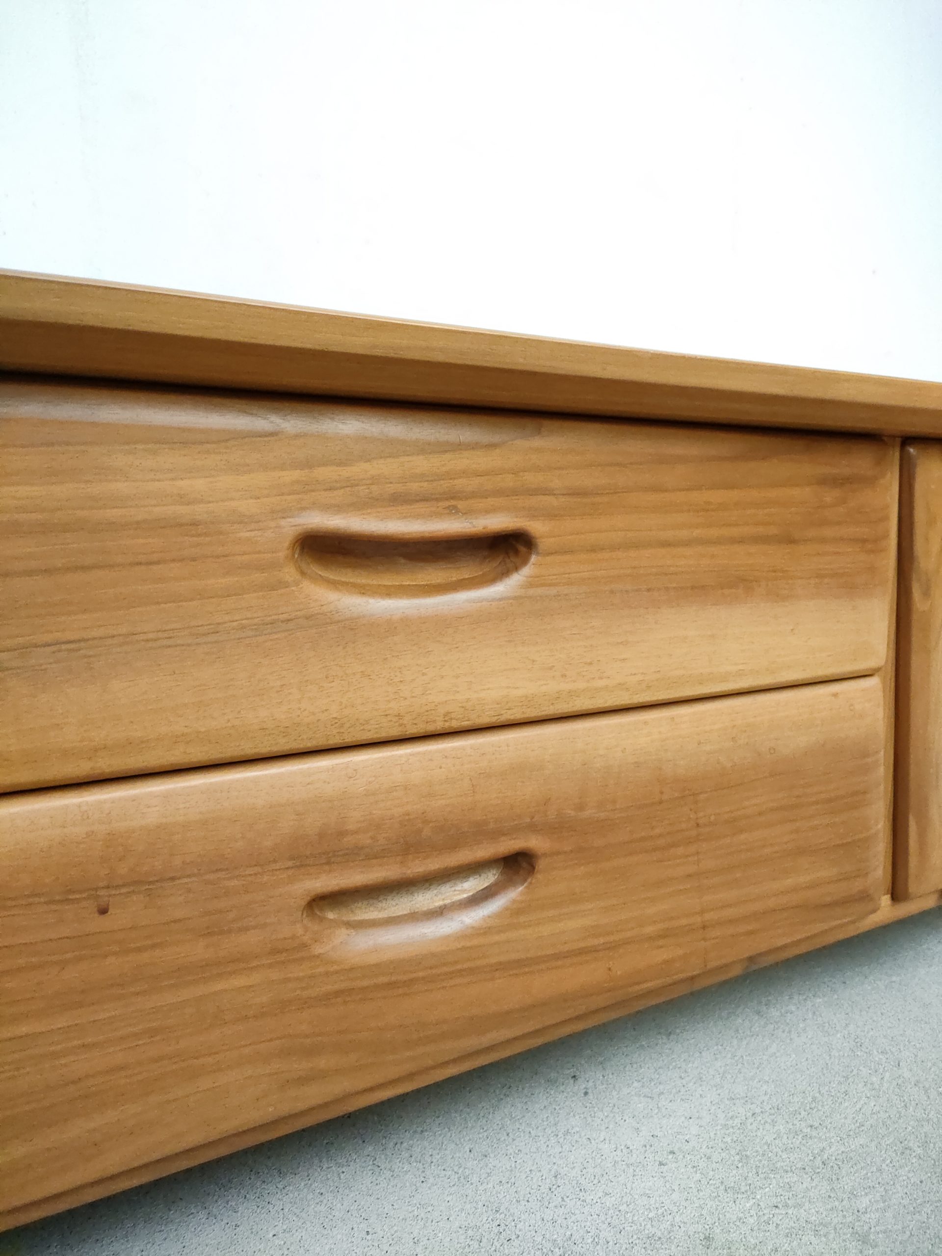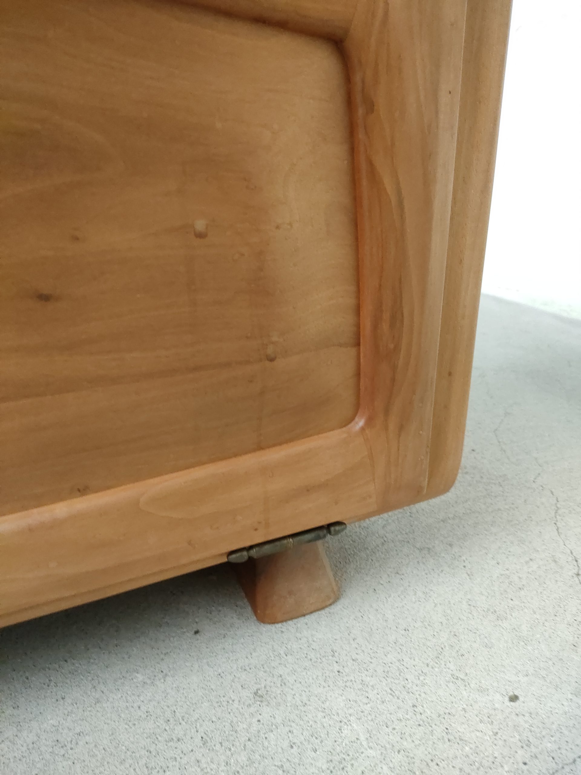 Produit venduEnfilade basse en bois réalisée par Franz Xaver Sproll. Elle est dotée de deux tiroirs avec poignées caractéristiques du travail de Franz Xaver Sproll et d’un espace de rangement avec porte rabattable. Quelques traces d’eau sont présentes (voir photos). Le meuble est stable et solide et parfaitement fonctionnel.